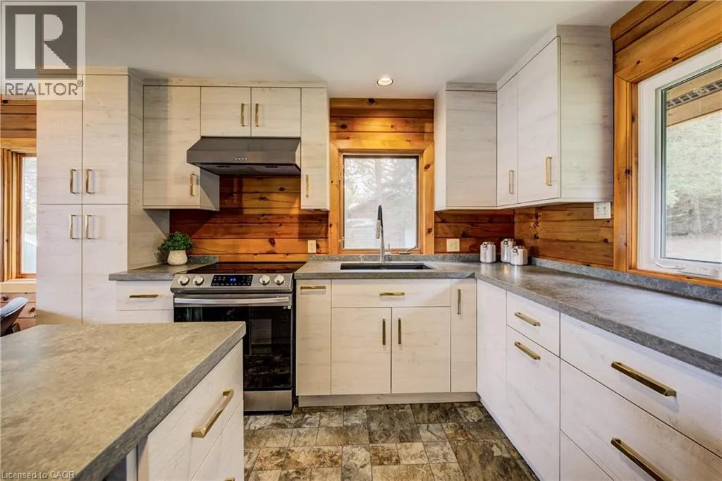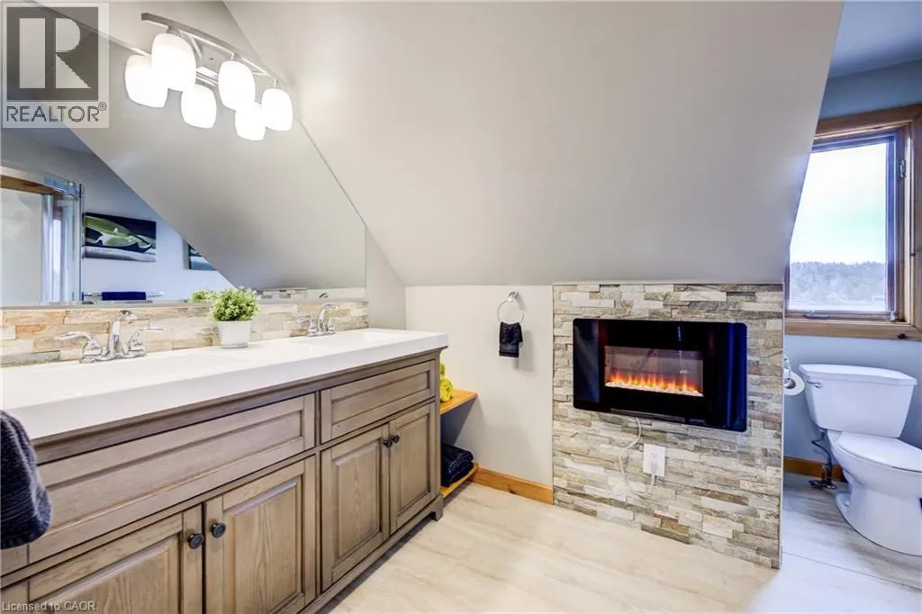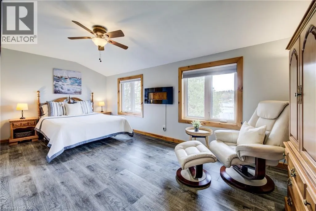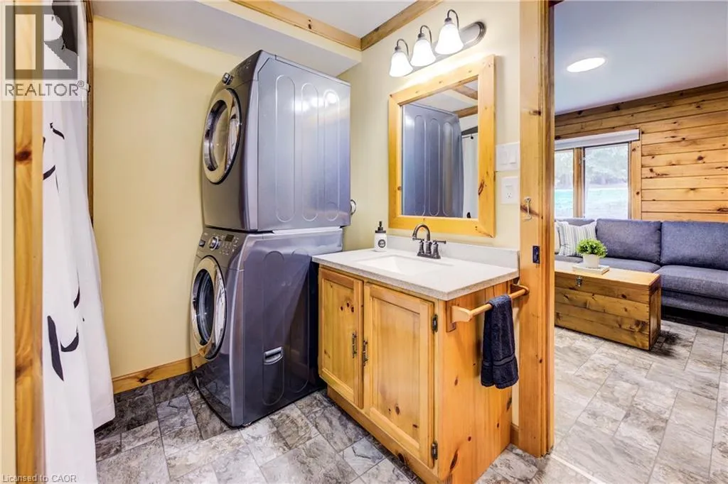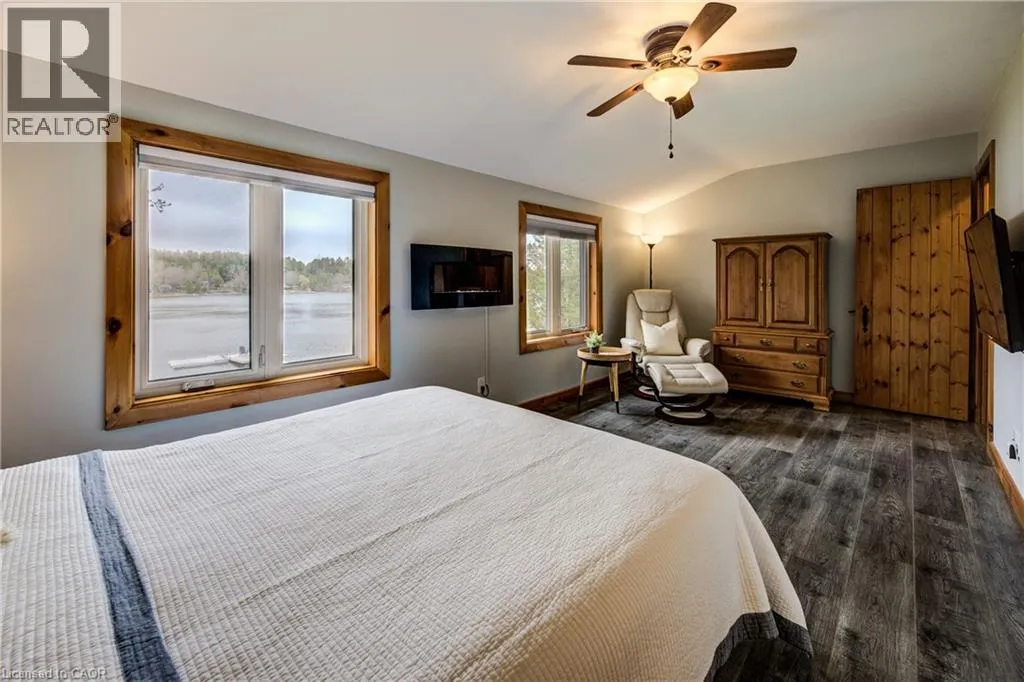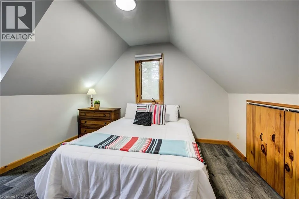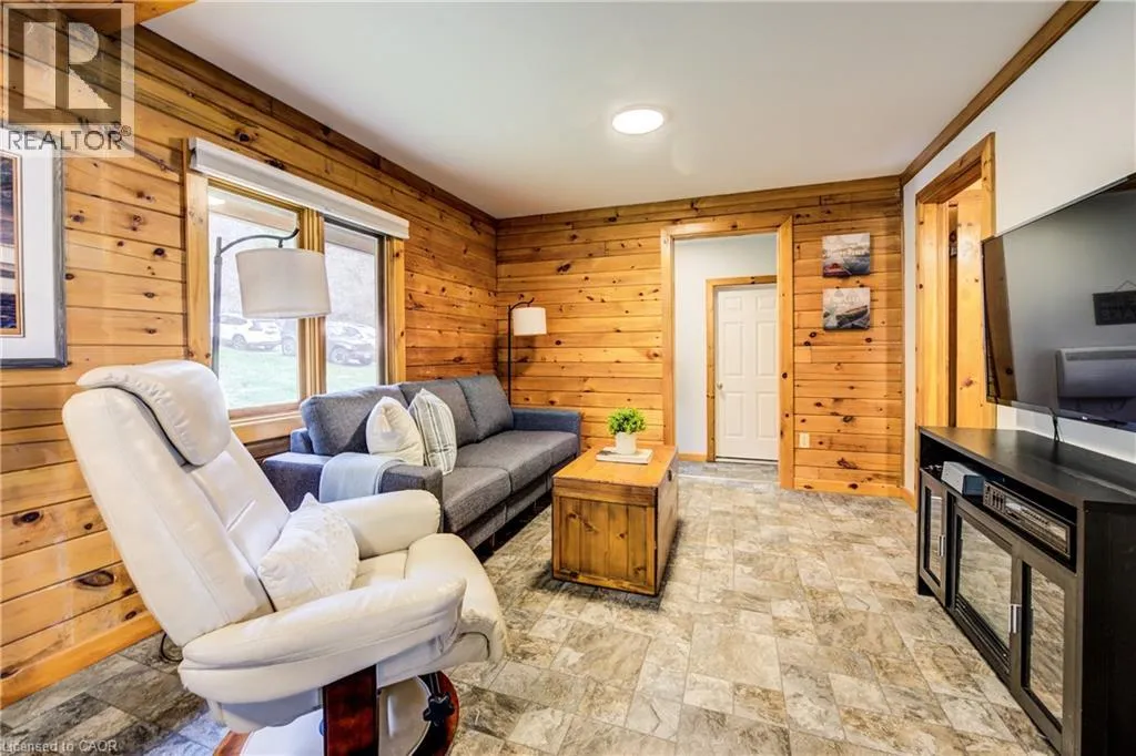 Follow ON-85 N and Floradale Rd to 8 Line. Turn left onto 8 Line. Turn right onto Wellington County Rd 11. Continue on Concession Rd 8. Left onto Side Rd 15. Left onto Concession Rd 6. Turns into Road 4 N. Cottage will be on left Lakefront log cabin, with poured concrete foundation, on a rare flat lot. Over $40,000 invested in the kitchen and stainless steel-framed dock. Features two full baths, main floor laundry, EV plug-in, and propane generator. Covered porch with lake views. Effortless lakefront living at Conestogo Lake with this 1,466 sq ft log cabin cottage, where rustic charm meets modern convenience. Fully updated and thoughtfully designed, this cottage offers a rare attached garage with direct access inside providing a convenient entrance. Take in the scenery from the covered porch that stretches the full length of the cottage, or gather on the spacious deck, the perfect setting for meals and entertaining with unobstructed views. The brand-new $18,000 aluminum frame dock provides a launchpad for swimming, boating, and all things summer. Inside, find a fully updated kitchen offers an ideal space for cooking meals. Outfitted with modern appliances, including a range hood oven, French door fridge, and a central island, itâs designed for both functionality and style. Share family meals in the adjoining dining area, cozy up by the wood-burning stove with direct lake views, or catch a movie in the second living space just off the dining room. Upstairs, 3 inviting bedrooms and a spacious 4pc bathroom features a built-in electric fireplace and dual sinks. The primary bedroom boasts stunning views of the water beyond. Practical perks include in-cottage laundry, an electric vehicle plug-in in the attached garage, and a generator to keep life humming along. Outside, gather around the fire pit on starry nights, perfect for roasting marshmallows, sharing stories, and making memories that will last a lifetime. With year round road access, thoughtful upgrades, and direct waterfront bliss, this is more than just a cottage, itâs your next chapter at Conestogo Lake, ready and waiting for new memories to be made. (id:27476)