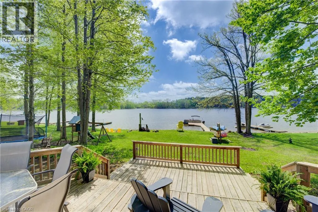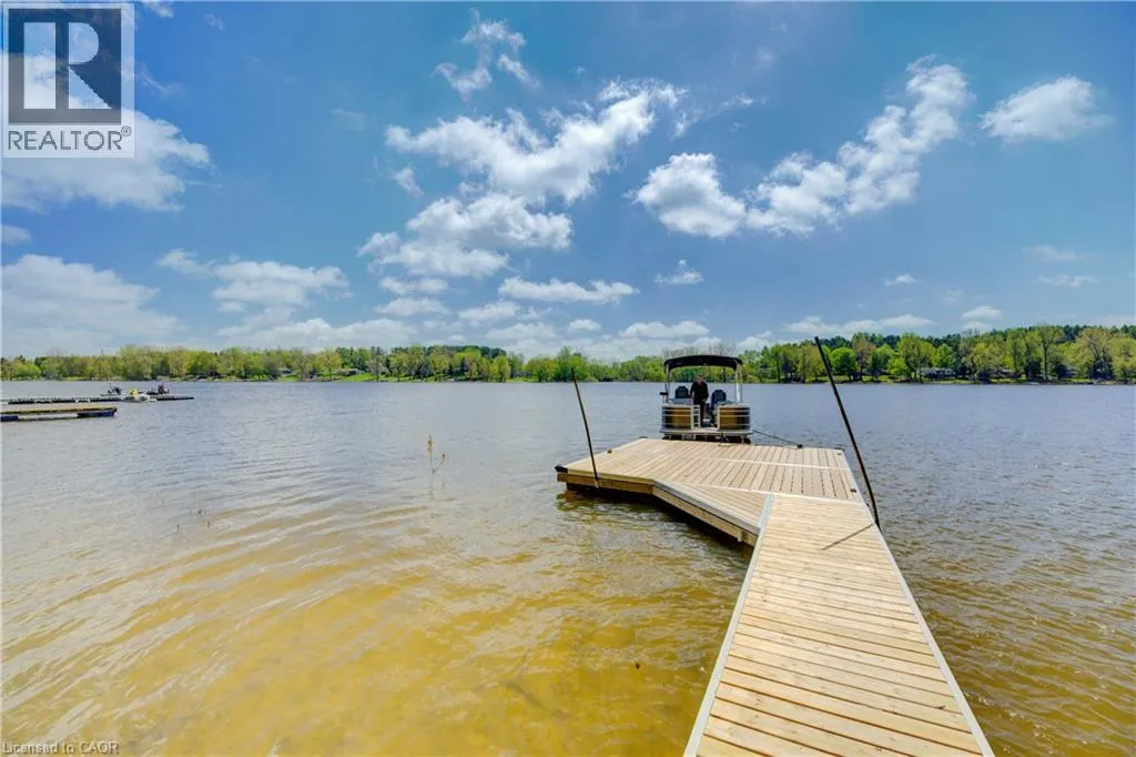 Hwy 86 towards Listowel, turn right at County Rd 10. Turn right at Concession 6. Right on Road 4 North. Highlighted by a brand-new $20,000 floating dock on wheels, this charming, turn-key waterfront cottage is the perfect place to start planning your future summer getaways. Set on a beautifully treed, gently sloping lot, the property features a detached garage for storing all your water toys and tools, plus a spacious two-tiered deck. Start your mornings soaking up the sunshine with a coffee on the deck, enjoying the peace and privacy of the tranquil wooded area that the cottage backs onto. Inside, the inviting board-and-batten pine interior and rustic wood stove create a warm, welcoming atmosphere. Wide, east-facing windows flood the space with natural light and perfectly frame stunning views of the water. The cottageâs unique back-split layout provides an excellent balance of connection and privacy, featuring 3 bedrooms, 1 conveniently located on the main level and 2 more just a few steps up. The living area is an ideal retreat on rainy days, offering plenty of room for family and guests to gather around the kitchen table for board games while watching the trees sway outside. When the sun is shining, head outside to take full advantage of your incredible waterfront. Launch your boat with ease, soar into the lake on your own zip line, leap right off that impressive new dock, or wind down the evening around the fire pit with ghost stories and roasted marshmallows under the stars. Conestogo Lake serves as your personal playground, offering a scenic, Y-shaped reservoir that stretches 6kms in both directions for exceptional sailing, waterskiing, canoeing, and fishing. When you are ready to explore, you are just a short drive from the small-town charm and big-time bites of Drayton, Elmira, Listowel, and Dorking. Treat yourself to delicious, home-cooked meals at Your Neighbourhood Table Bakery & Restaurant, grab legendary treats at the Dorking General Store, and be sure to pick up a pizza from Family Time Pizza in Drayton. (id:27476)
