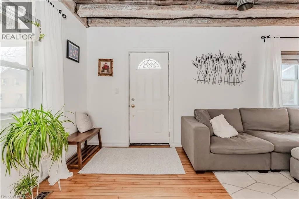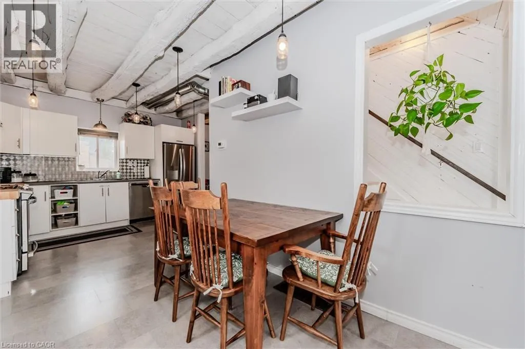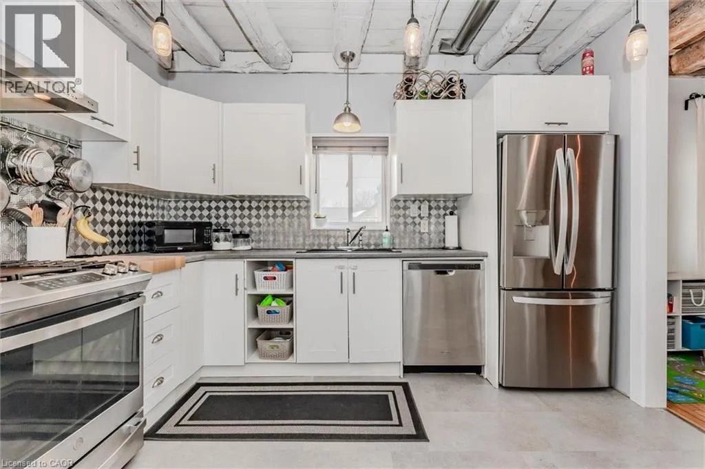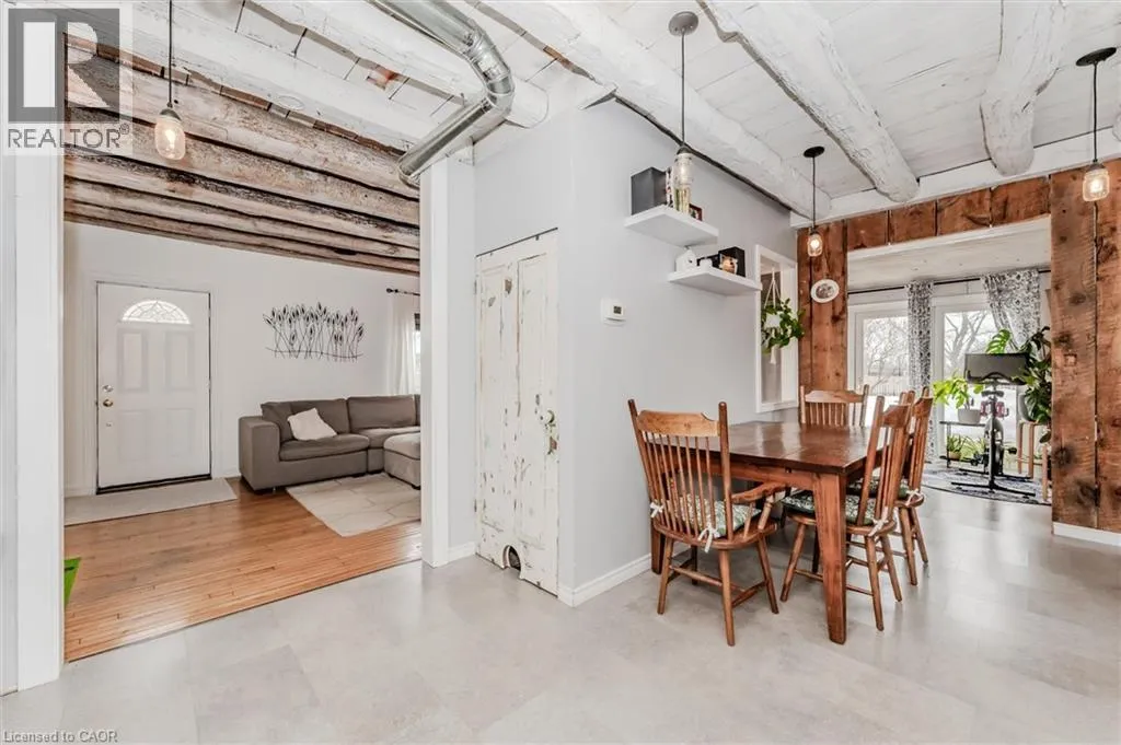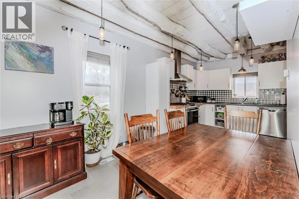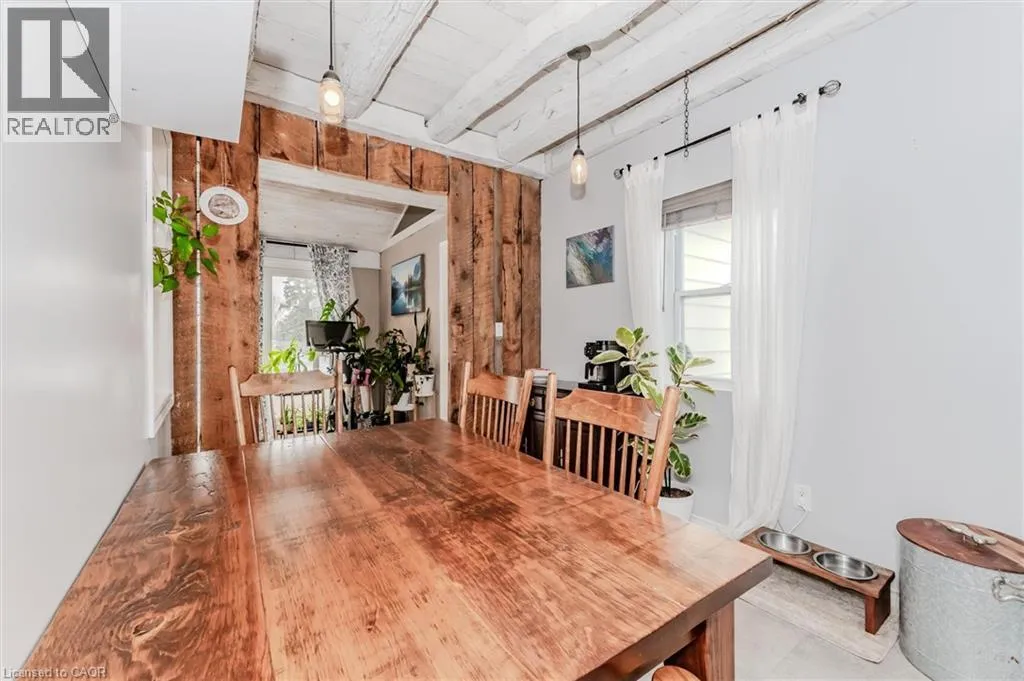 Sawmill Rd to Northfield Dr Charming family home in the heart of Conestogo. Enjoy small-town living just 5 minutes from top city amenities. This updated character home features exposed beams on the main floor, a renovated bathroom, freshly painted main floor and an updated spacious kitchen with gas-stove and stainless steel appliances. The second floor offers two large bedrooms with ample natural light and room for the whole family. Situated on a spacious 86 x 200ft irregular lot, the property backs onto a community centre with tennis courts, ball diamond, playground and a ball hockey rink. The property offers ample parking, including a double driveway for 6+ cars and a detached workshop/garage with a drive-through door. An additional single driveway accommodates 2 more vehicles or allows for parking an RV/other machinery. Recent updates include a newer furnace and A/C (2018), an owned water softener (2019), gas line for a BBQ, gas stove (2022), fridge (2023), washer & dryer (2021). The fully fenced yard boasts a large deck with a gazebo, a large fire pit, 4 lilac trees, 2 cherry trees and a well established grape vine as well as beautifully landscaped gardens with plenty of room for a vegetable garden. Donât miss out on this impressive home! (id:27476)