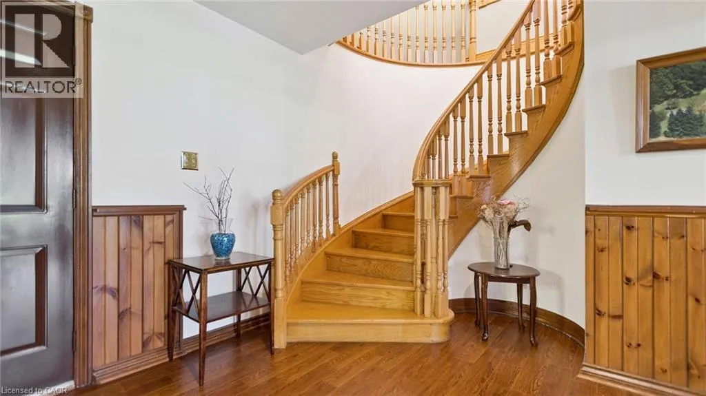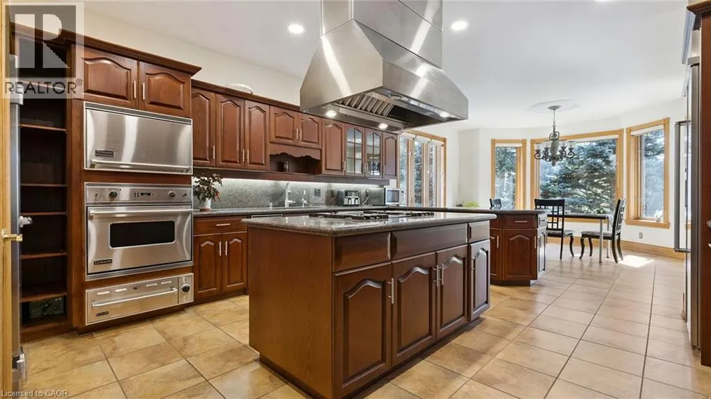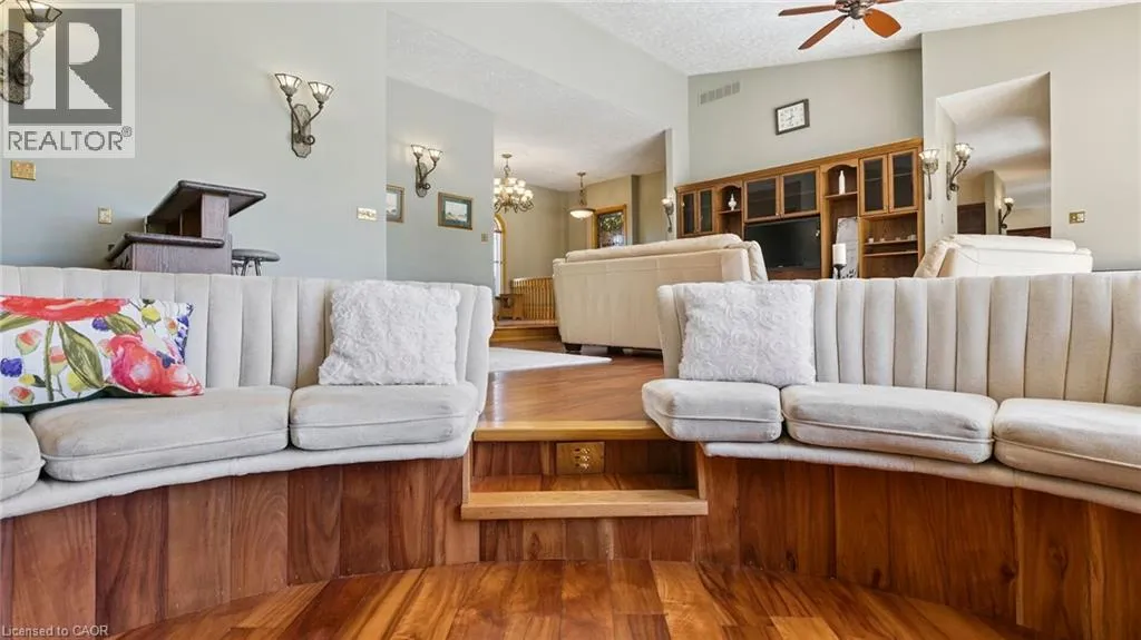 Sawmill Road to Golf Course Rd A Timeless Estate Backing onto the Greens! Nestled in the heart of Conestogoâs sought-after golf course community, this bungalow offers 6-bedrooms and 5-bathrooms with 7,200 sq. ft. of refined yet comfortable living. Set on a massive 205-foot wide lot, the home captures sweeping, unobstructed golf course views from almost every room. Rich hardwood flooring flows through the main level, leading you to a grand great room bathed in natural light. The layout is thoughtfully designed for multi-generational living or a growing family, highlighted by two primary-style suites with private baths. The lower level offers endless opportunities for family fun, from the private gym and sauna to the spacious recreation area and wet bar. Located just steps from the river and local amenities, this home offers a peaceful, family-friendly lifestyle without compromising on luxury. (id:27476)