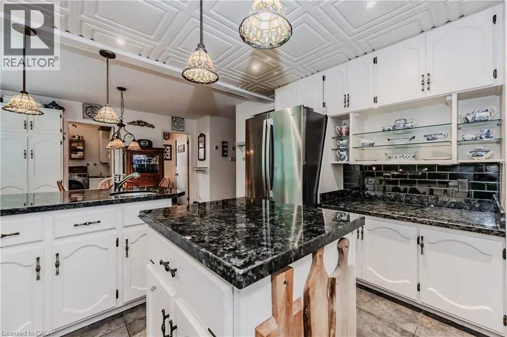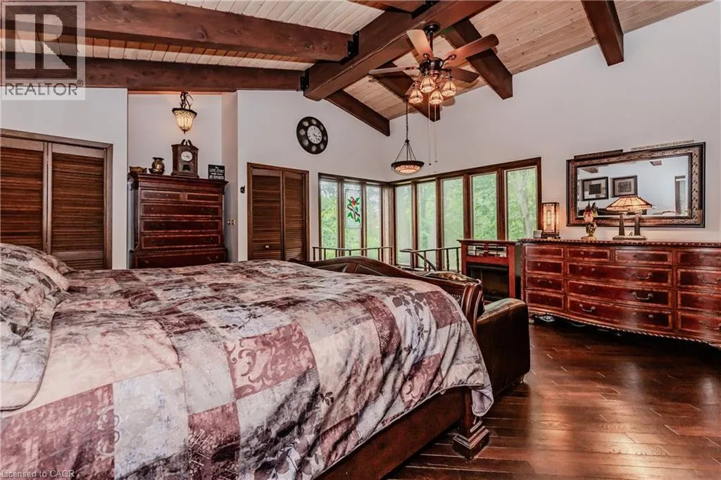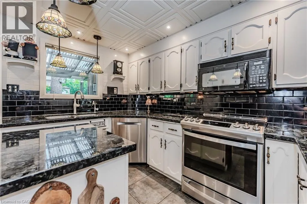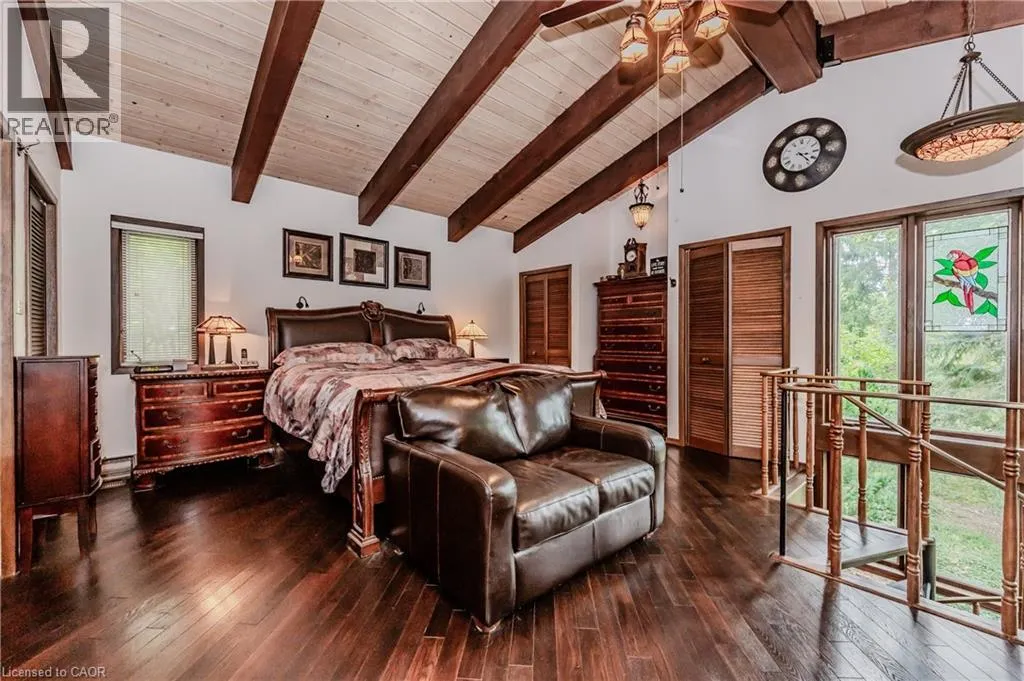 Turn onto Grandview Dr from Sawmill Rd. RARE FIND! Located on a stunning 1.11 acre property, this UNIQUE home offers a postcard setting of singing pines, flowering trees, ponds, streams, an inviting inground pool and beautiful gardens. Step into the spacious foyer and to the left you'll find the serene primary suite addition (1983) featuring sloped ceilings, generous closet space, a spa-like ensuite, and a dramatic SPIRAL staircase framed by windows that leads to the finished basement. The warm and welcoming kitchen is the room where your family will head for when they come home. The black granite counters contrast nicely with the white cabinetry, and there's lots of room for multiple people to cook with 2 sinks and a large islandâperfect for casual family gatherings. Off the kitchen is a convenient powder room and laundry area. Enjoy garden views from the elegant formal dining room. A few steps up brings you to the large living room with cathedral ceilings and a cozy wood-burning fireplaceâideal for ENTERTAINING. From here, step into the enclosed, wrap-around sunroom deck that overlooks the magnificent yard. Travel up one more level to find three very spacious bedrooms and a full bath. The movie and sports crowd will love to relax in the lower-level family room with a wood stove, large windows, french doors to the patio and pool, and an adjacent full bathroom. The basement offers endless possibilities with space for a games room, home gym, hobbies, and ample storage. A BONUS feature is the huge workshop with its own exterior entranceâgreat for hobbyists or home-based projects. With FIVE finished levels, this home is ideal for large or multi-generational families. MAGNIFICENT SUNSETS! (id:27476)