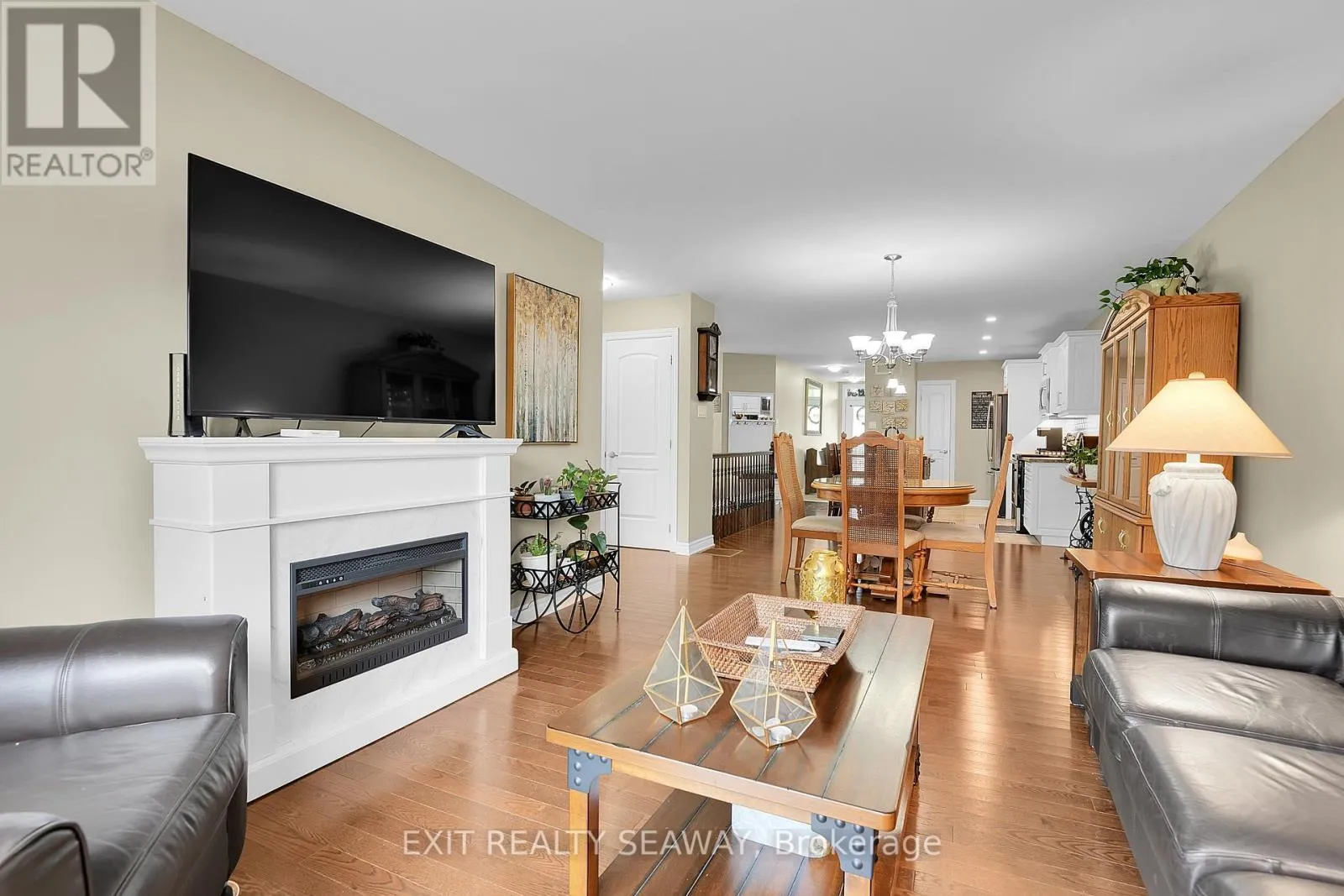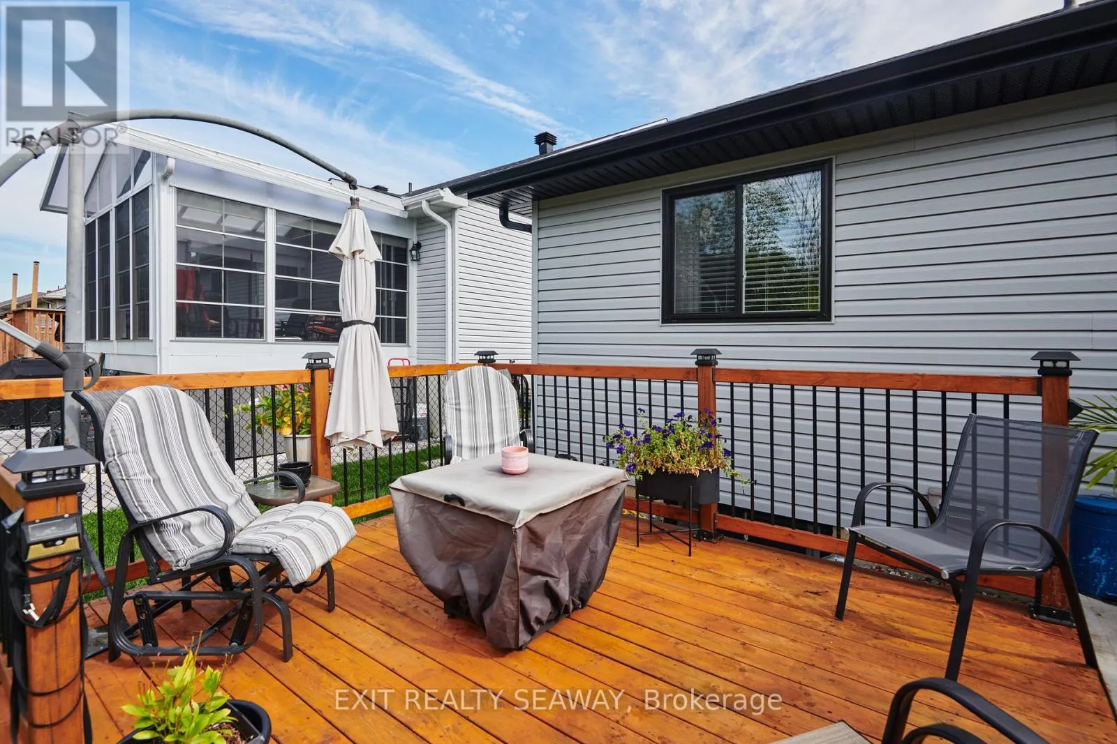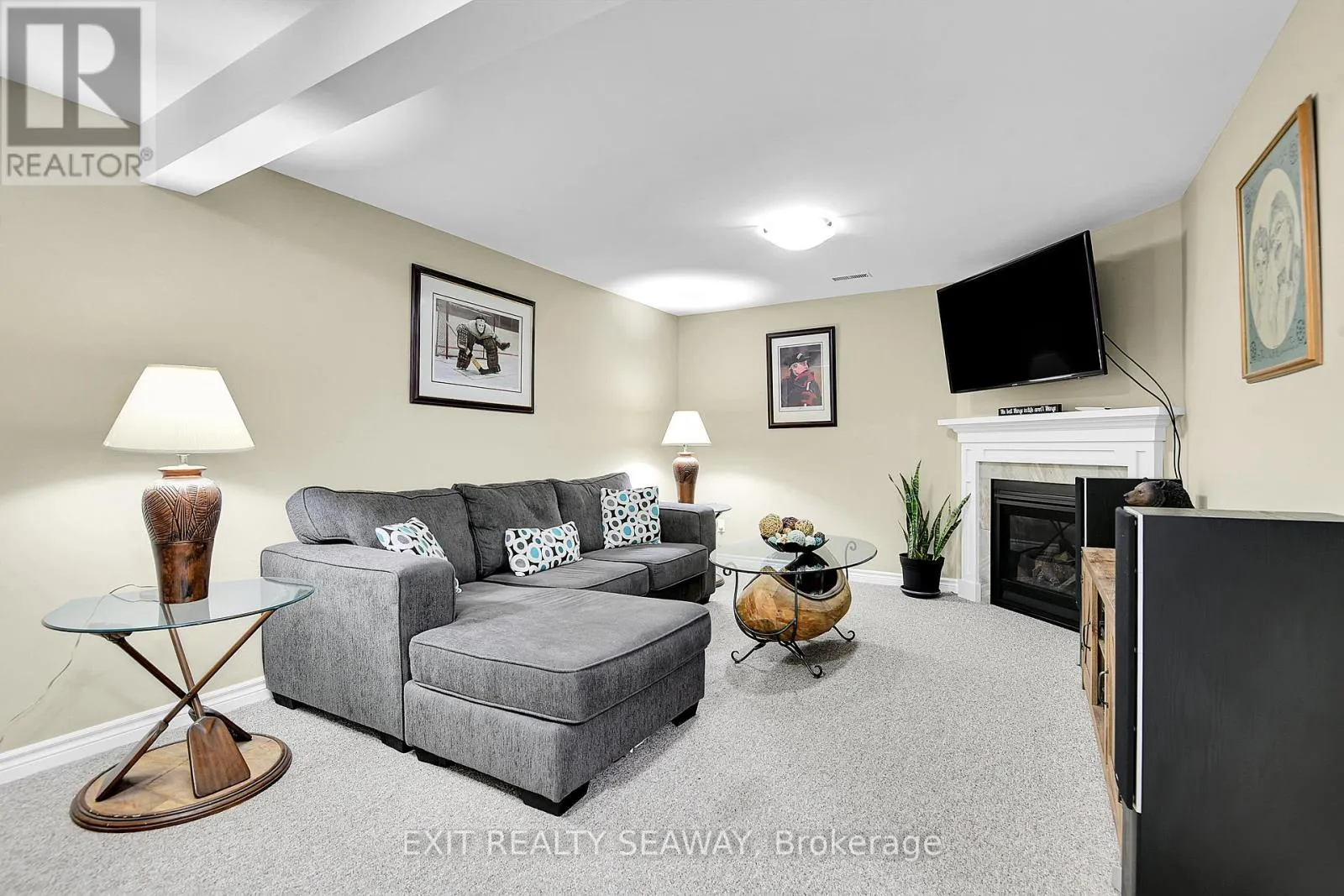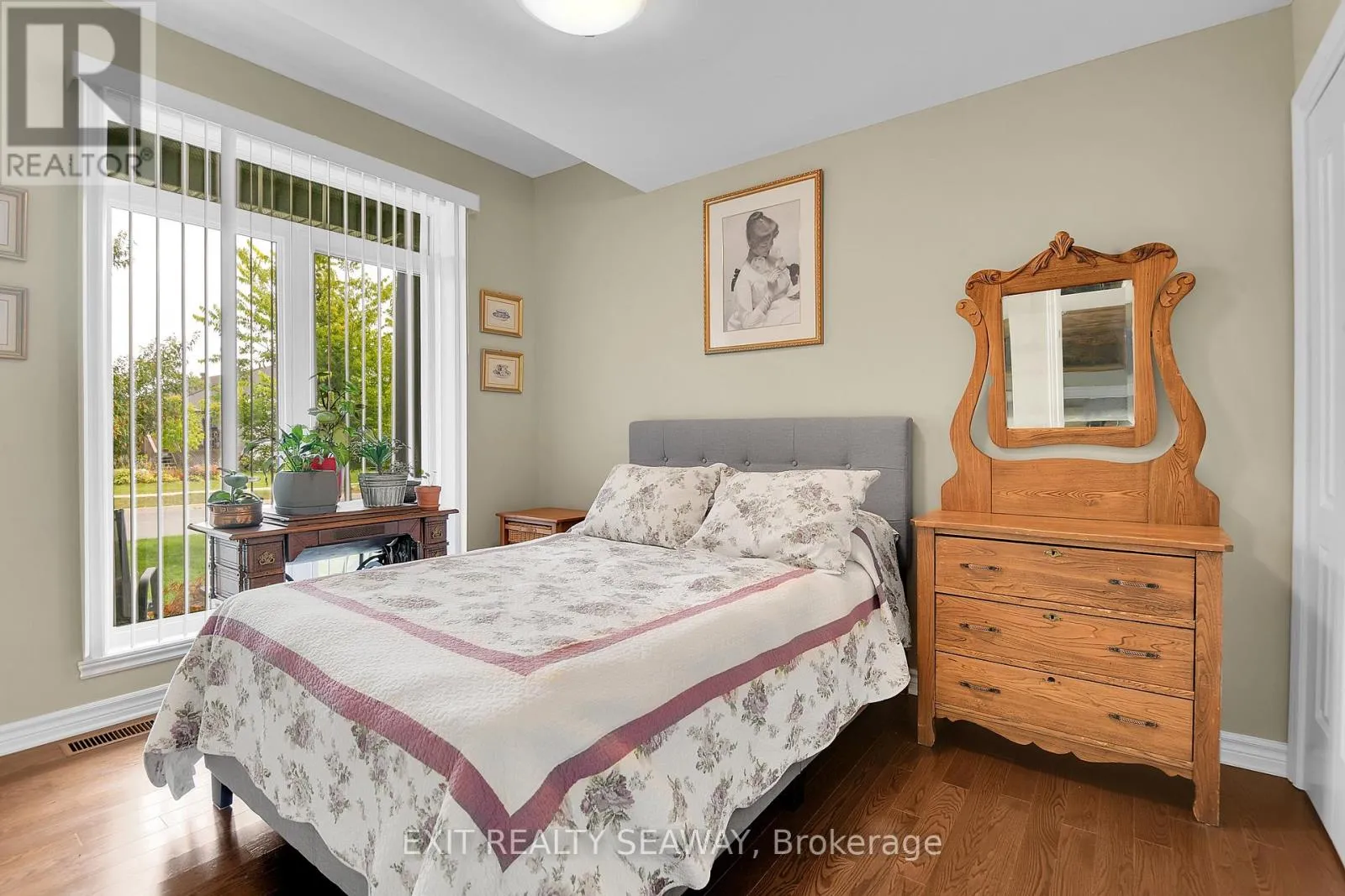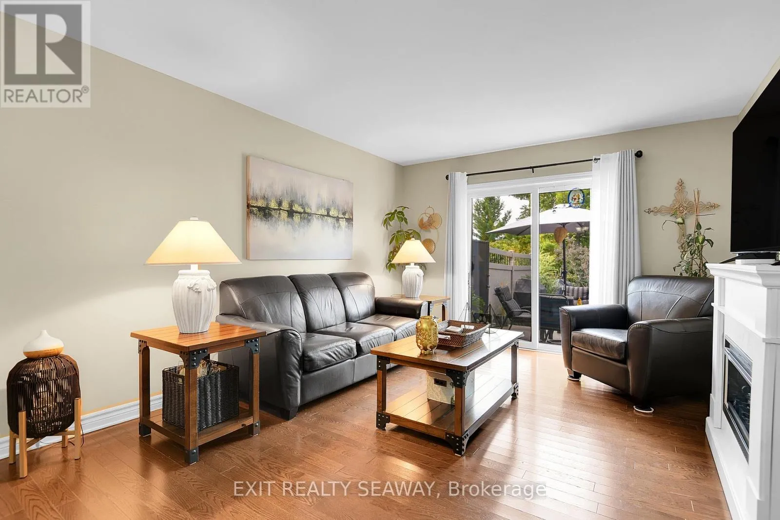 Cross Streets: Mercier. ** Directions: Pitt Street, go east on Mercier then onto Mauricy. Welcome to this charming semi-detached bungalow with attached garage, only 8 years young and beautifully maintained inside and out. The attractive exterior is complimented by meticulously landscaped gardens and a welcoming front porch, perfect for morning coffee. Step inside to an inviting main level featuring hardwood floors throughout. The well-designed kitchen offers a large island, two pantries, and flows seamlessly into the dining area. The living room is filled with natural light and opens through patio doors to a lovely back deck with wood and wrought iron railing, overlooking a fully fenced yard. Beyond the fence line, you'll find a cozy sitting area framed by mature trees, creating a peaceful retreat that even the birds enjoy. The main floor also includes two comfortable bedrooms, a full family bath, a convenient two-piece bath, and laundry on the main level. The finished basement extends the living space with a generous bedroom, a stylish four-piece bath, and an inviting recreation room warmed by a gas fireplace. A sizeable unfinished area remains, ideal for storage or ready for your future development plans. This home comes complete with refrigerator, stove, dishwasher, microwave, washer, and dryer, along with the efficiency of hot water on demand. Whether relaxing indoors or enjoying the tranquil backyard sanctuary, this property combines comfort, function, and charm, ready to welcome its next owners. (All offers irrevocable for 48 hours) (id:27476)