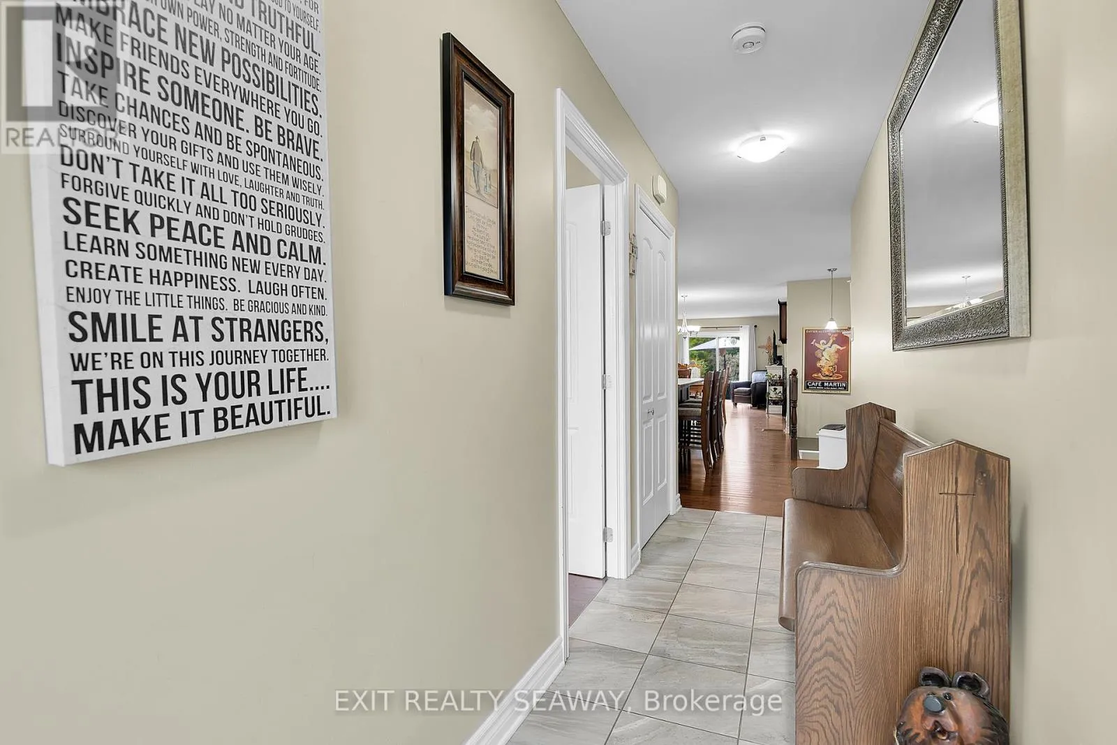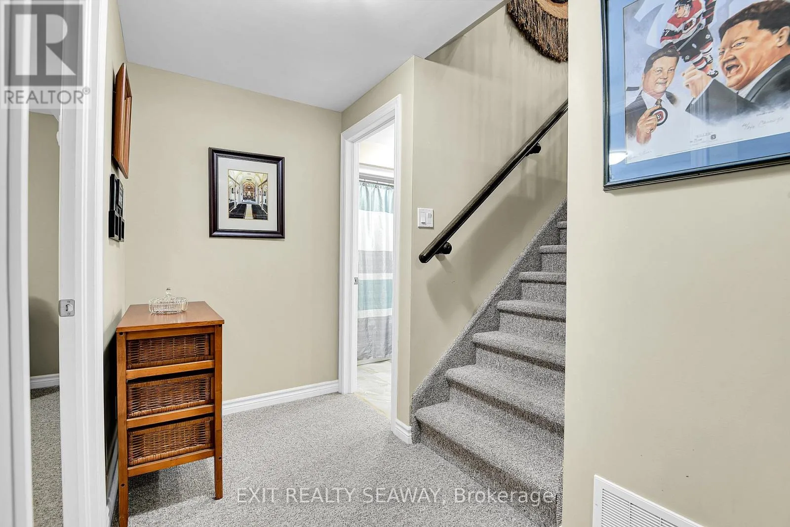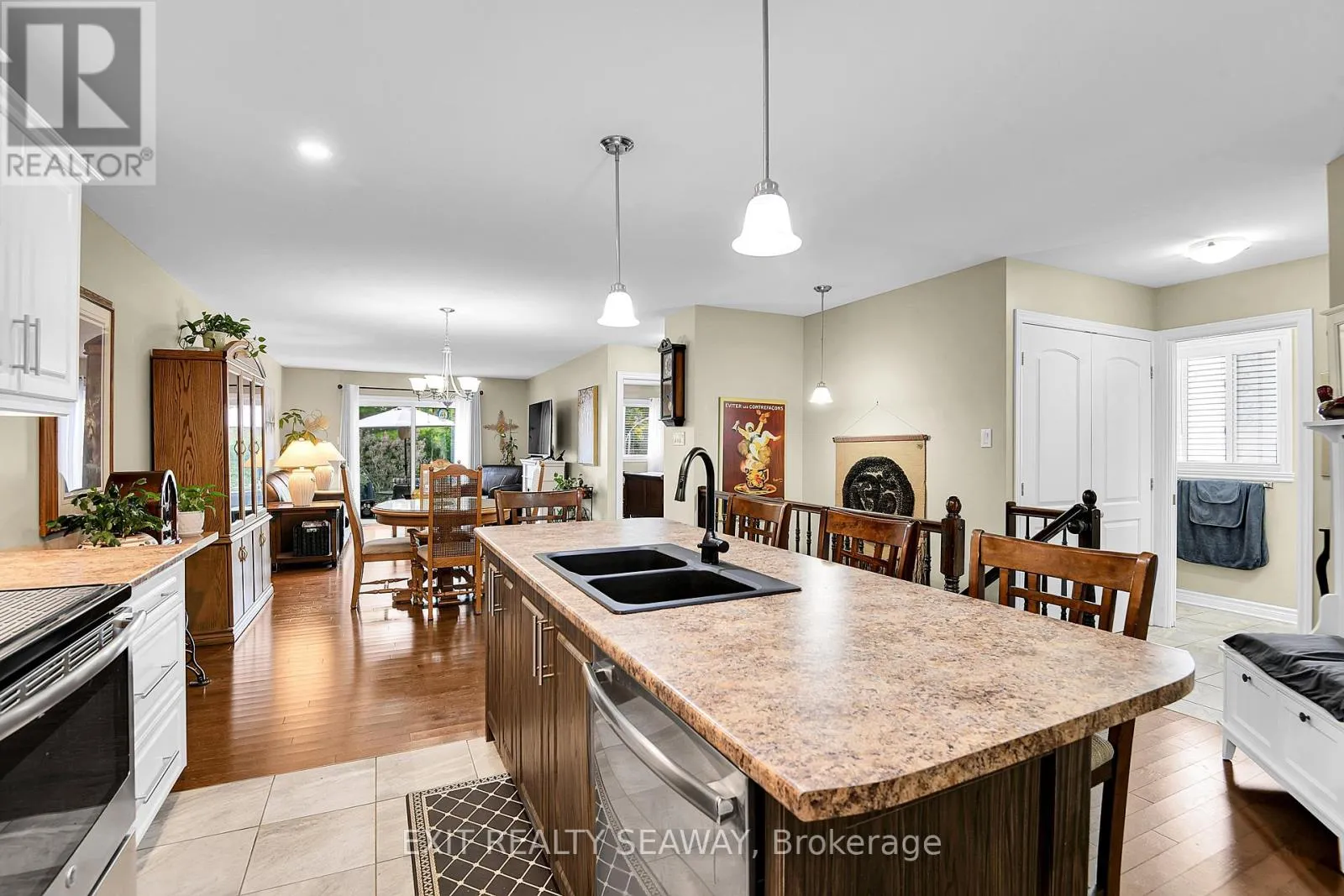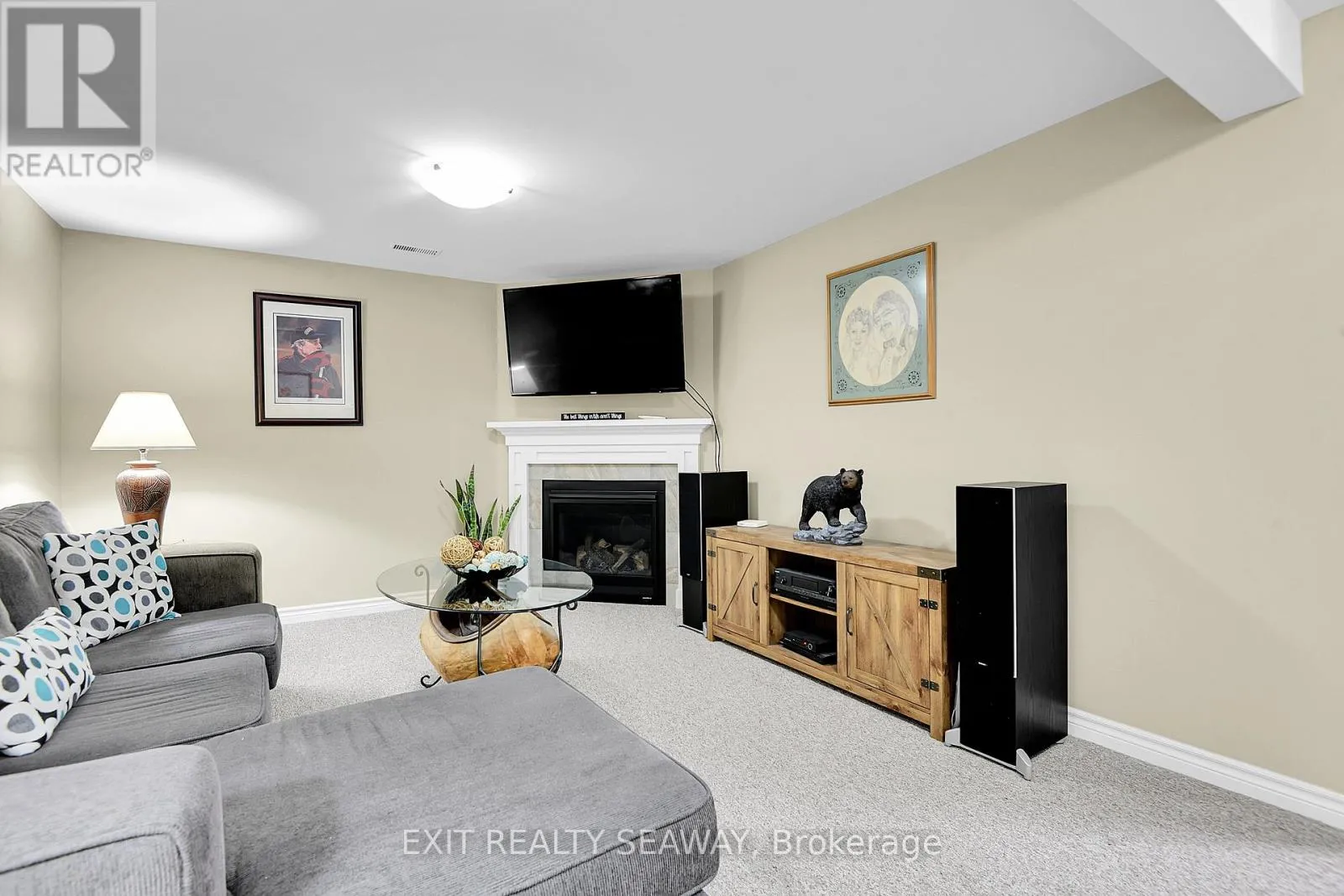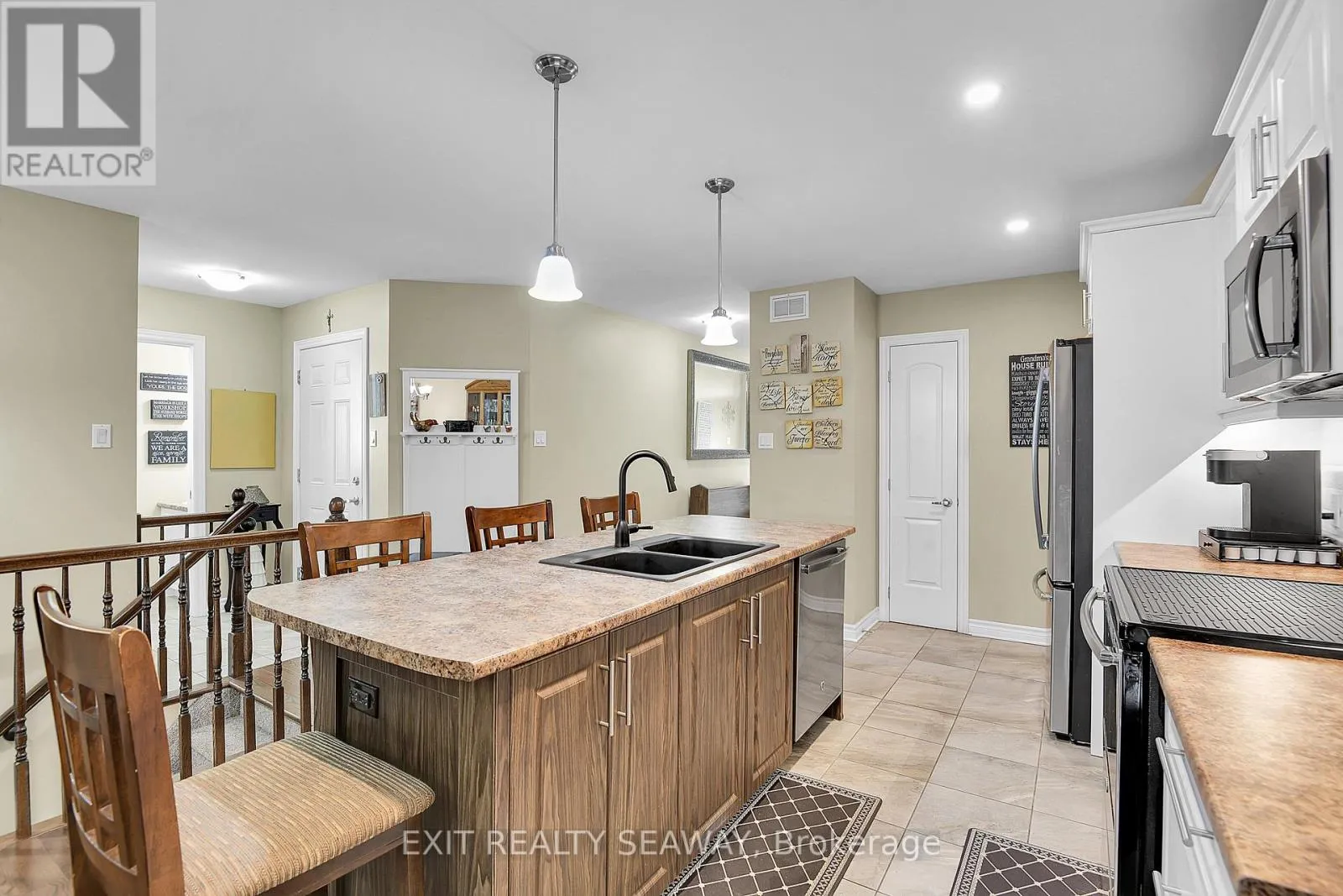 Cross Streets: Mercier. ** Directions: Pitt Street, go east on Mercier then onto Mauricy. Welcome to this charming semi-detached bungalow with attached garage, only 8 years young and beautifully maintained inside and out. The attractive exterior is complimented by meticulously landscaped gardens and a welcoming front porch, perfect for morning coffee. Step inside to an inviting main level featuring hardwood floors throughout. The well-designed kitchen offers a large island, two pantries, and flows seamlessly into the dining area. The living room is filled with natural light and opens through patio doors to a lovely back deck with wood and wrought iron railing, overlooking a fully fenced yard. Beyond the fence line, you'll find a cozy sitting area framed by mature trees, creating a peaceful retreat that even the birds enjoy. The main floor also includes two comfortable bedrooms, a full family bath, a convenient two-piece bath, and laundry on the main level. The finished basement extends the living space with a generous bedroom, a stylish four-piece bath, and an inviting recreation room warmed by a gas fireplace. A sizeable unfinished area remains, ideal for storage or ready for your future development plans. This home comes complete with refrigerator, stove, dishwasher, microwave, washer, and dryer, along with the efficiency of hot water on demand. Whether relaxing indoors or enjoying the tranquil backyard sanctuary, this property combines comfort, function, and charm, ready to welcome its next owners. (All offers irrevocable for 48 hours) (id:27476)