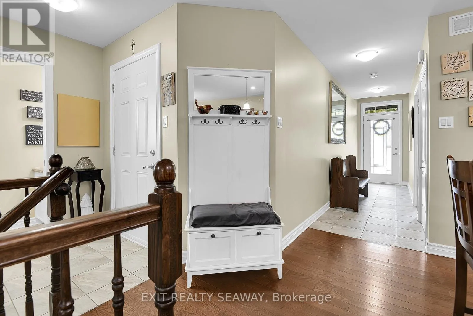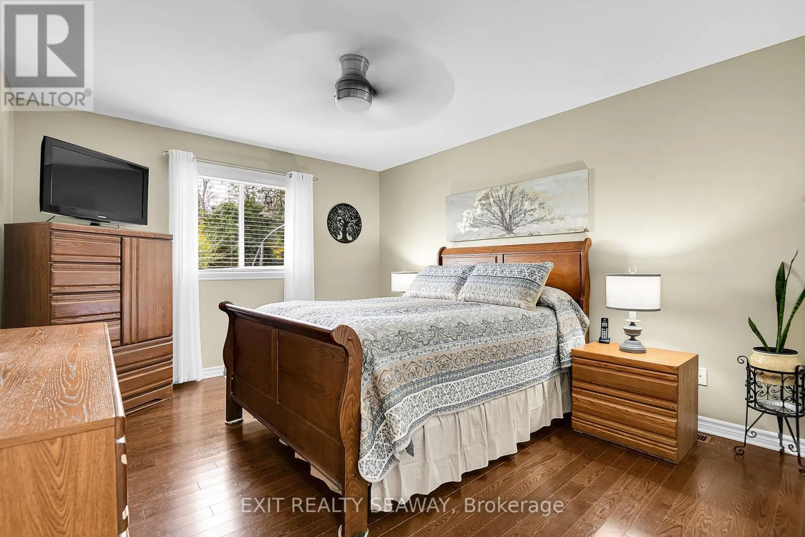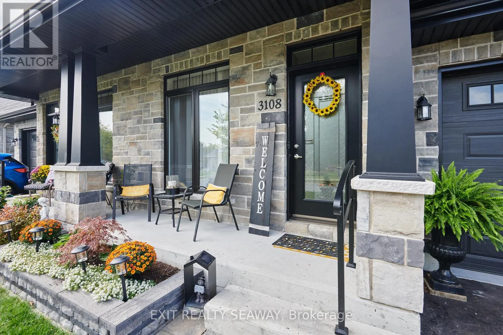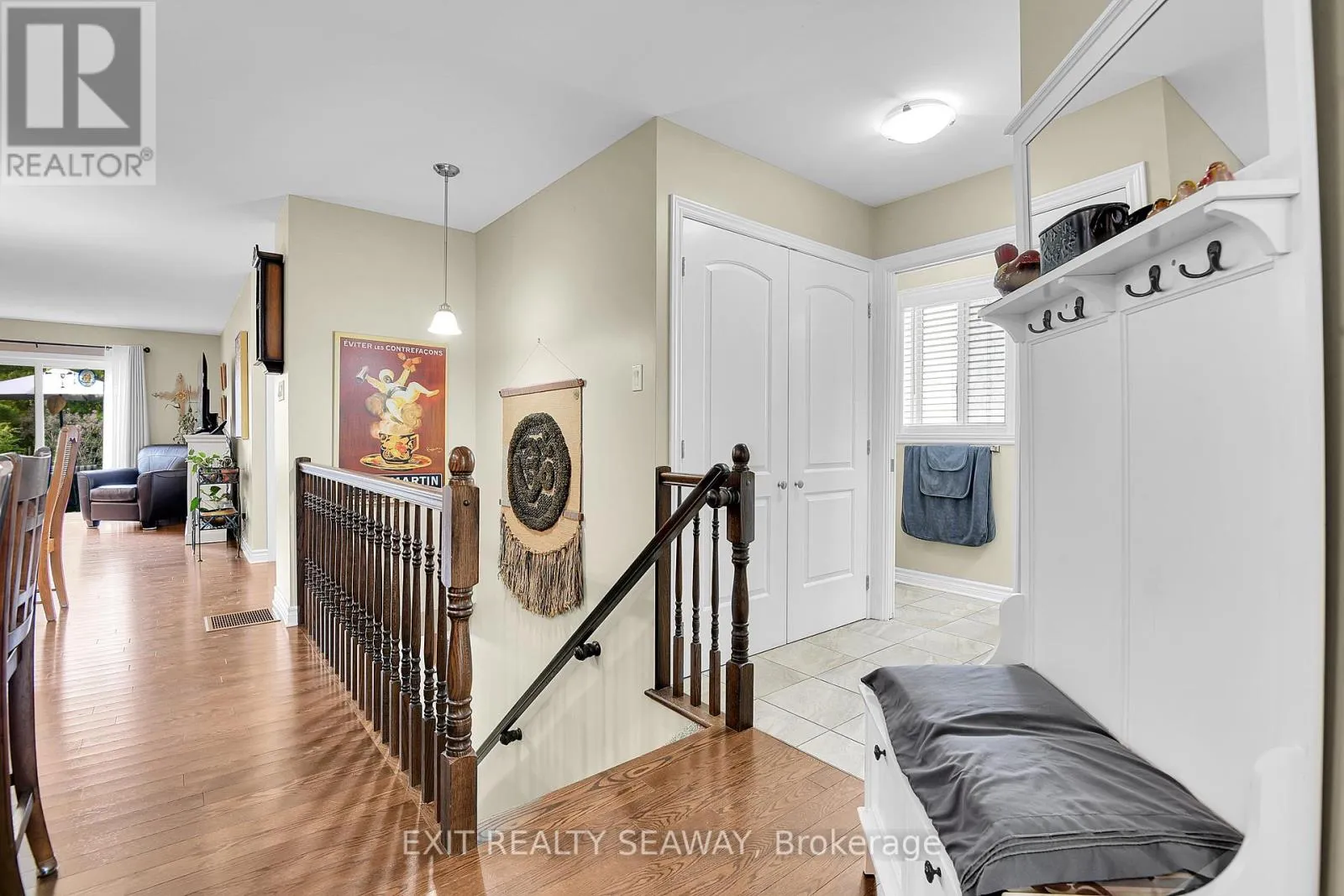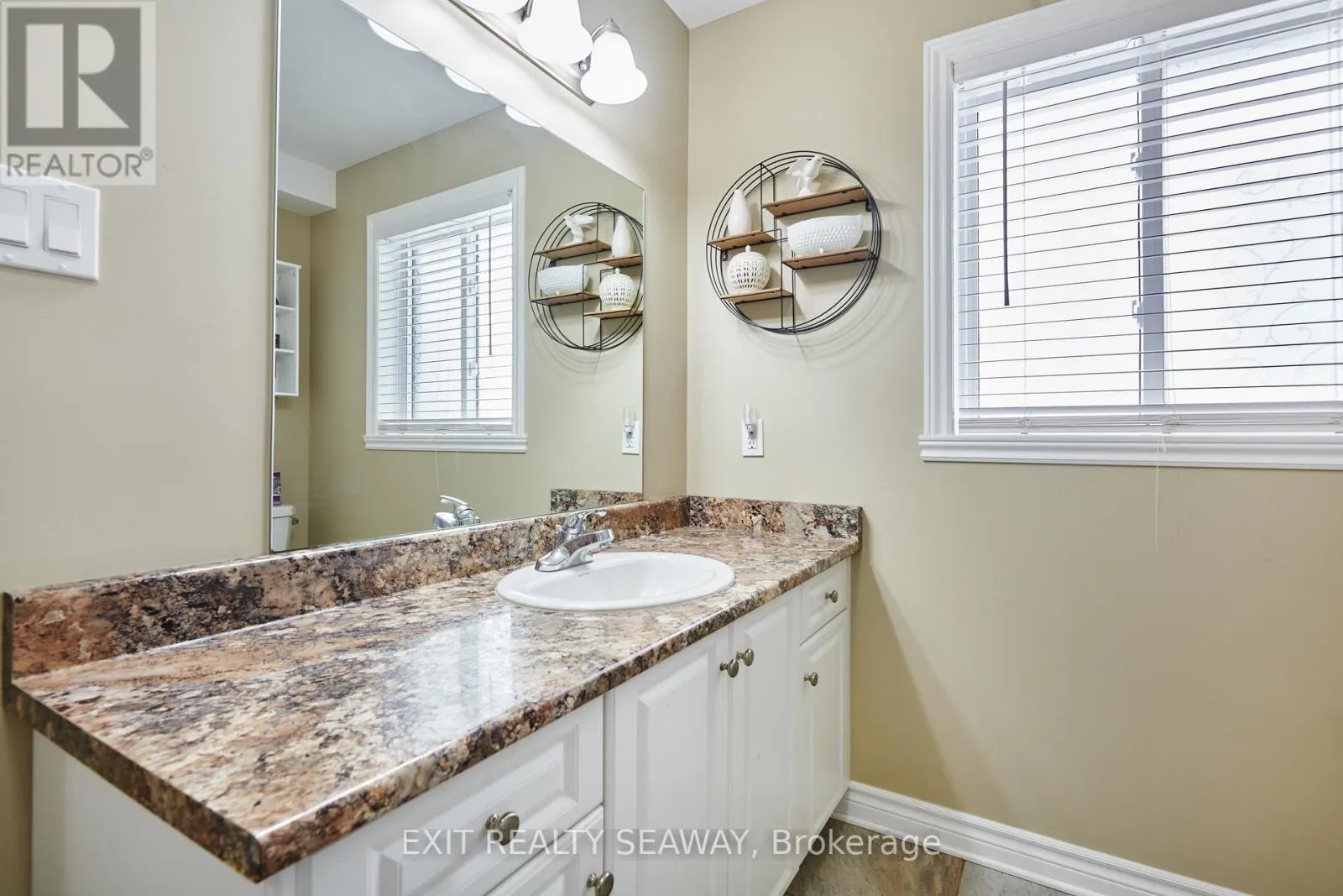Cross Streets: Mercier. ** Directions: Pitt Street, go east on Mercier then onto Mauricy. Welcome to this charming semi-detached bungalow with attached garage, only 8 years young and beautifully maintained inside and out. The attractive exterior is complimented by meticulously landscaped gardens and a welcoming front porch, perfect for morning coffee. Step inside to an inviting main level featuring hardwood floors throughout. The well-designed kitchen offers a large island, two pantries, and flows seamlessly into the dining area. The living room is filled with natural light and opens through patio doors to a lovely back deck with wood and wrought iron railing, overlooking a fully fenced yard. Beyond the fence line, you'll find a cozy sitting area framed by mature trees, creating a peaceful retreat that even the birds enjoy. The main floor also includes two comfortable bedrooms, a full family bath, a convenient two-piece bath, and laundry on the main level. The finished basement extends the living space with a generous bedroom, a stylish four-piece bath, and an inviting recreation room warmed by a gas fireplace. A sizeable unfinished area remains, ideal for storage or ready for your future development plans. This home comes complete with refrigerator, stove, dishwasher, microwave, washer, and dryer, along with the efficiency of hot water on demand. Whether relaxing indoors or enjoying the tranquil backyard sanctuary, this property combines comfort, function, and charm, ready to welcome its next owners. (All offers irrevocable for 48 hours) (id:27476)
