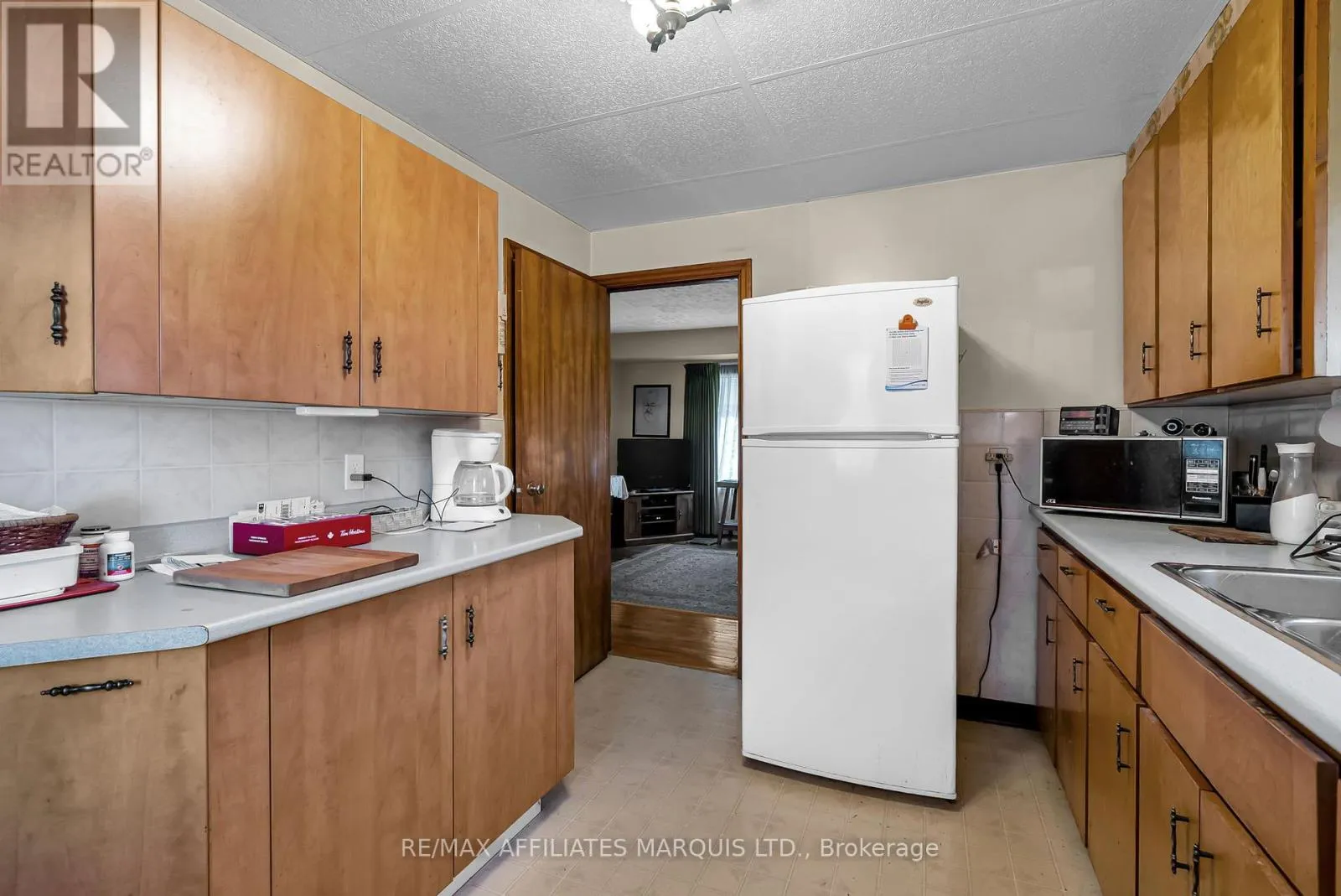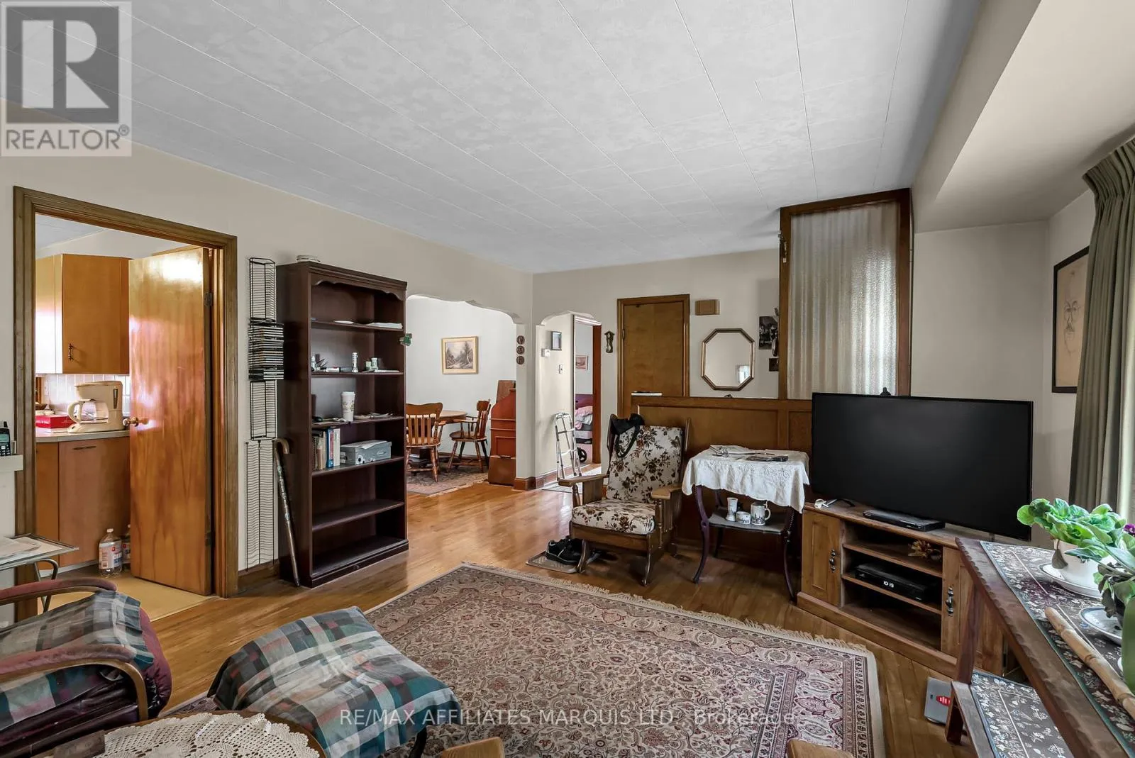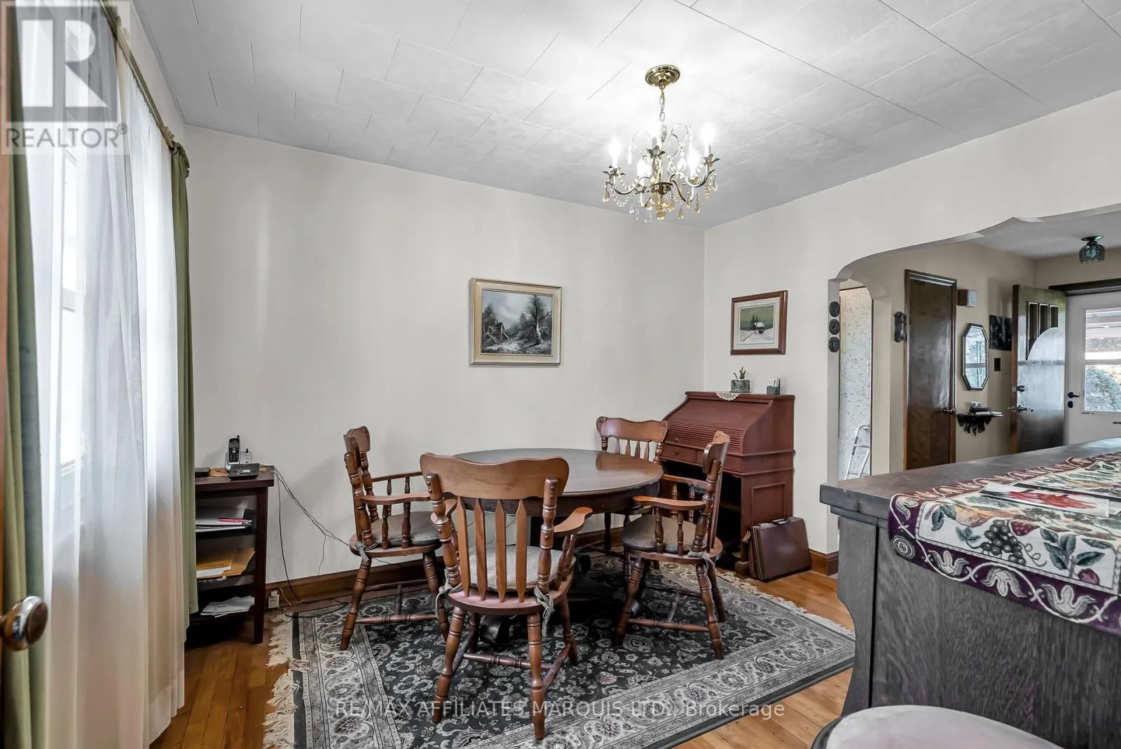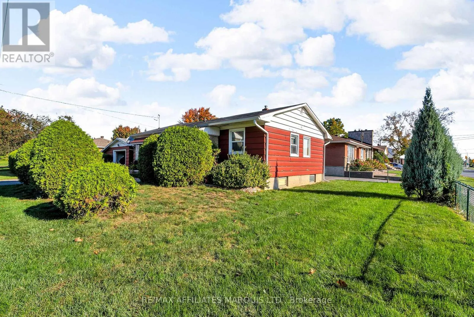 Cross Streets: Pitt St. & Thirteenth St. ** Directions: From Pitt Street, turn right onto Thirteenth St. West, 2nd right Gallinger Avenue, 1st home on right hand side look for signs. Centrally located on a 50 x 132 corner lot, this charming clapboard bungalow offers 2+1 bedrooms, 1.5 baths, and a detached 1.5 garage with workshop. Built in 1955, the home features a welcoming foyer, spacious living and dining rooms with original hardwood flooring, and a bright kitchen with ample cupboard and counter space, fridge, and stove included. The main level also provides two comfortable bedrooms with carpeting, a modern 3-piece bath with walk-in shower, and a rear porch for additional living space. Downstairs, a versatile office can easily convert to a third bedroom, alongside a laundry room with washer and dryer included, a workshop, storage room, and a convenient 1-piece bath with space to add a sink. Outside, enjoy a large fully fenced side yard ideal for outdoor living. Updates include forced-air natural gas furnace (2012), hot water tank (2020), and re-shingled roof. Conveniently located close to all amenities, schools, shopping, bus routes, and restaurants. Please allow 24hr irrevocable on all offers. (id:27476)