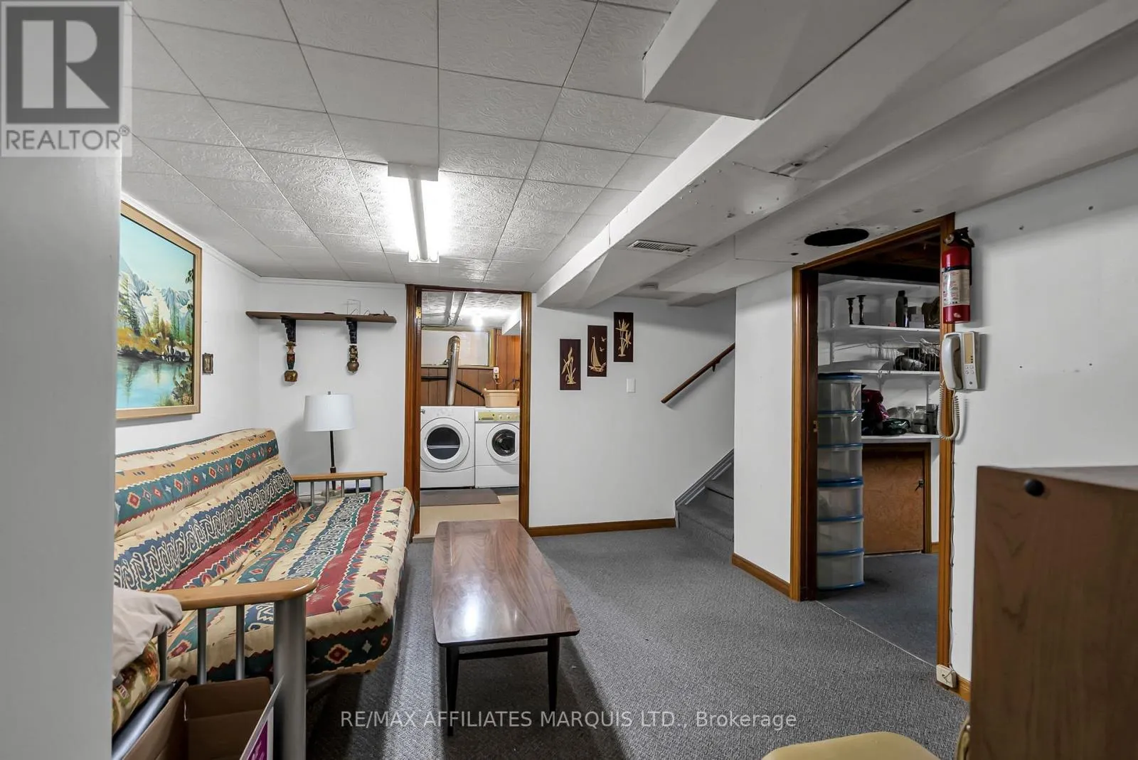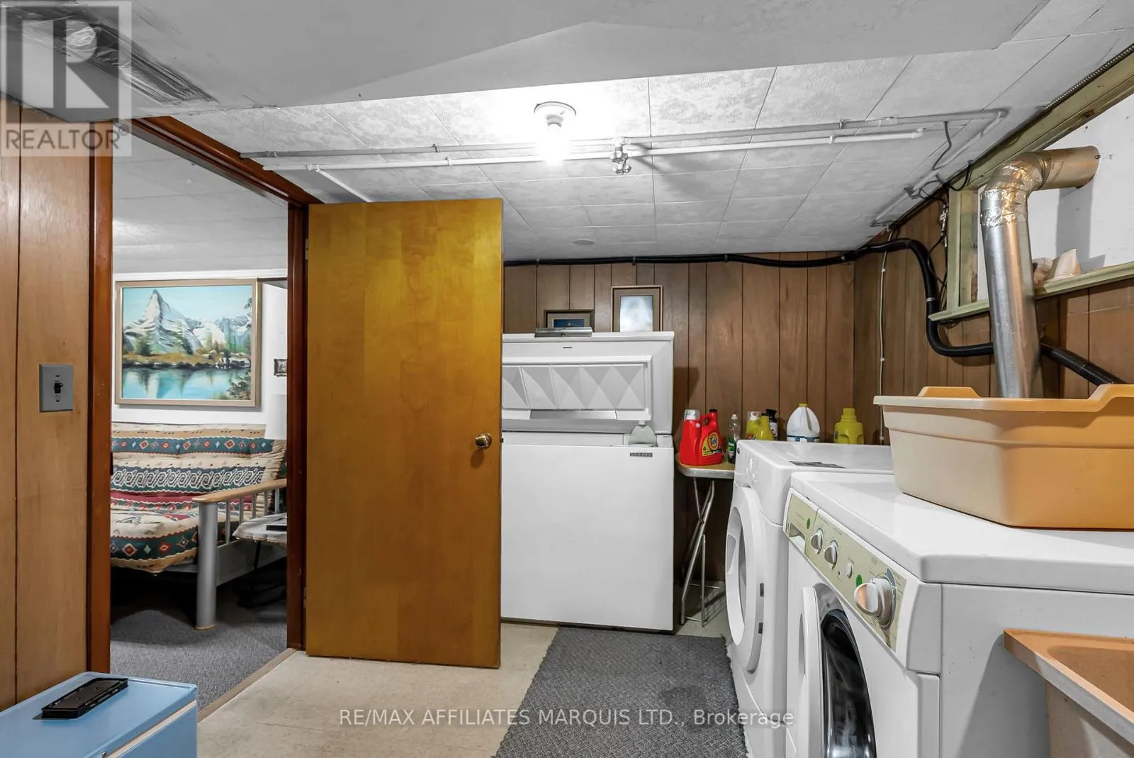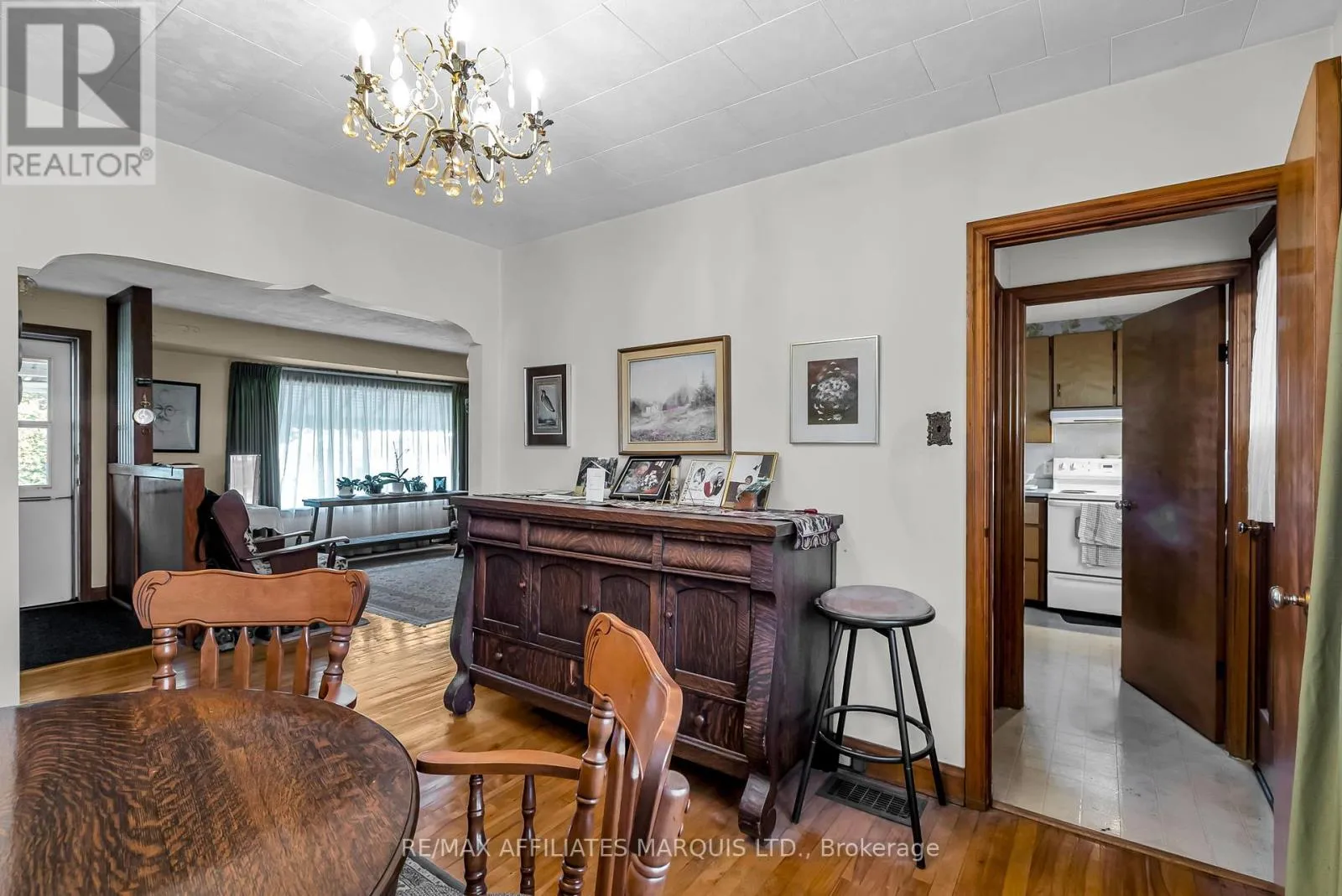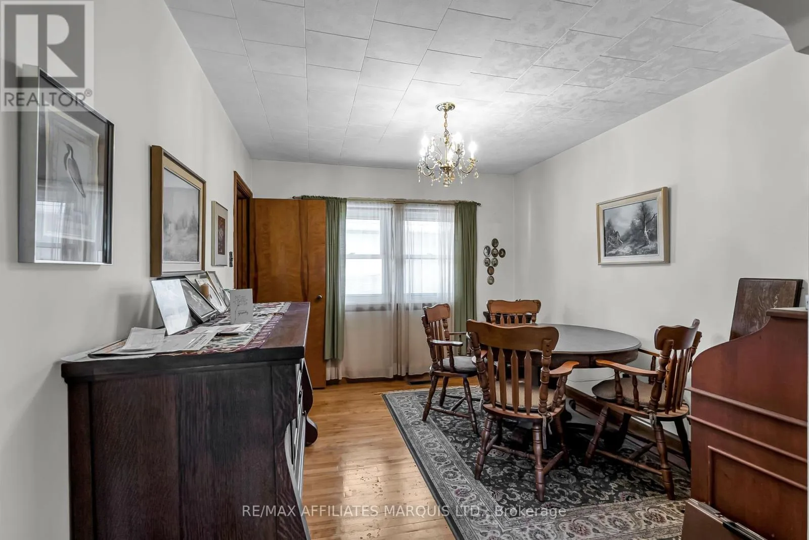 Cross Streets: Pitt St. & Thirteenth St. ** Directions: From Pitt Street, turn right onto Thirteenth St. West, 2nd right Gallinger Avenue, 1st home on right hand side look for signs. Centrally located on a 50 x 132 corner lot, this charming clapboard bungalow offers 2+1 bedrooms, 1.5 baths, and a detached 1.5 garage with workshop. Built in 1955, the home features a welcoming foyer, spacious living and dining rooms with original hardwood flooring, and a bright kitchen with ample cupboard and counter space, fridge, and stove included. The main level also provides two comfortable bedrooms with carpeting, a modern 3-piece bath with walk-in shower, and a rear porch for additional living space. Downstairs, a versatile office can easily convert to a third bedroom, alongside a laundry room with washer and dryer included, a workshop, storage room, and a convenient 1-piece bath with space to add a sink. Outside, enjoy a large fully fenced side yard ideal for outdoor living. Updates include forced-air natural gas furnace (2012), hot water tank (2020), and re-shingled roof. Conveniently located close to all amenities, schools, shopping, bus routes, and restaurants. Please allow 24hr irrevocable on all offers. (id:27476)