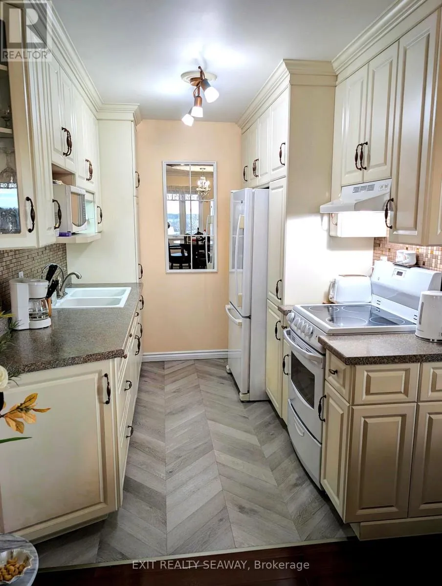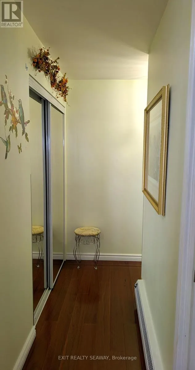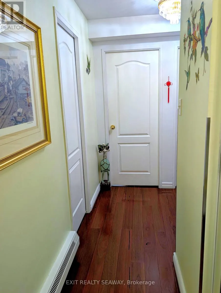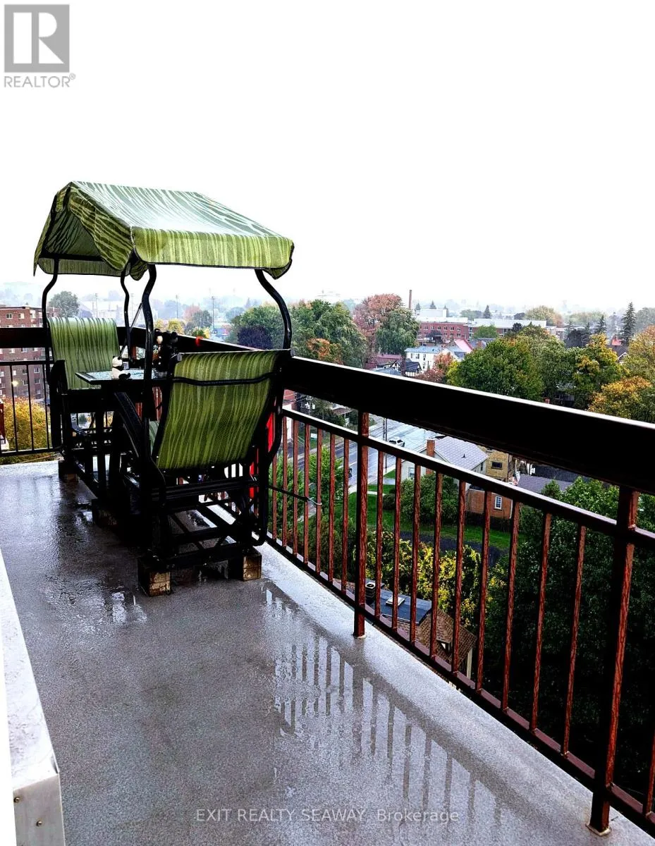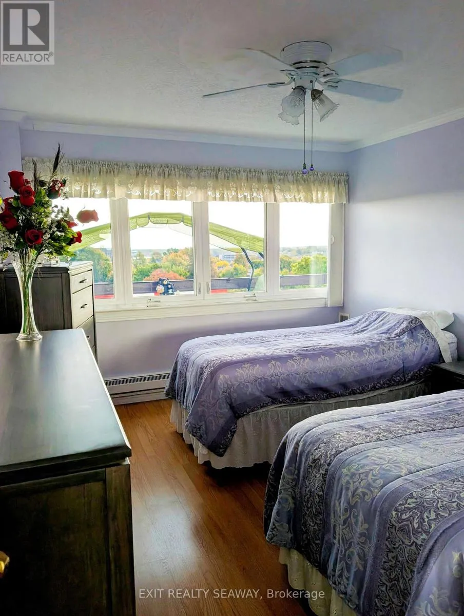 Cross Streets: Adolphus. ** Directions: East. Welcome to your serene sanctuary in the sky, an updated two-bedroom condo perched on the top floor of a coveted downtown building. This rare gem offers sweeping panoramic views of the cityscape and the majestic St. Lawrence River, delivering breathtaking sunrises and all-day natural light. Enjoy the perfect balance of brightness and comfort with professionally installed Hunter Douglas blinds, designed to manage heat and light throughout the seasons. Gleaming hardwood floors guide you through a spacious, thoughtfully designed layout that includes a generous living room ideal for relaxing or hosting guests, a separate dining room perfect for entertaining, and a well-appointed kitchen with ample cabinetry and storage for your culinary adventures. Every detail has been designed to create a warm and functional living space. Modern updates blend seamlessly with classic charm, offering a home that feels both elevated and inviting. Whether you're sipping coffee while watching the sunrise or unwinding with the city lights below, this condo offers a lifestyle that's truly above and beyond. With tranquility, convenience, and elegance wrapped into one, this is your opportunity to own a piece of the sky. Come see the view, feel the warmth, and make it yours. (id:27476)