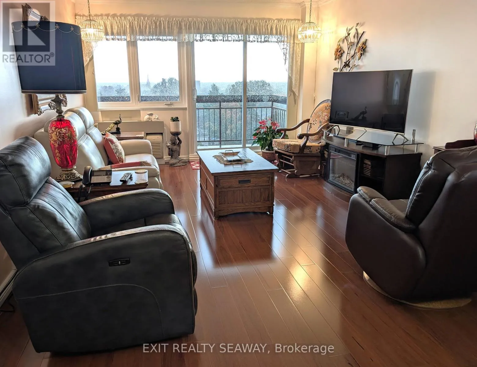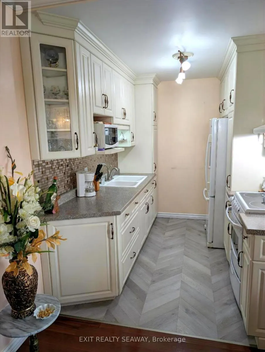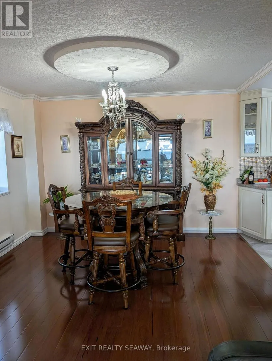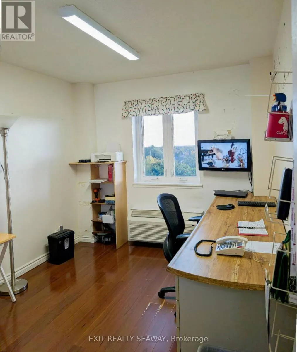 Cross Streets: Adolphus. ** Directions: East. Welcome to your serene sanctuary in the sky, an updated two-bedroom condo perched on the top floor of a coveted downtown building. This rare gem offers sweeping panoramic views of the cityscape and the majestic St. Lawrence River, delivering breathtaking sunrises and all-day natural light. Enjoy the perfect balance of brightness and comfort with professionally installed Hunter Douglas blinds, designed to manage heat and light throughout the seasons. Gleaming hardwood floors guide you through a spacious, thoughtfully designed layout that includes a generous living room ideal for relaxing or hosting guests, a separate dining room perfect for entertaining, and a well-appointed kitchen with ample cabinetry and storage for your culinary adventures. Every detail has been designed to create a warm and functional living space. Modern updates blend seamlessly with classic charm, offering a home that feels both elevated and inviting. Whether you're sipping coffee while watching the sunrise or unwinding with the city lights below, this condo offers a lifestyle that's truly above and beyond. With tranquility, convenience, and elegance wrapped into one, this is your opportunity to own a piece of the sky. Come see the view, feel the warmth, and make it yours. (id:27476)
