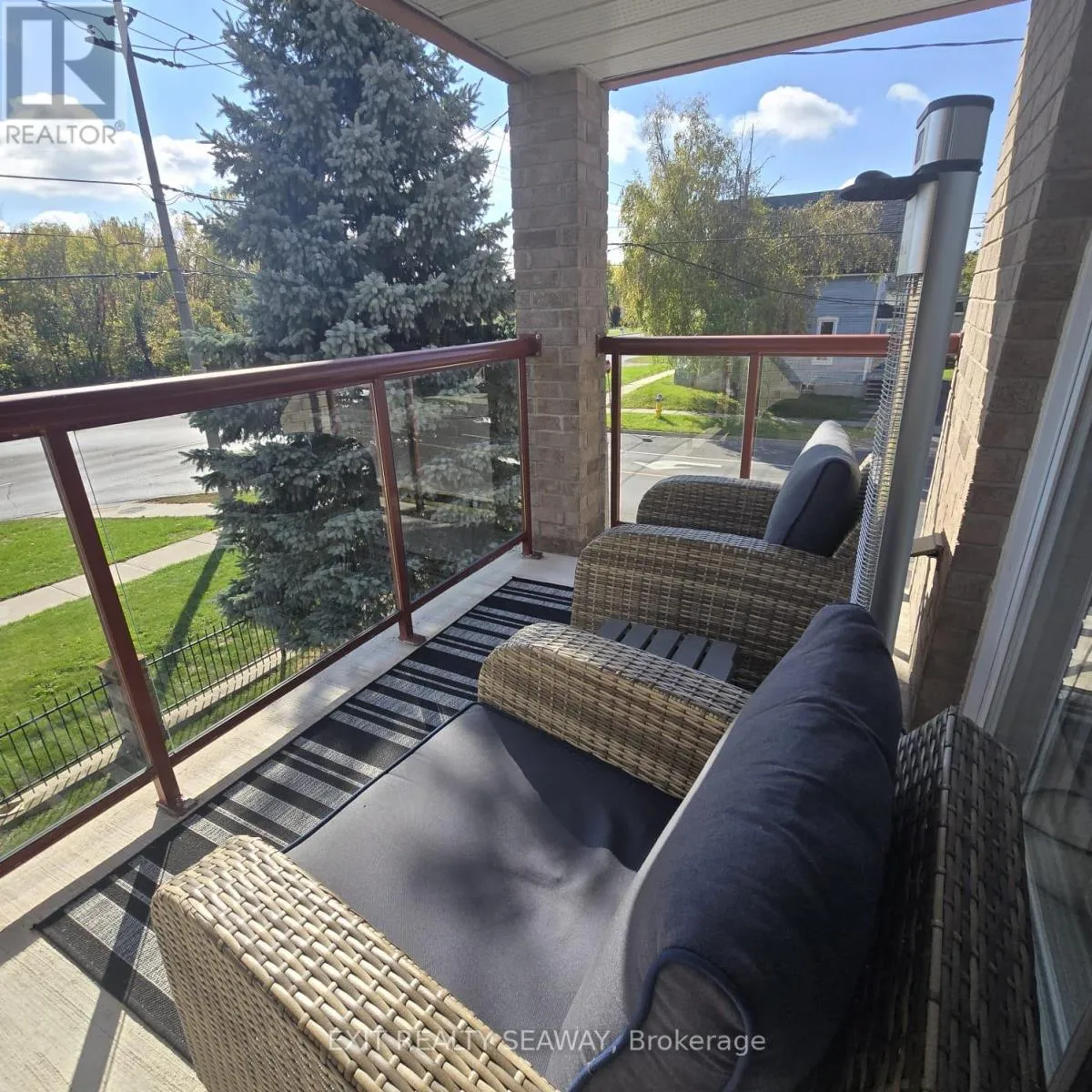 Cross Streets: Cumberland. ** Directions: Corner of Water Street & Cumberland Street. Experience the best of Cornwall living in this bright and inviting corner-unit condo at 341 Water Street West. Perfectly situated across from the scenic St. Lawrence River, this home offers relaxing water views, easy access to Lamoureux Park, and a short walk to downtown boutiques, cafés, and restaurants.Inside, youll find an open-concept layout filled with natural light. The kitchen provides generous counter space and overlooks the dining and living areas ideal for both everyday living and entertaining. The living rooms gas fireplace adds warmth and comfort, while patio doors lead to a private balcony where you can enjoy peaceful river views and the changing seasons. The spacious primary bedroom features a walk-in closet and a beautifully updated 3-piece en-suite bathroom, creating a restful retreat. A second bedroom offers flexibility for guests, a home office, or hobby space, and is conveniently located near the updated 3-piece main bathroom. Additional highlights include in-suite laundry, a dedicated storage area, new bedroom carpeting, and two renovated bathrooms completed within the past year. This well-maintained building continues to see improvements, including a new front walkway, upcoming driveway replacement, and fresh interior paint. Residents enjoy underground parking, a private storage locker, and a community patio with BBQ are a perfect for gatherings with friends and neighbours. Offering comfort, convenience, and a prime north waterfront location, this condo provides an ideal opportunity to enjoy Cornwall's vibrant riverfront lifestyle. All offers must be irrevocable for 24 hours, excluding Sundays. (id:27476)