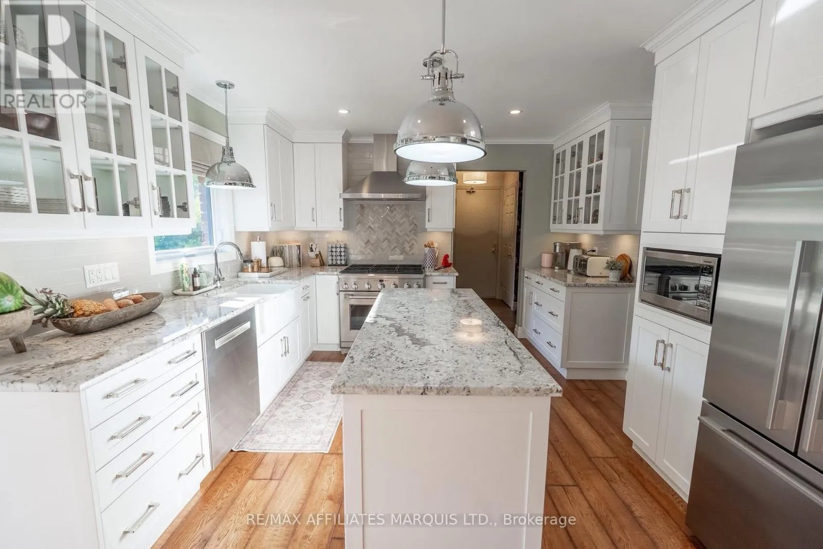 Cross Streets: Grant. ** Directions: Power Dam, East on Grant, North on Blakely. Executive 3,240 sq ft home offering timeless elegance, modern updates, and incredible space for family living. From the moment you step inside, the grand foyer and sweeping staircase make a striking impression, setting the stage for the high-end style carried throughout the home. The bright gourmet kitchen is the heart of the home, showcasing granite countertops, a coffee bar, a sprawling island, and gorgeous designer lighting. It flows seamlessly into the family room with its cozy gas fireplace, while the formal dining room provides the perfect space for entertaining. A main floor office offers convenience for working from home, while the custom laundry area with built-ins, dual staircases, and stylish powder room complete this level. Upstairs, discover a spectacular family room with vaulted ceilings, a gas fireplace, and custom built-in entertainment wall. Two generously sized childrens bedrooms are paired with an updated 4-piece bath and additional 2-piece bath. The primary suite is a true retreat with a walk-in closet, a serene sitting area overlooking the foyer, and a spa-inspired ensuite with modern finishes. The fully finished basement was started from a blank canvas and designed with care, offering two oversized bedrooms, a spacious recreation room, and abundant storage. Outside, the backyard is a private oasis and a gardeners dream, complete with lush perennial gardens and a stone patio perfect for both relaxation and entertaining. A two-car garage adds practicality to this stunning property. Located in a highly sought-after neighborhood, this home combines executive luxury with everyday comfort. With its multiple lounging areas, elegant design, and outdoor sanctuary, its a property that truly checks all the boxes. Walking distance to some of Cornwalls best schools! (id:27476)