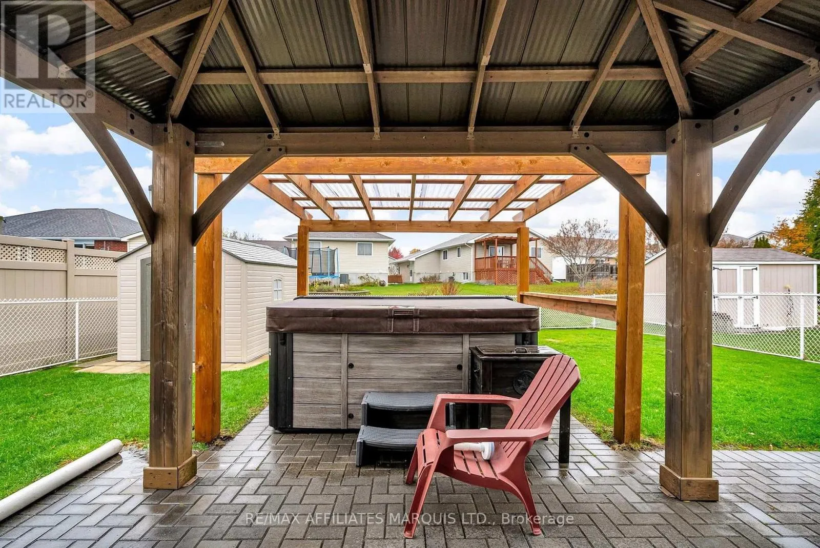 Cross Streets: Wellington. ** Directions: Turn east off Pitt on to Wellington. Nestled in a most sought-after and peaceful neighborhood, this immaculate Markell-built 3+1 bedroom home offers a perfect blend of warmth, comfort, and style. Step inside to find gleaming hardwood floors throughout the main level and a bright, inviting living room that seamlessly flows into the eat-in kitchen, ideal for family meals and entertaining.The recently renovated custom bathroom adds a touch of modern luxury, while the fully finished basement provides abundant space for kids with a cozy rec room, office area, 2 pce bath, laundry and the 4th bedroom. Outside, enjoy a private fenced backyard complete with a hot tub under a charming pergola, plus a separate gazebo-the perfect setting for year-round relaxation. Additional highlights include an attached garage, newer windows, and a high-efficiency gas furnace. Every inch of this property has been lovingly maintained and it truly shows-a move-in ready home that shines inside and out! (id:27476)