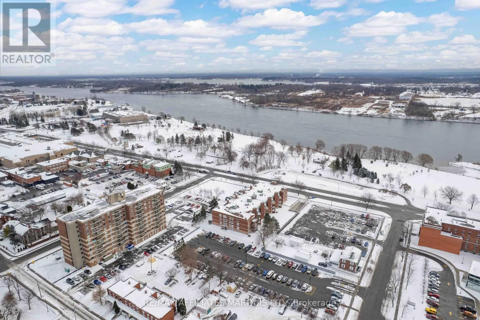 Cross Streets: Augustus Street. ** Directions: Located on the north side of Water Street, between Augustus and York Street. Live life at the top! Stunning Top Floor Condo with Breathtaking Views! Imagine living in the best unit of a sought-after, professionally managed building. Perched at the front of the top floor, this unit offers you unparalleled views of Lamoureux Park and the picturesque St. Lawrence River. This beautifully renovated (2024) condo features high-end finishes and custom built-ins that create a perfect blend of luxury and comfort. With two spacious bedrooms and two full bathrooms, this home is designed for relaxation and day-to-day functionality. The inviting gas fireplace adds warmth to your stylish living space, while the bright and open layout promotes a seamless flow throughout the home. An additional sunroom or flex area provides the perfect spot for a home office, reading nook, or vibrant exercise zone. Enjoy the convenience of a large parking space, a dedicated storage locker, and a car wash area, all included for your ease. With condo fees that cover water taxes, gas heating and air conditioning, life here is both comfortable and stress-free. Located just steps away from downtown, you have easy access to shopping, restaurants, and all the vibrant events that Lamoureux Park hosts throughout the year. Don't miss the opportunity to embrace a lifestyle of comfort and elegance in this prime location! Schedule your viewing today and see why this stunning condo is the perfect place to call home. (id:27476)