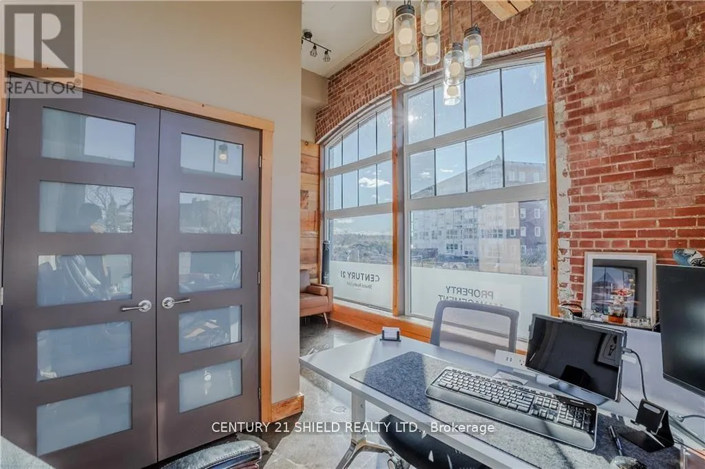 From 2nd Street head South on McConnell Ave and East on Cotton Mill St Nestled in Cornwall's historic Cotton Mill District, this 2,939 sq. ft. main-floor office space blends modern functionality with timeless charm. Located within a prestigious condominium building featuring luxury residential condos and professional commercial units, this property offers unparalleled street visibility and full handicap accessibility. The interior boasts 13 well-appointed offices, 2 washrooms, a striking front reception area, and soaring high ceilings accentuated by exposed brick and industrial finishes. This unique space exudes a professional yet contemporary atmosphere, perfect for fostering creativity and productivity. Currently occupied by long-term tenants, the unit generates steady income with a 5-year lease in place and a 3-year renewal at escalating terms. Positioned in the revitalized Cotton Mill District, this property represents a rare opportunity to invest in a prime location with enduring appeal and potential. (id:27476)