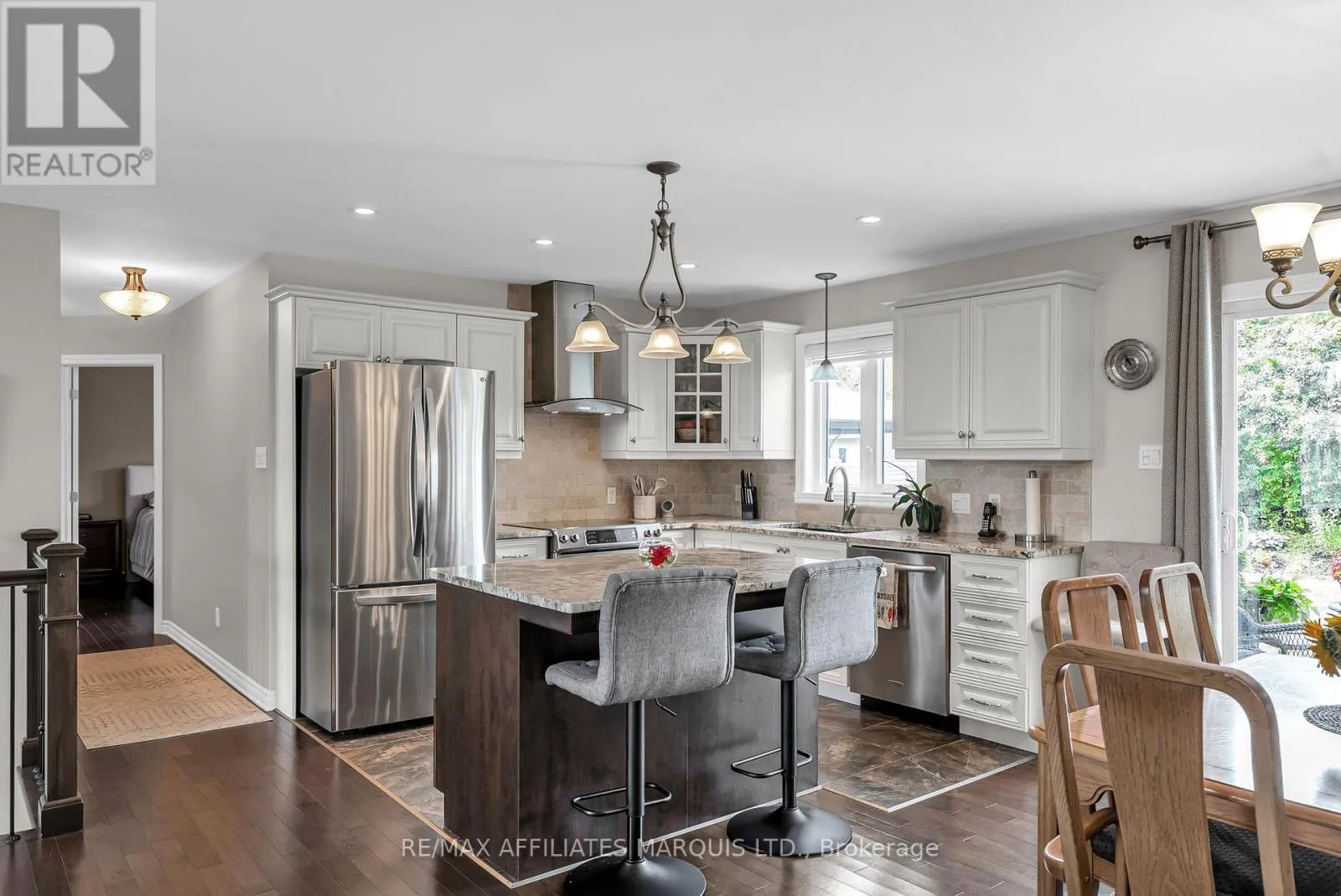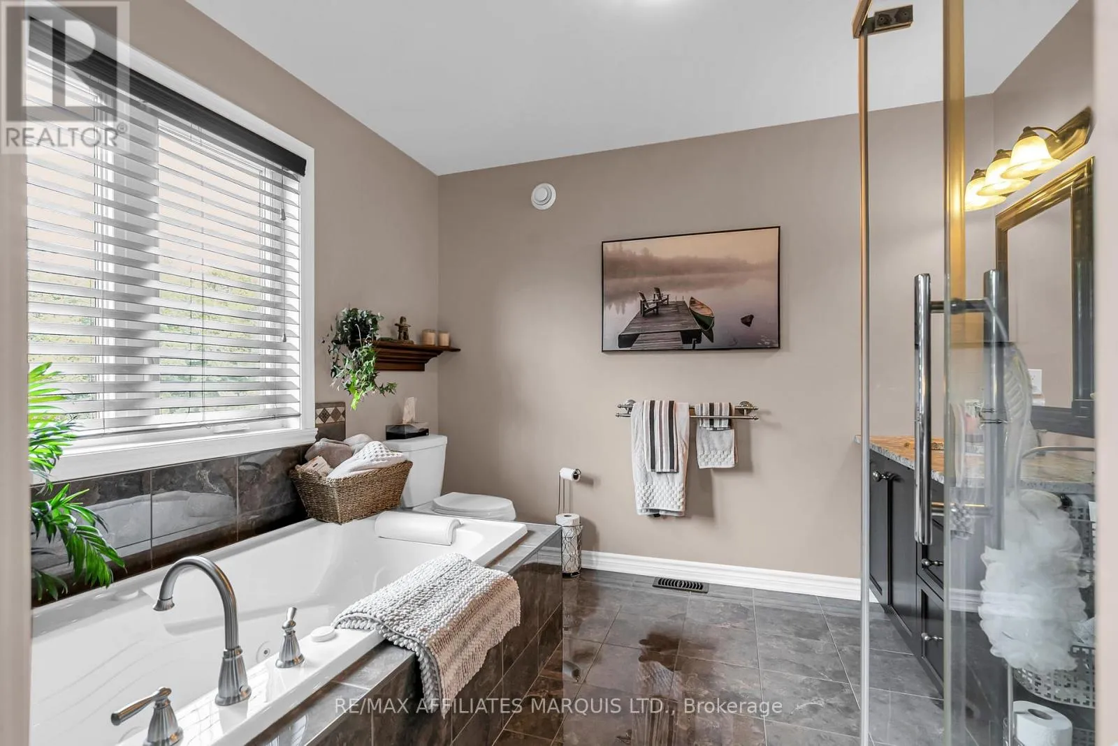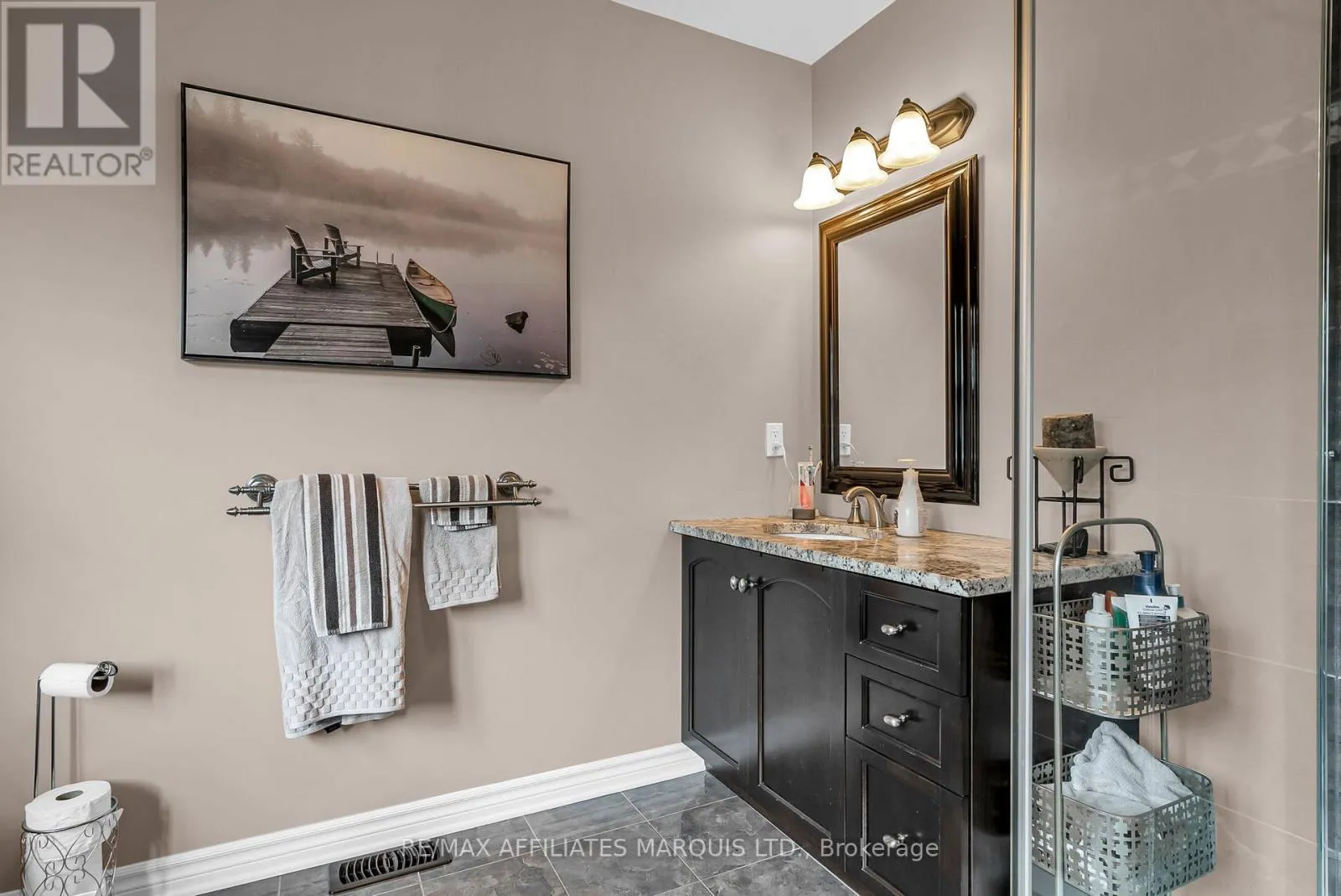 Cross Streets: County Rd 2/ Yacht Blvd. ** Directions: From County Road 2, head North onto Yacht Blvd. Welcome to this elegant stone home in the sought-after Place St. Laurent Subdivision, offering a blend of comfort, functionality, and timeless appeal. The main floor features three bedrooms including a primary suite with a full 4-piece ensuite, along with an additional 3-piece bathroom. An open-concept design connects the bright living and dining areas to a beautifully appointed kitchen with granite countertops, abundant cabinetry, and direct access to the backyard. Convenient main-floor laundry, generous closet space, and an attached double garage add to the ease of everyday living. Downstairs, the finished lower level includes a theatre room, spacious recreation room, an additional bedroom, a 3-piece bathroom, utility room, and ample storage. Step outside from the dining area to enjoy a partially fenced yard with a hot tub and retractable awning perfect for relaxation or entertaining. Complete with natural gas heating and set in one of the areas most prestigious neighbourhoods, this home is a true standout. 24 hour irrevocable on all offers. (id:27476)