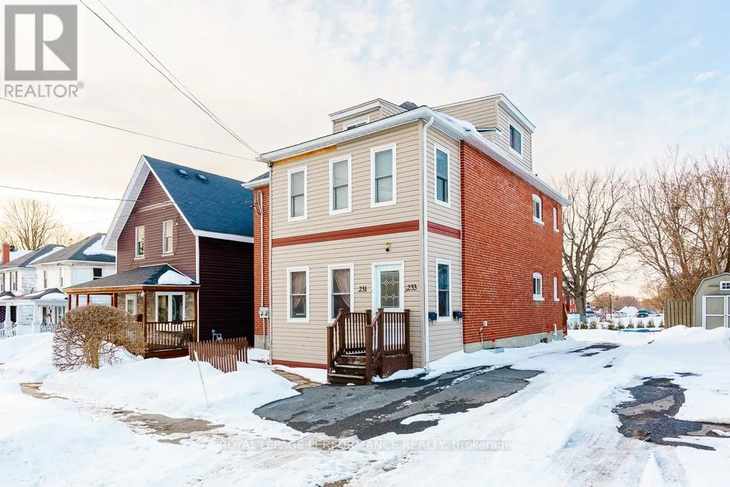 Cross Streets: Fifth and Adolphus. ** Directions: From Augustus, turn on fifth st, Property on right. Don't miss out on this opportunity! Extremely well maintained, massive duplex. This 5 bedroom and 3 bathroom with an oversized lot is the biggest duplex on the largest lot for sale today in Cornwall. Besides the room to roam inside and out, It is in wonderful shape; Perfect for an owner occupied investment. This beauty has High ceilings at 8'4", original hardwood flooring, and a great layout on each level. Each unit is larger than the average bungalow (Lower unit 1160 sq ft and the upper unit 1720 sq ft) The upper unit (#233) has two floors of living space, along with a second 3-piece bathroom, front 3 season covered balcony, back mudroom with stairs that lead to the back entrance, private basement, and laundry. There is also central air for the second floor (the 3rd floor has electric heat and a window unit for the A/C). The lower unit (#231) boasts a front 3 season mudroom, a back entrance with stairs to the private basement and laundry. Separate electric meters, 2 brand new forced air, natural gas furnaces (2025) 2 new Hot water tanks (2024), roof shingles, eaves and downspouts were new in approx 2015. There are no rear neighbors and the land behind the building was purchased so it is now an extra large lot. Zoned for RES30, there could be future potential for expansion or addition. This property has great curb appeal and has enough parking for 5 vehicles. Lower unit is currently vacant, Upper unit is occupied by a tenant. Last time this was for sale it was fought over, be the first to check it out! (id:27476)