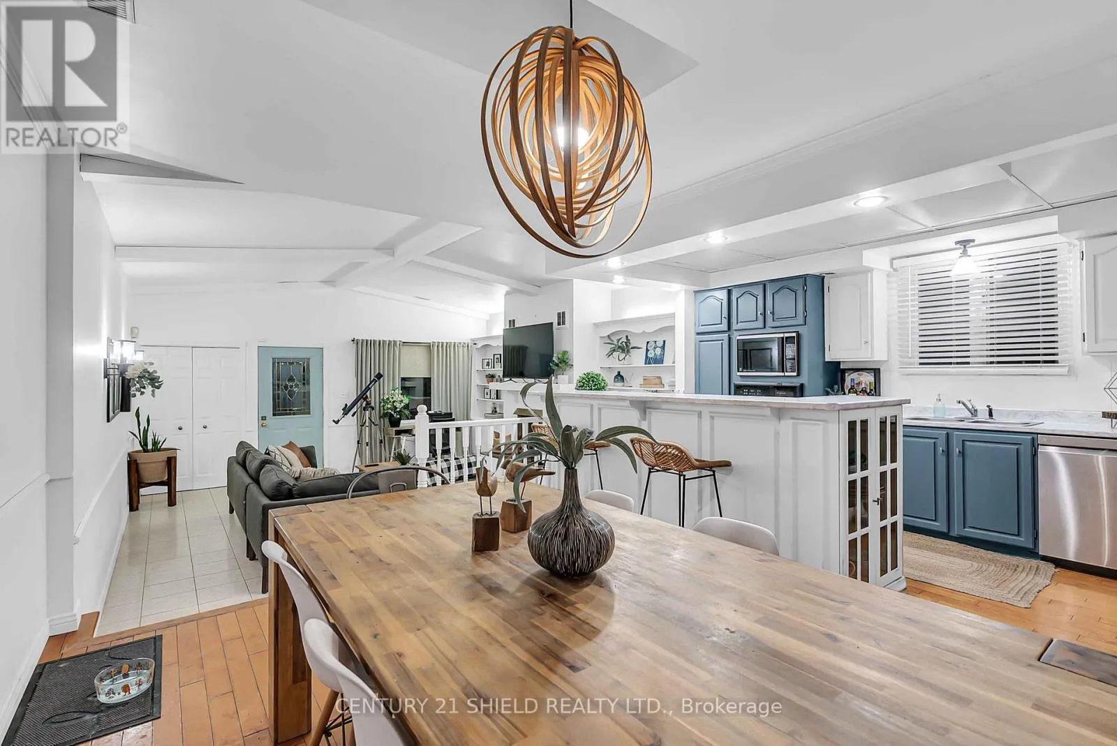 Cross Streets: First Street, Second Street. ** Directions: From Second St, turn onto Pitt St (heading South). property is on the right (West) side of the street. Welcome to 116 Pitt Street, a standout mixed-use opportunity in the heart of downtown Cornwall. This prime property features two spacious units and offers immediate income potential along with flexible future use for investors or entrepreneurs. The ground-floor commercial space is currently configured as a restaurant and showcases a unique enclosed patio with a garage-door-style window system. Open it up for breezy summer service or close it for a cozy atmosphere during cooler months. The space benefits from excellent street visibility and strong pedestrian traffic in Cornwall's vibrant downtown core. Upstairs, the character-filled second-floor apartment offers 2 bedrooms and 1 bathroom, blending charm with urban convenience. The inviting living room features vaulted ceilings, a wood-burning fireplace and a wet bar, creating a warm and welcoming atmosphere. The bright kitchen offers space for both a dining table and counter seating, while the oversized 5-piece bathroom conveniently includes in-suite laundry. The layout is completed by a private second bedroom and a generous primary bedroom with a large window overlooking bustling Pitt Street. A private second-level deck provides a rare outdoor retreat right in the heart of the city. The current owner would like to remain in the property as a tenant, offering attractive built-in income for the new owner under the following proposed terms: Ground Floor Commercial Lease: $4,000/month + HST + utilities + property taxes; Second Floor Apartment: $2,000/month + utilities. With excellent visibility, strong downtown foot traffic, three private parking spaces plus ample street parking, and the potential for immediate rental income, this property presents a compelling opportunity for investors seeking a turnkey asset in Cornwall's downtown core. Don't miss your chance to own this prime slice of Cornwall real estate, make the right move and see it for yourself. (id:27476)