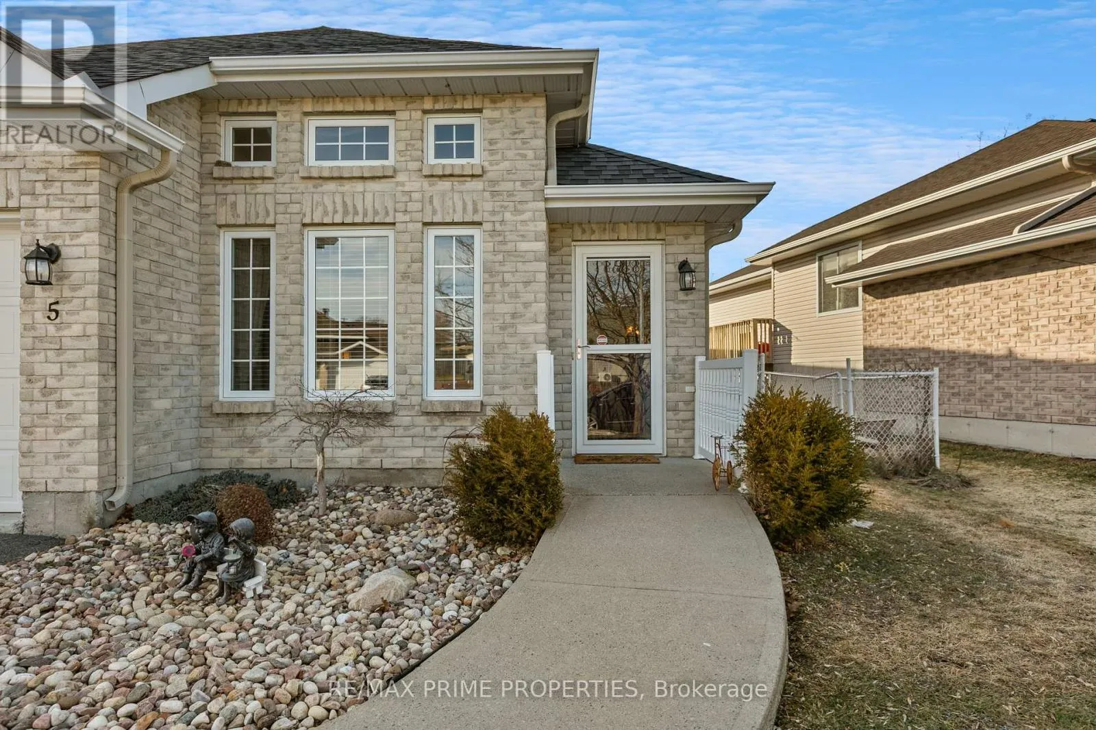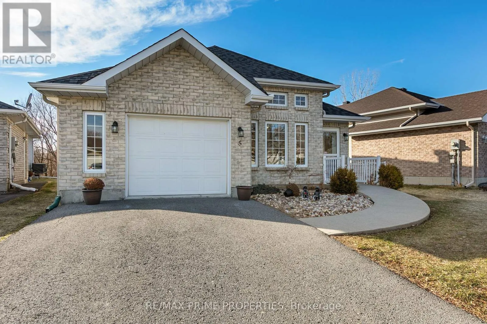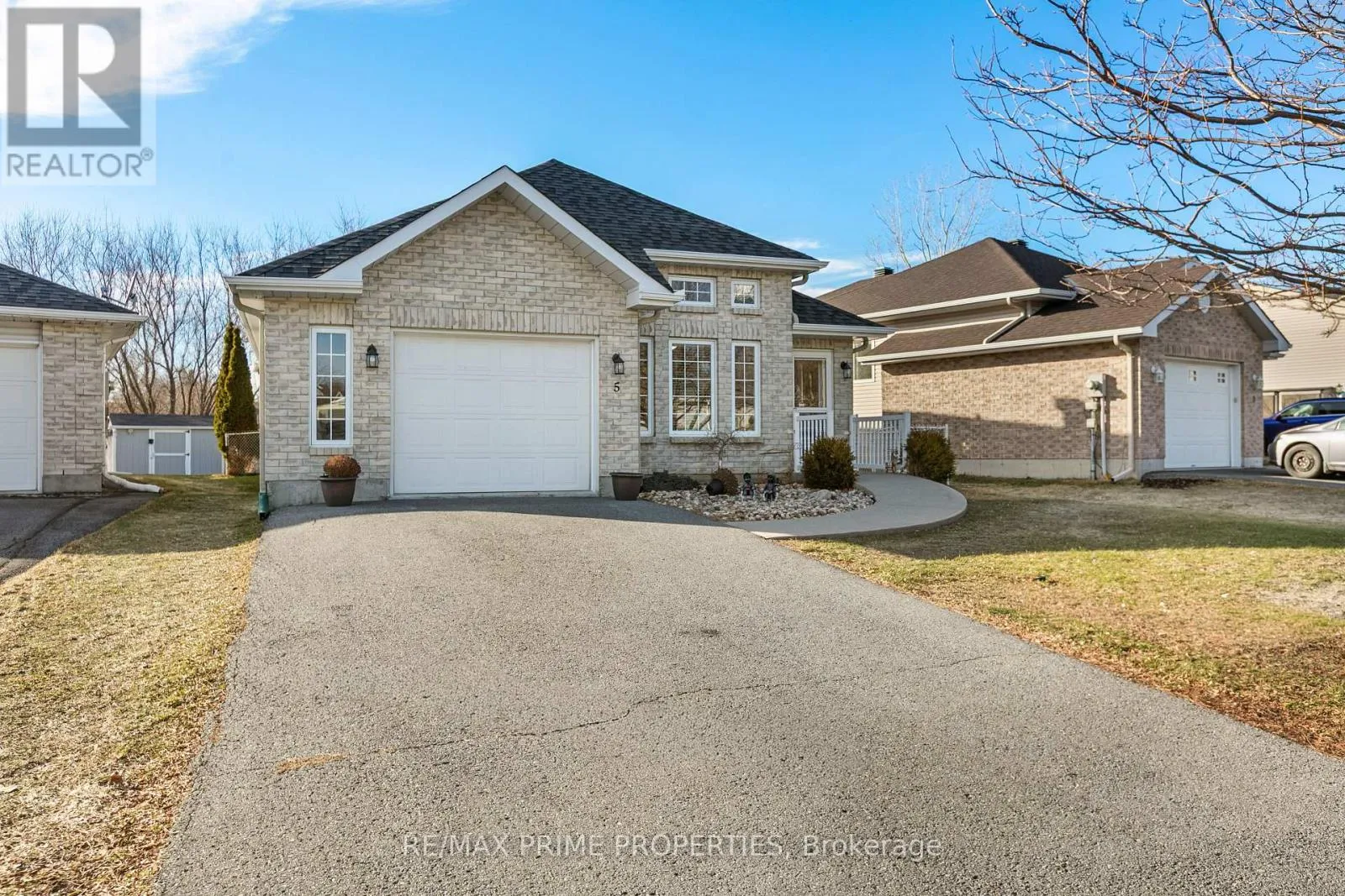 Cross Streets: Blessed Sacrament Dr & Tollgate Rd E. ** Directions: From Tollgate, south on Blessed Sacrament, East on Gail Elizabeth. Welcome to 5 Gail Elizabeth Court, a meticulously maintained 2-bedroom bungalow offering approximately 1,325 sq. ft. of thoughtfully designed living space in a quiet residential subdivision off Tollgate Road behind the RCMP building. This custom slab-on-grade home provides comfortable one-level living with radiant heated floors throughout and a bright, inviting layout. The home features a formal living room and a spacious family room, each with its own gas fireplace, perfect for both entertaining and relaxing evenings. The open-concept kitchen and dining area create a seamless flow for everyday living. The generous primary bedroom offers oversized closets and convenient cheater-style access to the main bathroom, while the second bedroom is bright and spacious with ample storage. A charming three-season sunroom provides the perfect space to unwind and overlooks the private fenced backyard backing onto a peaceful creek with no rear neighbours. Additional features include a separate laundry/utility room, attached 1.5-car garage, paved driveway, garden shed, central vacuum, air exchanger, and two wall A/C units. Major updates include a new roof (2025) and a Generac backup generator (2024). Located in a desirable north-end neighbourhood close to parks, shopping, churches, and other amenities, this move-in ready home offers exceptional comfort, efficiency, and low-maintenance living. (id:27476)
