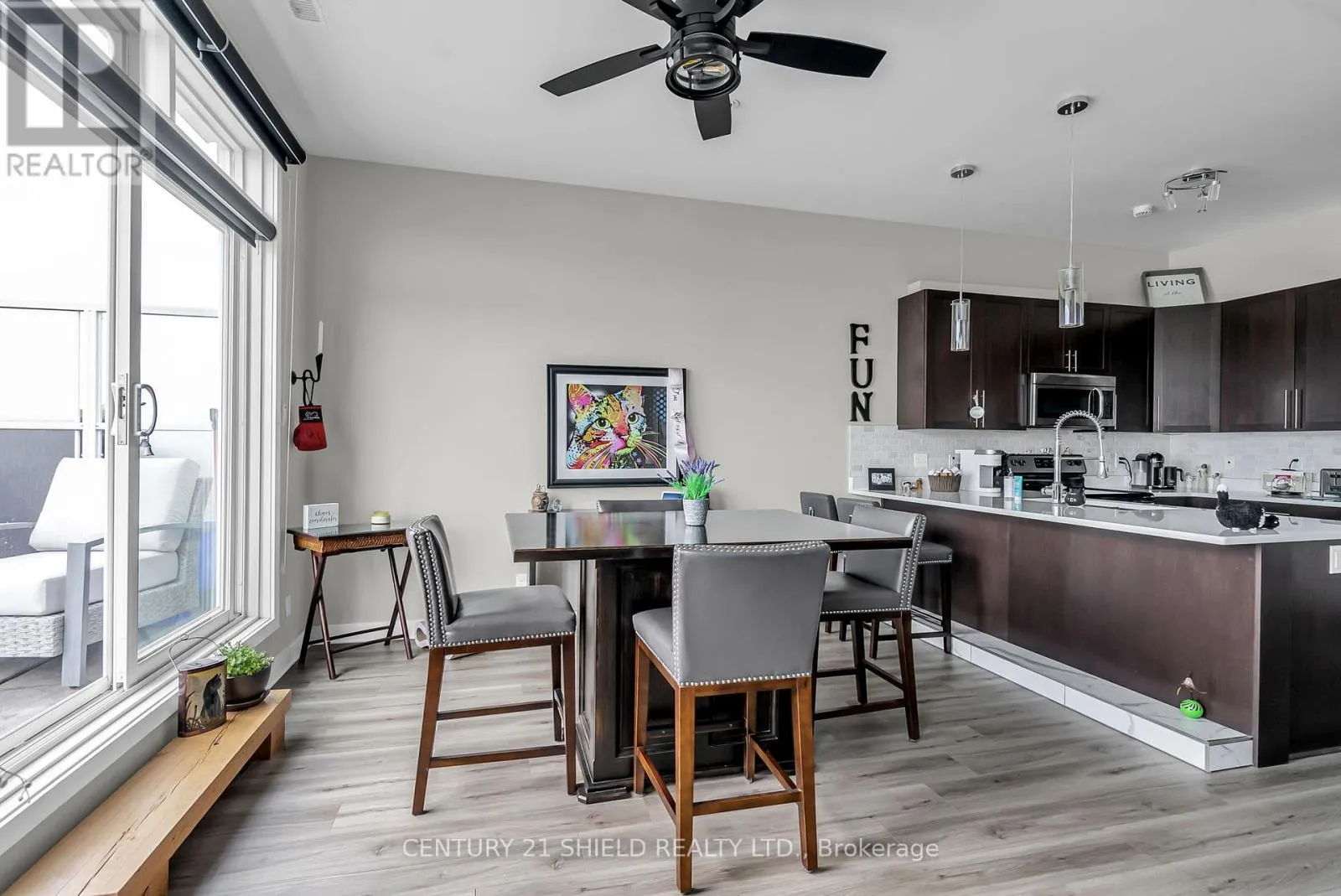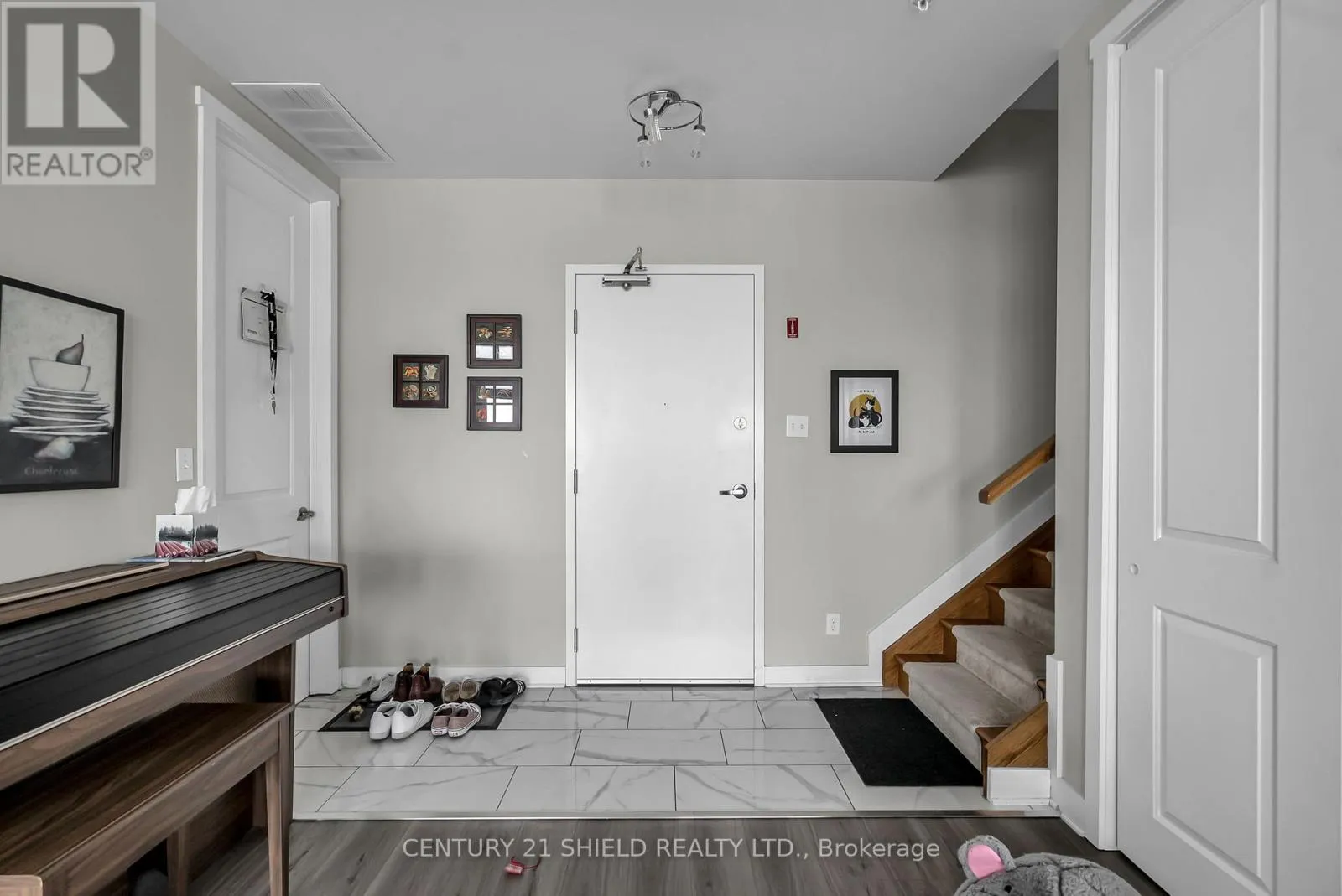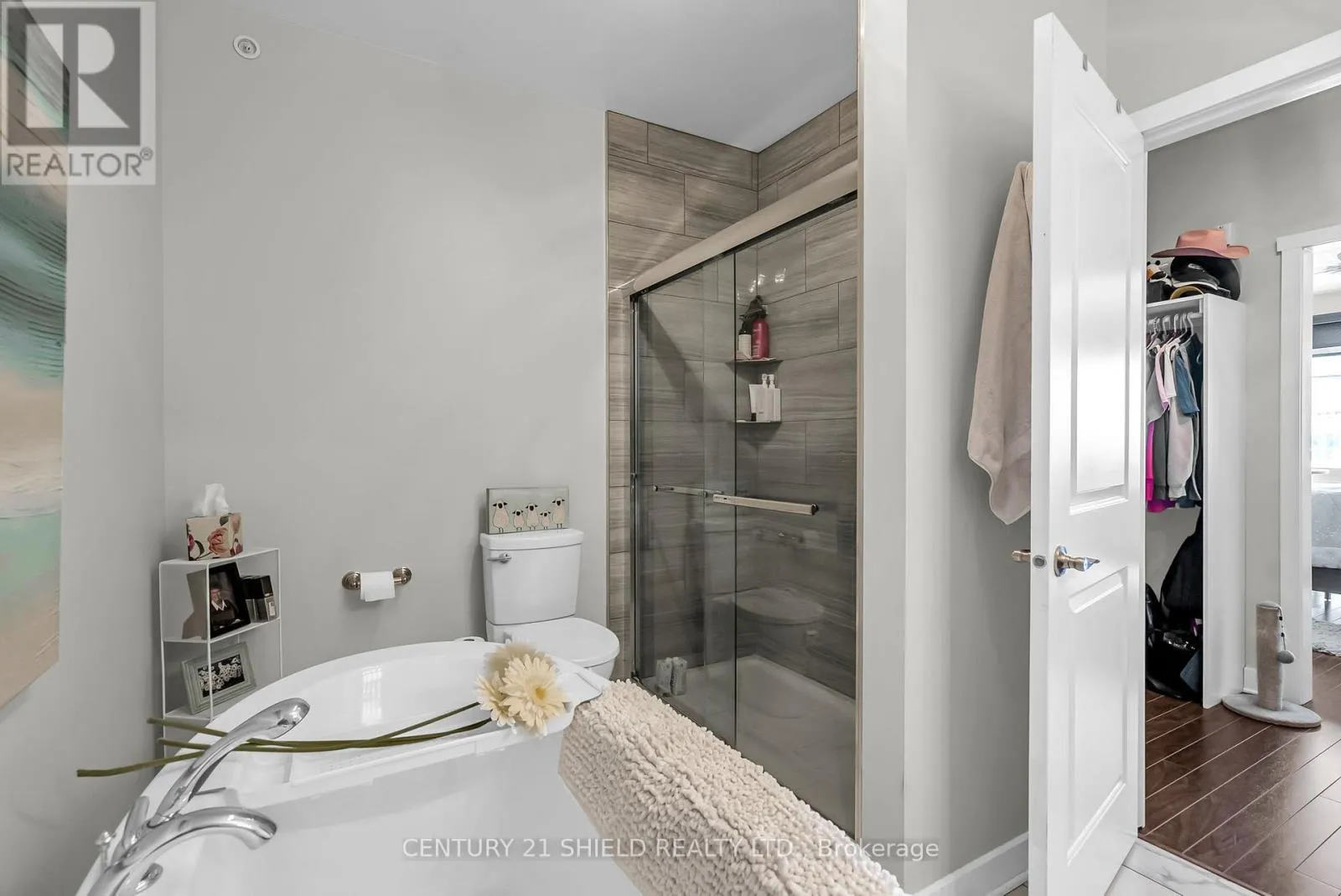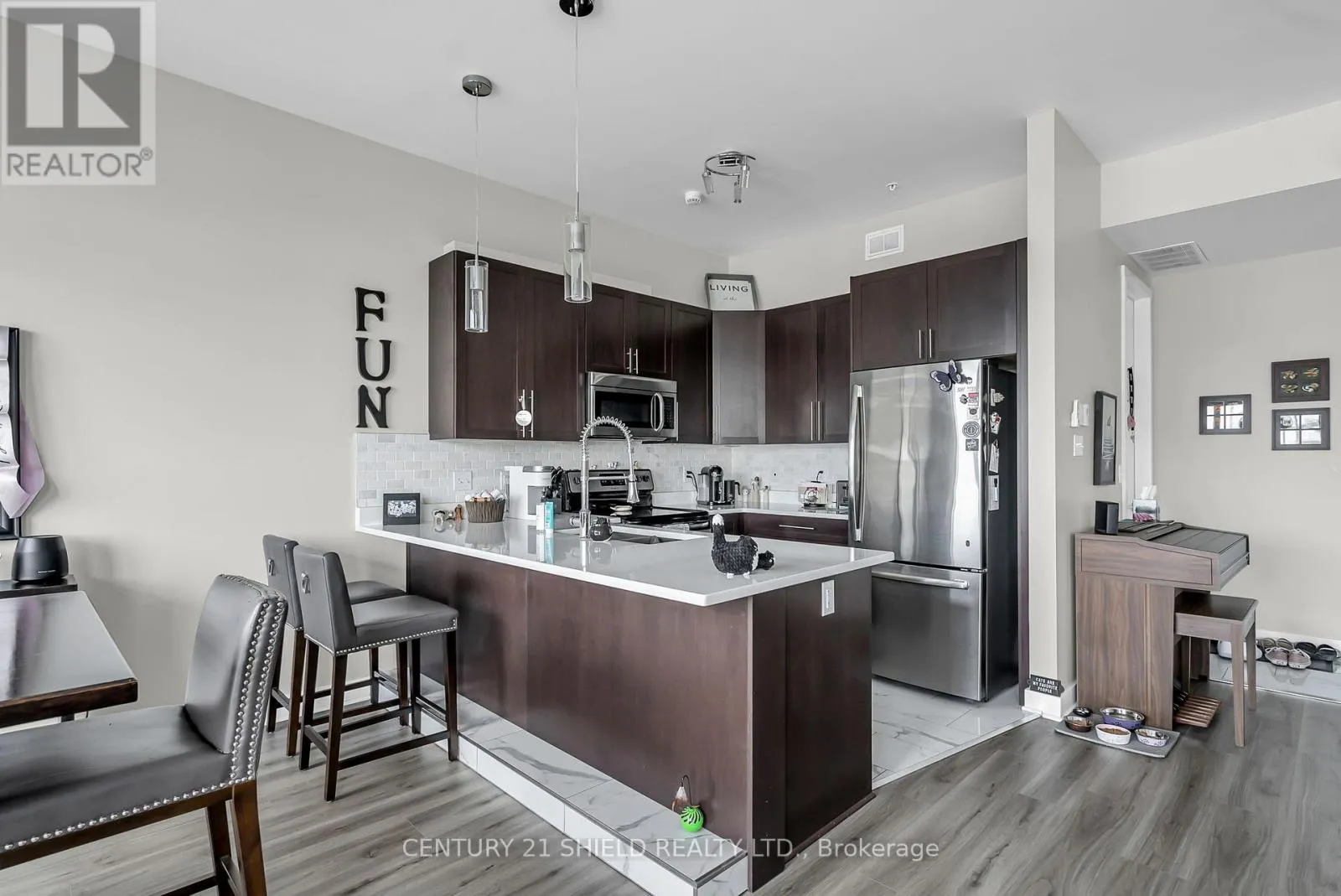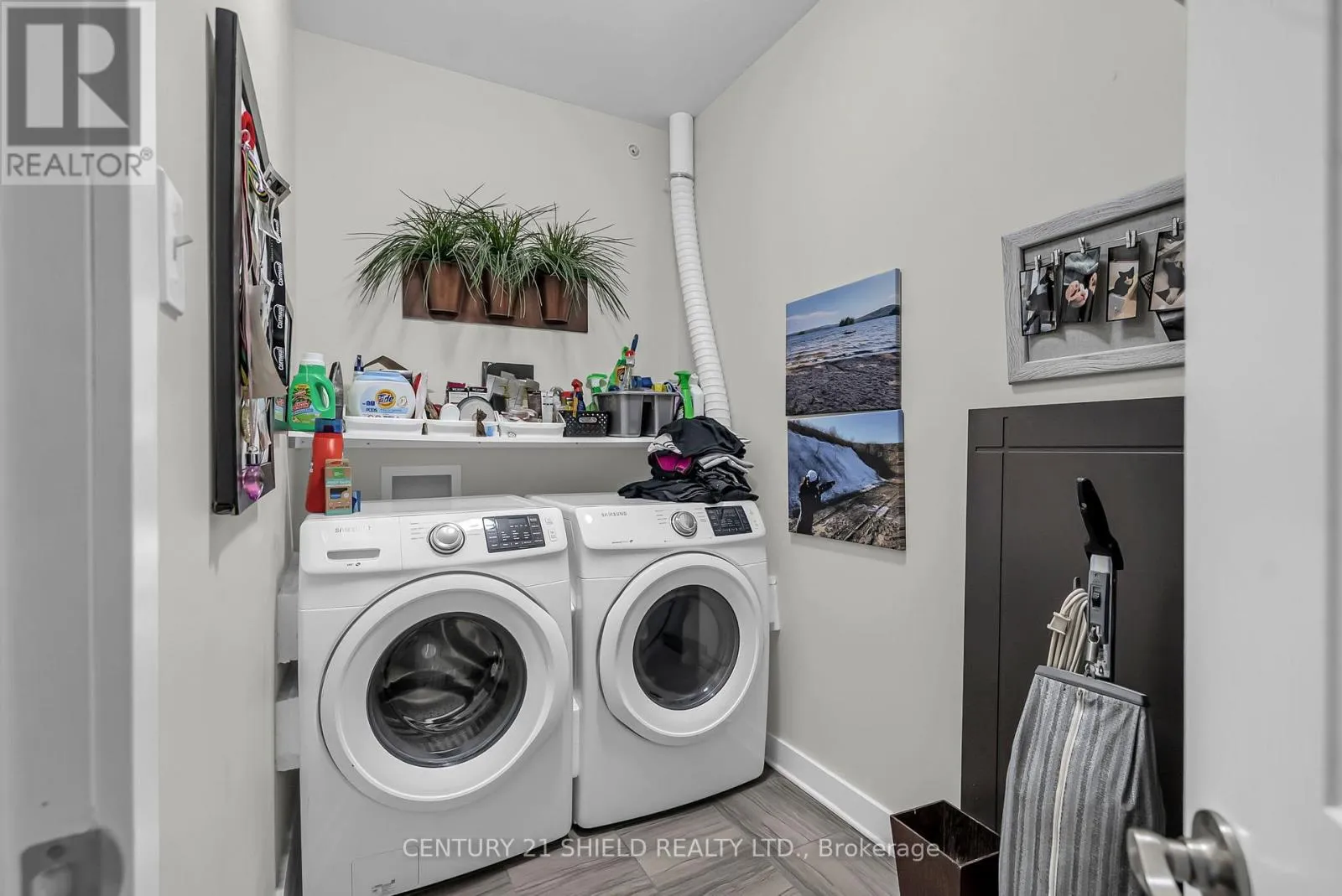 South on McConnell to Cotton Mill Street, head west until stairs and big archway are south of you with parking to the north. Unit is in courtyard on right. Experience elevated living in this two-level, loft-style condo located in the historic Edison Building within Cornwalls sought-after Cotton Mill District. This fully upgraded 2-bed, 3-bath condo offers west-facing floor-to-ceiling windows and a private 27 x 10 terrace overlooking the St. Lawrence River. Showcasing modern finishes throughout, the main floor features wide-plank laminate flooring, porcelain tile in high-traffic areas, and a refreshed kitchen with quartz countertops, stainless steel appliances, and updated lighting. The primary offers a walk-in closet and a luxurious rain shower system. Bonus features include a powder room with a floating quartz vanity, custom shower glass doors in the guest ensuite, and upper-level laundry with high-efficiency appliances and storage. Enjoy the convenience of underground heated parking with additional storage, indoor car wash bay, and secure access with fob entry and surveillance throughout. The condo fee includes snow removal, lawn maintenance, garage and window cleaning, and more. Steps from the waterfront, shops, restaurants, yoga studio, and medical services, this is your opportunity for stylish, maintenance-free living in a vibrant riverfront community. Water $850.88 Gas $291.82 Electric $708.97 Sq.FT 1324. (id:27476)