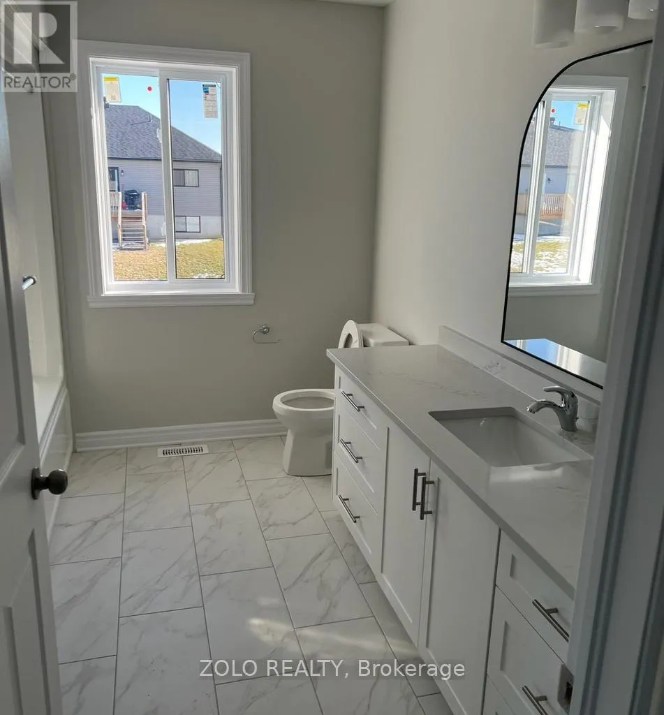 Cross Streets: McConnell Ave and Toll Gate Rd. ** Directions: From Bellwood Dr to Foxwood Dr and Then on Ruby Dr. House to Be Built! Beautiful semi-detached bungalow in the desirable Bellwood subdivision, surrounded by newly built homes and close to Hwy 401 for easy commute to Ottawa & Montreal. Offering 4 bedrooms and 2 full bathrooms, with 2 beds + 1 bath on the main floor and 2 beds + 1 bath in the fully finished basement-ideal for extended family living. Bright open-concept layout with patio doors leading to a deck. Features include quartz countertops & backsplash, engineered hardwood on main level, hardwood stairs, and waterproof vinyl flooring in basement. Includes central A/C, natural gas heating, paved driveway, sodded yard, eavestroughs, and pressure-treated deck. Built by a Tarion-registered builder and backed by the 7-year Tarion new home warranty. Flexible closing. Photos from similar model. (id:27476)