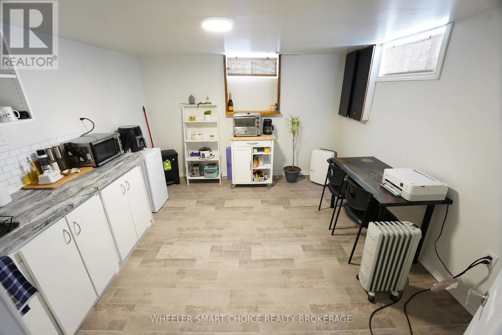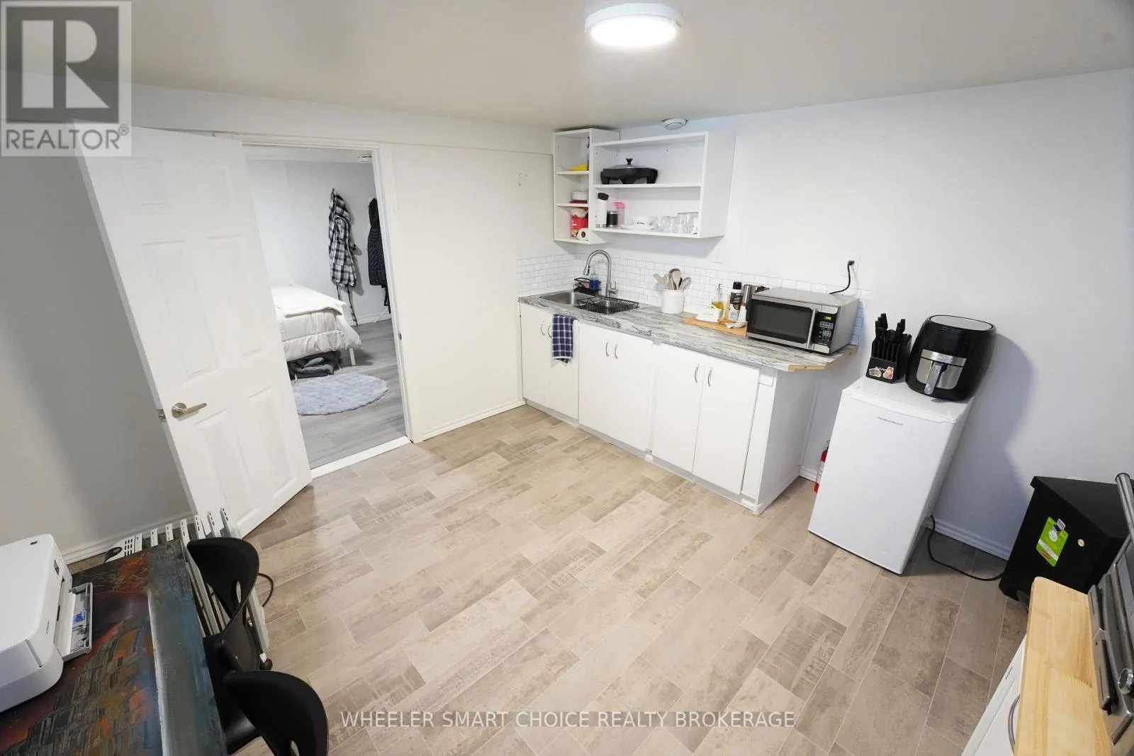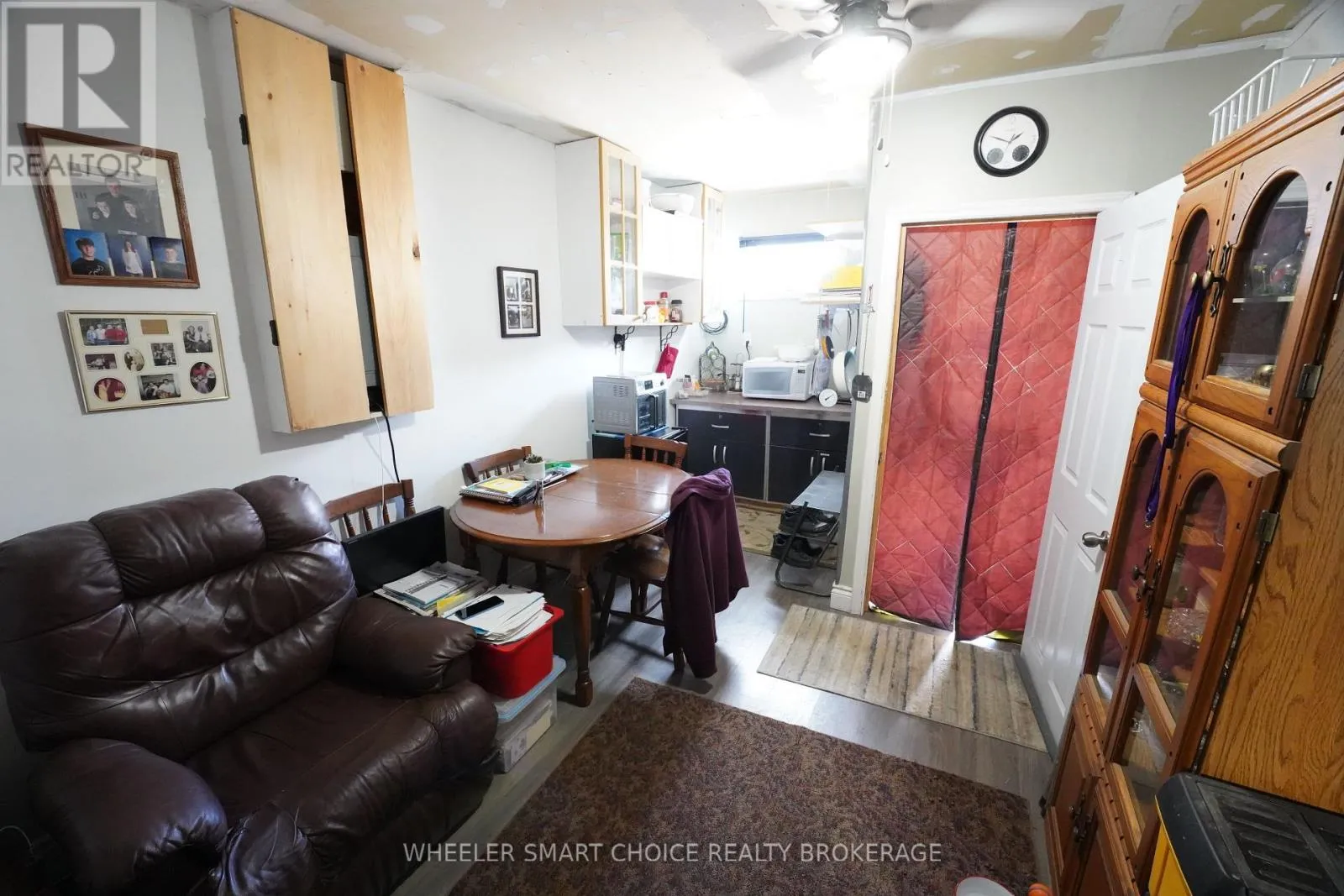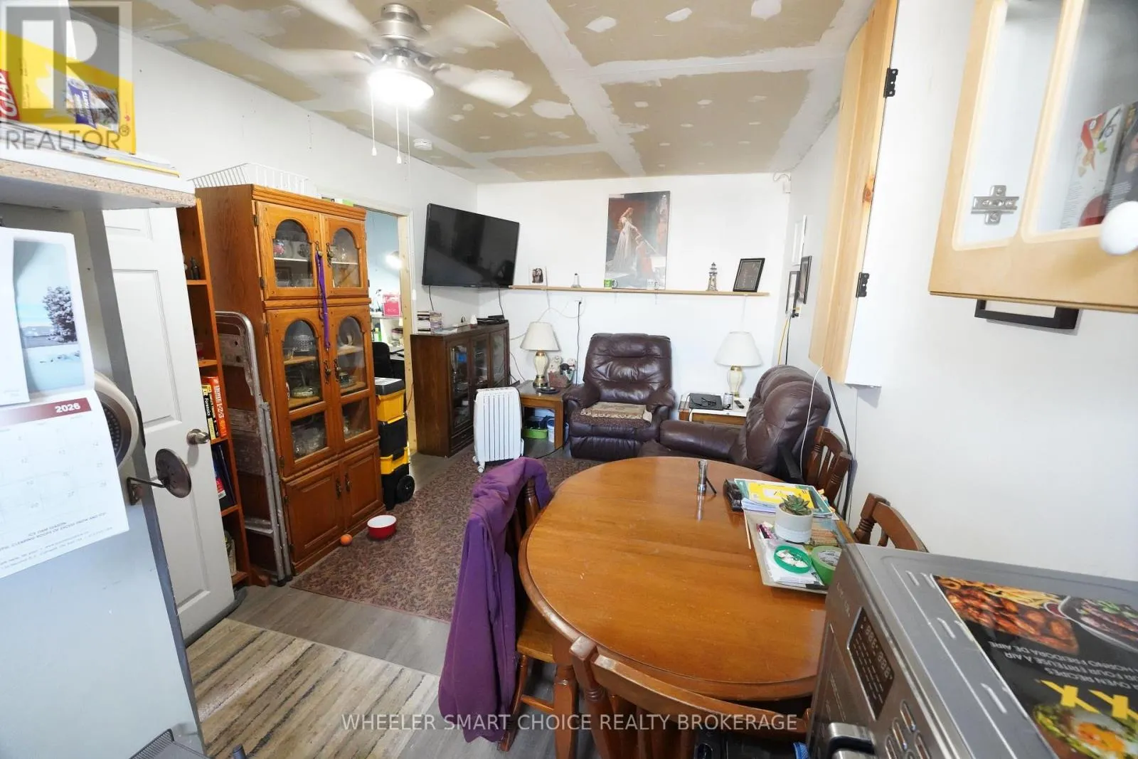 Cross Streets: Walton. ** Directions: corner of Gardener and walton. Must-see, one-of-a-kind property offering exceptional versatility and space for the whole family! Perfect for multi-generational living, growing families, or those needing flexible living arrangements, this home offers endless possibilities. The main floor features a bright living room with wood-burning fireplace and corner windows, a functional kitchen, and 3 bedrooms (currently configured as 2 bedrooms plus a dining room). Patio doors lead to a large deck overlooking a fully fenced yard. The lower level is truly unique, offering incredible flexibility with a second bathroom and two kitchenette/ snack areas-ideal for in-laws, older children, guests, or potential home-based business use. With a separate access area, this space is perfectly suited for a home office, studio, or private living quarters. Outside, you'll find a spacious 25' x 20' detached garage with its own 30-amp panel, along with a fully finished "man cave" or "she-shed"-a perfect retreat for relaxing, hobbies, or a private getaway space. (drywall in livingroom can be removed as added for temporary basement privacy, also the kitchen mini table can be removed) A rare opportunity with room for everyone and endless potential-this home must be seen to be fully appreciated! Call today to book your private viewing. (id:27476)