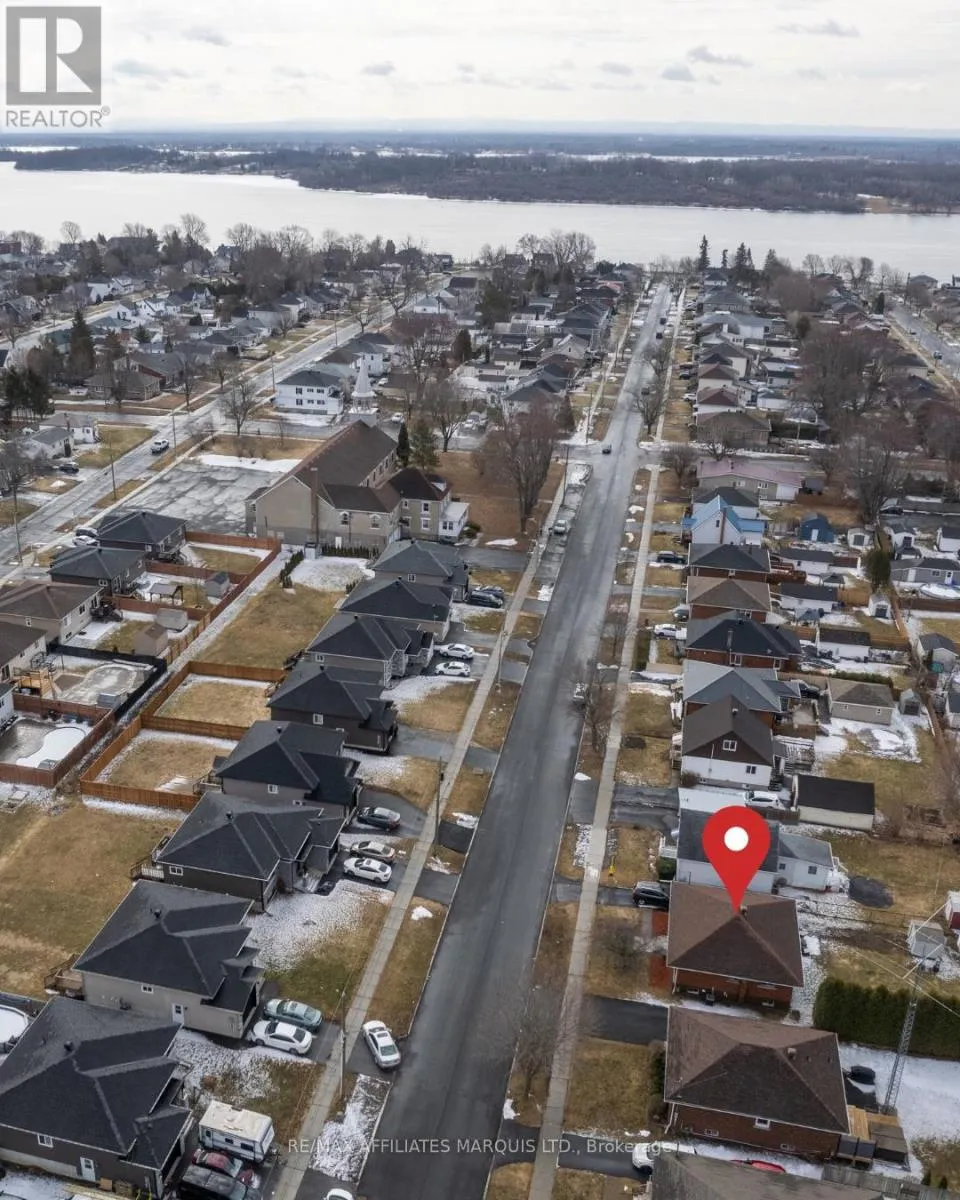 Cross Streets: Anthony & Walton. ** Directions: From Montreal Rd., turn north onto Anthony. Look for signage. Spring is in the air, and this charming new listing is in full bloom! Just two blocks from the St. Lawrence River and waterfront trail, nestled within a desirable pocket of the city's east end, you'll find this classic mid-century solid brick bungalow. The spacious, sun-filled living room showcases plaster crown mouldings, gleaming floors, and ample space for comfortable furnishings. A dedicated dining area easily accommodates a full-sized set, while large windows bathe the home in natural light. The generously sized kitchen offers abundant counter space and storage, with the potential to convert a west-facing window into a patio door. An ideal setup for a future sunroom or rear patio extension. Two main-floor bedrooms are served by an updated 4-piece bath. The lower level, with convenient side entrance, presents excellent in-law or income suite potential. It features two additional bedrooms, a half bath, a finished laundry/flex space, and a spacious recreation room. Outdoors, enjoy a private, mostly fenced, and beautifully hedged backyard. Enjoy the convenience of a large storage shed and ample parking. Benefit from a fully replaced sewer lateral and an owned tankless hot water system. Reasonable overhead of $91/mth for gas and $87/mth for hydro. Impeccably maintained and move-in ready. 24-hour irrevocable required on all offers. Book your private showing today and settle into your new home this summer. (id:27476)