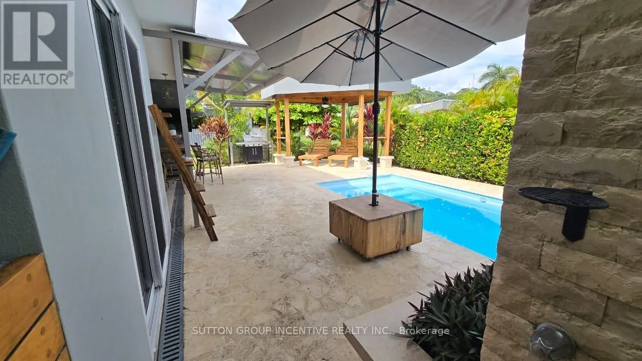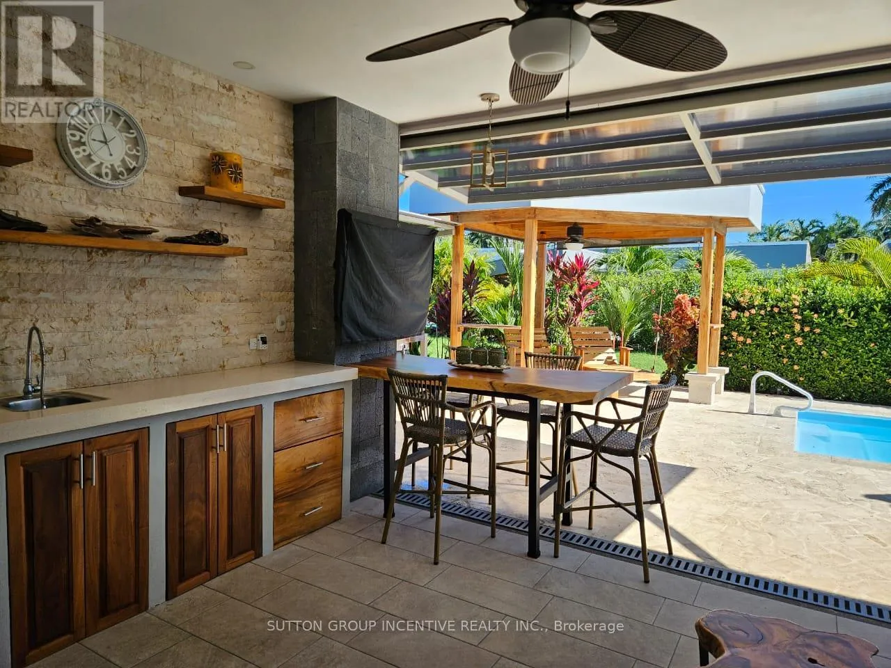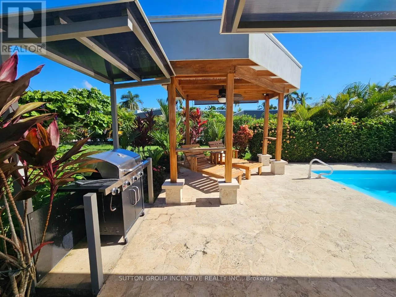 Enter Los Delfines Community. Beautifully upgraded and fully furnished bungalow less than 5 years old, located in the gated community of Los Delfines Golf & Country Club, with 24 hr security monitoring, just minutes from the beach. Located in the heart of the Blue Zone in Costa Rica, Brisas 27 offers exceptional indoor-outdoor living, a large green space, and a long list of valuable improvements. Upgrades include an additional downspout with an improved drainage system, an inground pool with a a private waterfall wall with ambient lighting, full low-voltage landscape lighting with dusk sensor, freshly painted interior, rust-proof roof coating (2024), and a brand-new rancho roof. The home features high-speed fibre internet, indoor and outdoor ceiling fans, an extended backyard overhang for more shaded living space, and a dedicated barbecue shelter.The upgraded kitchen includes added pantry space, upper cabinetry, and a ceramic backsplash. A custom-built-in office and storage area provides extra functionality. Property includes full solar feeding back to the grid, outdoor kitchenette with bar fridge, indoor/outdoor entertainment areas with TV, a kayak and SUP rack, and a lockable storage shed for bikes, golf clubs and tools. The yard is beautifully landscaped with decorative plants, Coralina walkway, and offers mountain views from the pool and seating areas.This turn-key home is ideal for full-time living or as an excellent investment property. Fully furnished as seen in photos. PRICE IS $469,900 USD (id:27476)