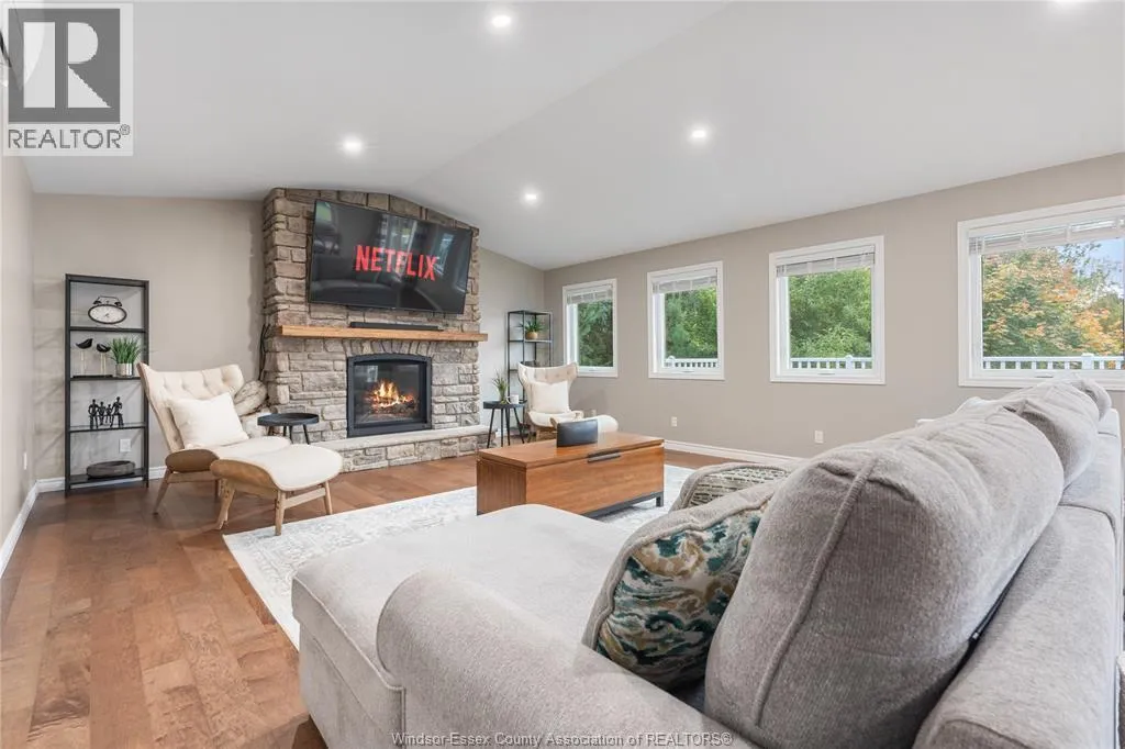 The space, the finishes, and the lifestyle â all in one remarkable property. Set on just over half an acre with no rear neighbours, this beautifully renovated ranch delivers timeless design and modern comfort in equal measure. Inside, youâll find maple hardwood floors flowing throughout, leading to a natural light-filled great room anchored by a Marquis Bentley fireplace â one of three in the home. The chef-inspired kitchen impresses with quartz countertops, maple millwork, and thoughtful updates that balance elegance and function. The main floor features three full bedrooms and two pristine bathrooms, while the lower level adds incredible versatility â complete with a second kitchen, a grade entrance for added convenience and a bonus room ready for your finishing touches. Down here, youâll also find an oversized sauna in the third bathroom complete with a change room. The lower living room boasts not only huge above grade windows, rare for a ranch, but another quality fireplace making it the perfect entertainment space. Outside, the property truly shines: an 80-foot workshop offers endless possibilities for hobbyists or collectors, while the expansive yard provides privacy, serenity, and room to breathe. Come experience this property's warmth, design, and lifestyle â before itâs spoken for. (id:27476)