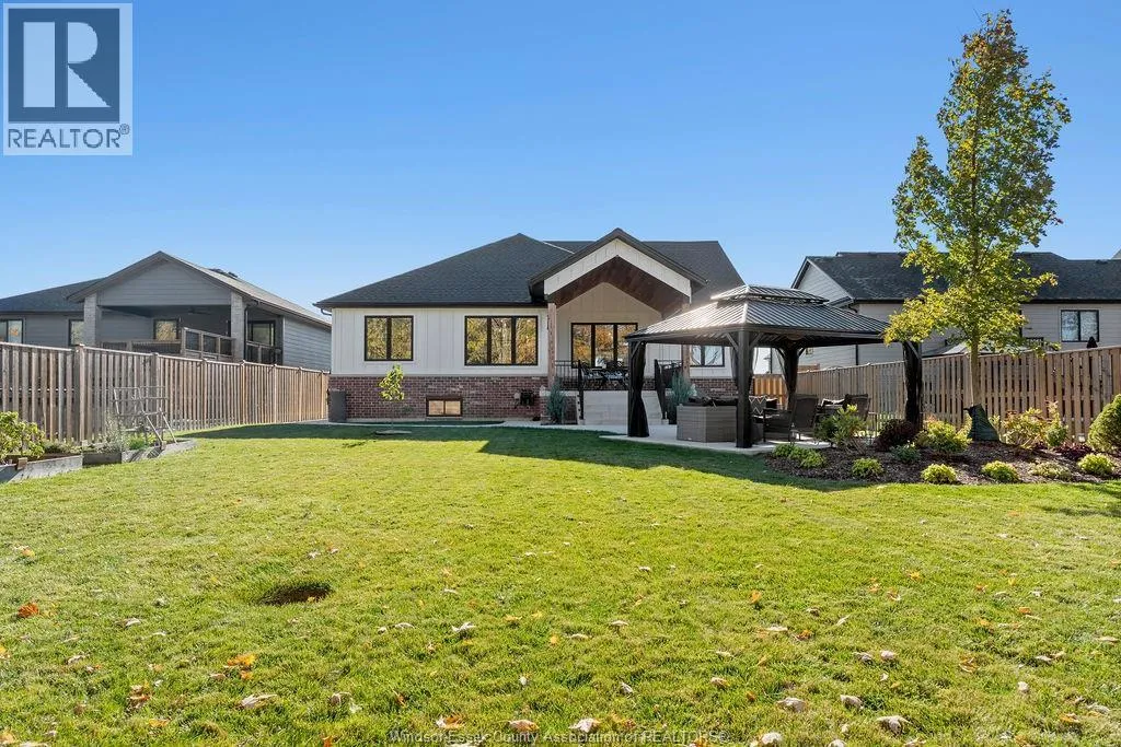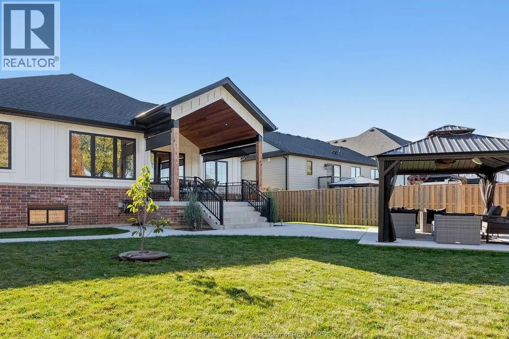 5 bedroom executive ranch in the heart of Essex County within the municipality of Kingsville. Experience the perfect blend of small-town serenity and high end modern design in this 5 yr young custom ranch. Spanning approx 1900 sq ft of main floor luxury, this home is defined by its black windows, custom mill work and warm wide plank wood floors. Designed for accessibility and ease, this home features main-floor laundry and a specialized Bruno lift in the garage. The primary level offers 3 spacious bedrooms, while the finished lower level provides 2 additional bedrooms, perfect for a secluded home office or guest wing. With 170ft deep lot the backyard offers an outdoor oasis with a covered back porch and a massive, meticulously landscaped yard featuring a private gazebo. Situated halfway between the Town of Kingsville and Windsor with immediate access to Highway 3, you are minutes from world-class wineries, the new EV Battery Plant, and the US border, all while enjoying the unmatched quiet of Cottam. (id:27476)