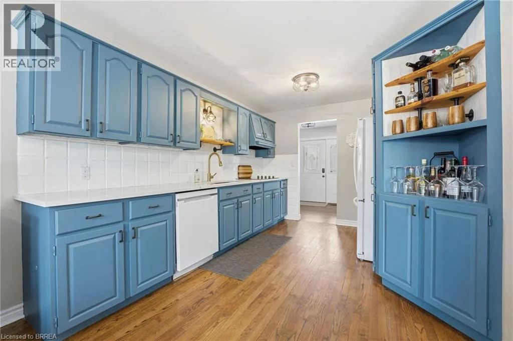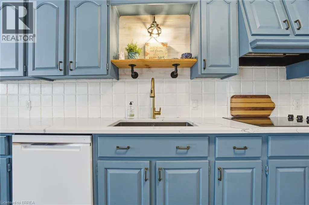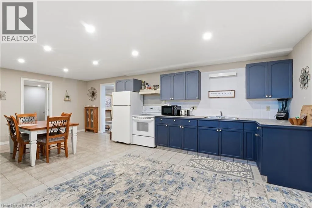 Hwy 3 head North on Talbot Street, Property on South side on road Welcome to this meticulously maintained and beautifully updated bungalow with an in-law suite, ideally located on a quiet street in the heart of Courtland. Offering an attached garage and outstanding curb appeal, this home delivers both functionality and style from the moment you arrive. The main floor features a bright and inviting living room with large front windows, a natural gas fireplace, and generous space for everyday living and entertaining. The updated kitchen is a standout, complete with new appliances, quartz countertops, a new sink, and a charming built-in banquette for casual dining. An oversized dining area provides the perfect setting for hosting family gatherings and dinner parties. The primary bedroom offers a private, updated ensuite, while additional family bedrooms, laundry and a full bathroom complete the main level. The finished lower level offers exceptional flexibility with its own kitchen, bedroom, and bathroom. Ideal for extended family, guests, or multi-generational living. Outside, the home truly shines. Professionally designed landscaping, landscape lighting, and a full sprinkler and garden bed irrigation system keep the property looking pristine. The backyard is fully fenced and features a new deck with pergola, plus a fire pit and seating area. Perfect for relaxing or entertaining, all while maintaining convenient access and visibility to the driveway. This impressive property offers comfort, versatility, and exceptional outdoor living in one complete package. A rare opportunity you wonât want to miss. (id:27476)