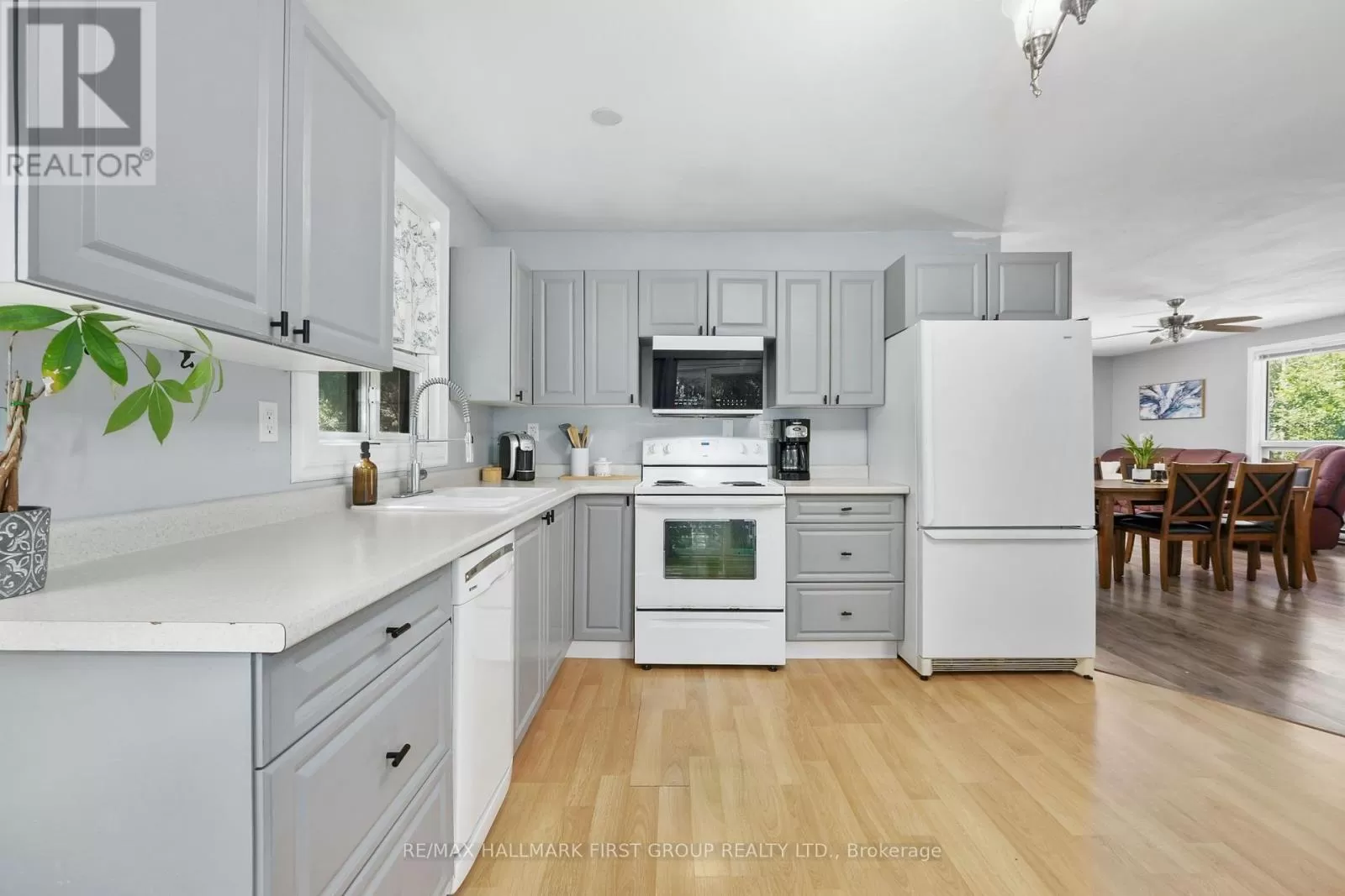 Cross Streets: Durham St S & Old Marsh Lane. ** Directions: CR2 heading East, Right onto Durham St S. Just steps from Lake Ontario, this charming and affordable bungalow in Colborne offers a bright, modern layout with the bonus of an attached garage. The open-concept living and dining areas feature large windows, a stylish accent wall, and a walkout to the backyard, extending your living space into the outdoors. The kitchen is both functional and inviting, with matching appliances, ample cabinetry, and generous counter space. The main floor includes a well-appointed bedroom and an updated full bathroom. Downstairs, discover a spacious and bright second bedroom, a laundry room, and ample storage options. Outside, enjoy a fenced yard with front and back patios, a cozy firepit area, and mature trees that provide shade and privacy. With Lake Ontario just a short stroll away and quick access to Colborne's amenities and Highway 401, this is an ideal opportunity for downsizers, first-time buyers, or anyone craving a simpler life closer to the water. (id:27476)