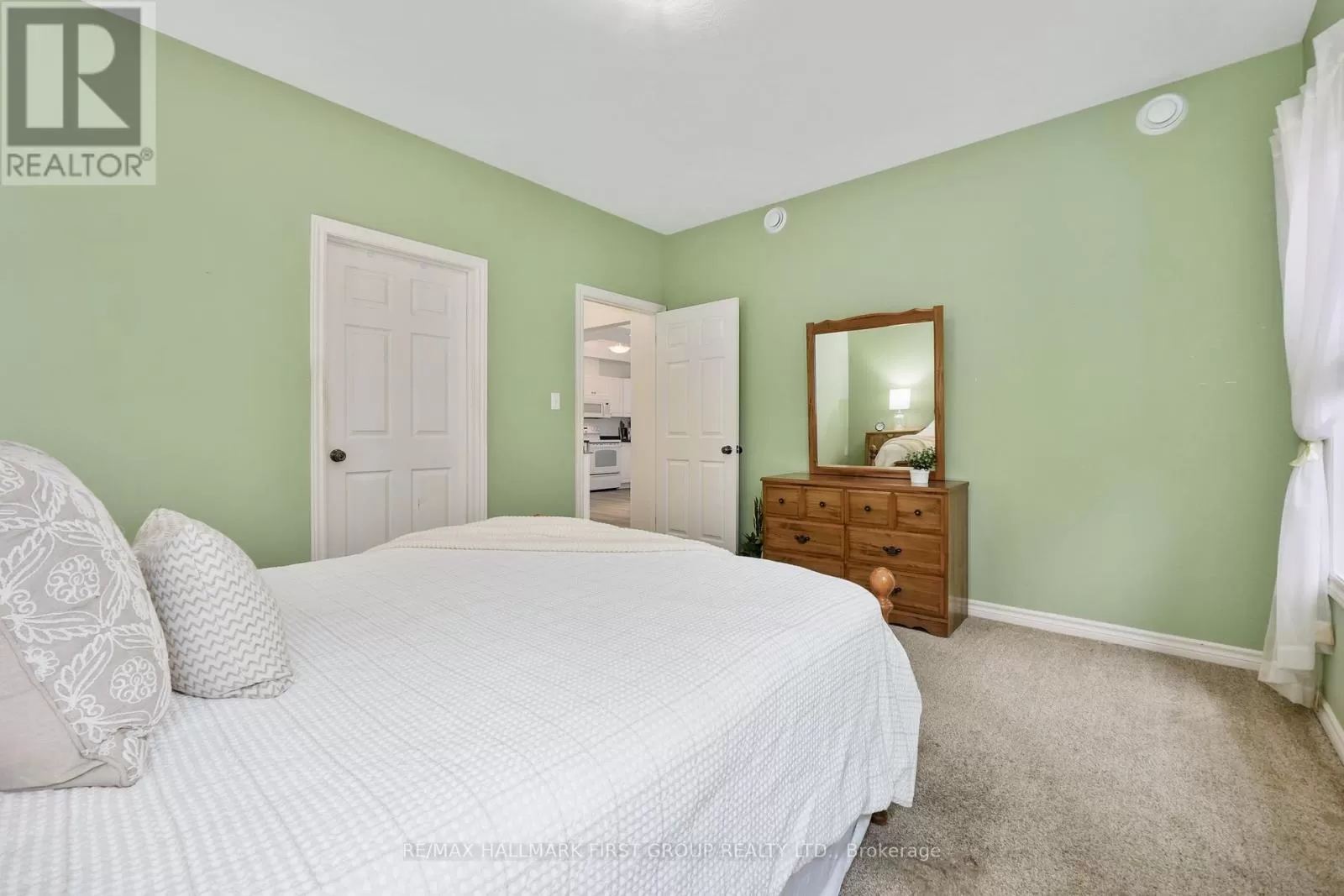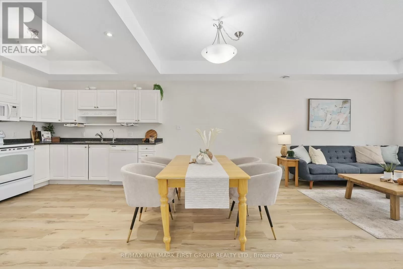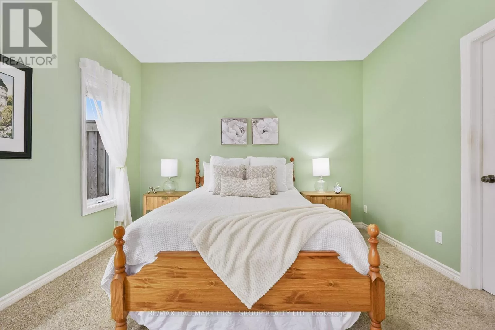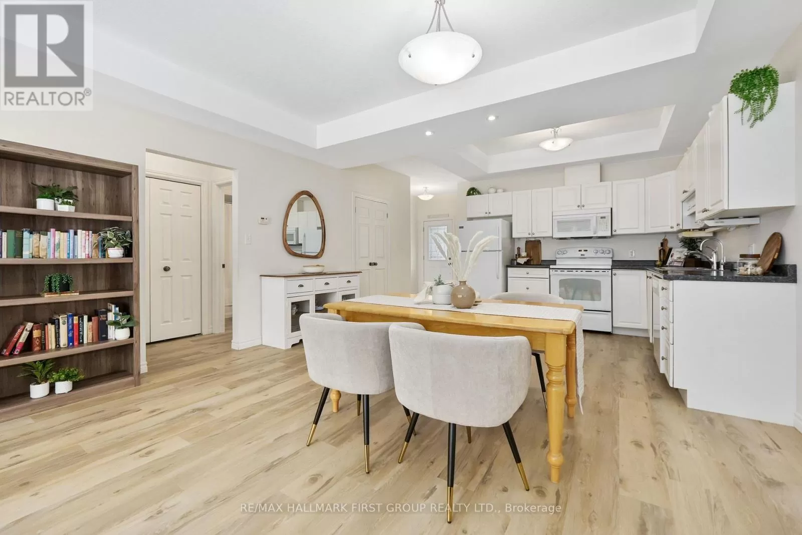 Cross Streets: George Court & Victoria St. ** Directions: CR2 heading East, Right onto Victoria St, Left onto George Crt. This low-maintenance, one-level townhouse features an efficient layout with carpet-free flooring in the main living areas, prioritizing comfort and ease. The front foyer provides direct access to the attached garage, making unloading simple, regardless of the weather. The open-concept principal space includes a bright and sunny living area with a walkout to the backyard, a central dining space accented by pendant lighting, and a well-equipped kitchen featuring matching appliances and recessed lighting. The spacious primary bedroom includes a walk-in closet and a full bathroom. A sun-filled guest bedroom and convenient in-suite laundry complete the layout. Step outside to enjoy a private deck and garden area that overlooks mature trees, providing a peaceful and secluded setting. Just minutes from town amenities and with quick access to the 401, this home is ideal for those looking to downsize and enjoy low-maintenance living. (id:27476)
