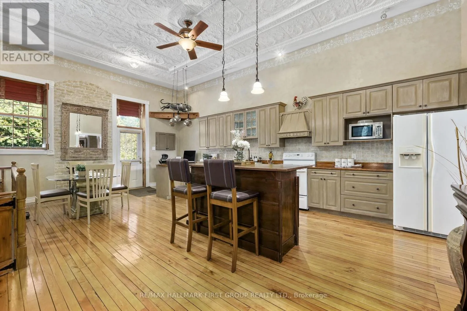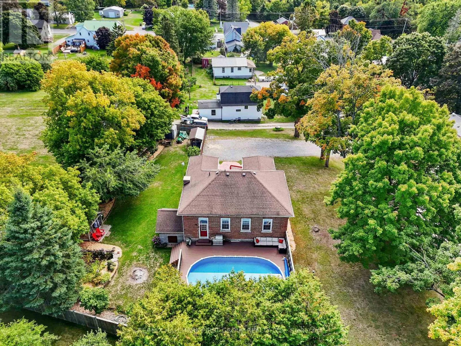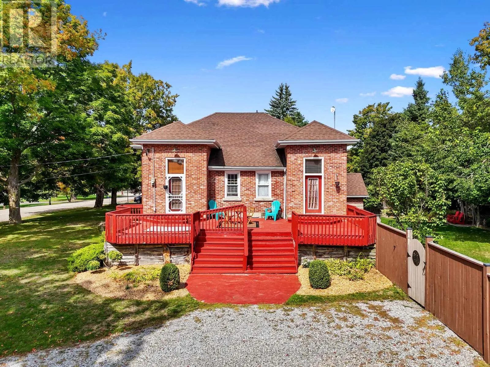Cross Streets: Norway St & CR25. ** Directions: CR25 heading North, bear Right at Castleton General Store, Left onto Norway St. Once a historic schoolhouse, now beautifully transformed into a one-of-a-kind residence, this home is filled with character and charm, built in the early 1900s and thoughtfully updated for modern living. This unique property features a finished lower level with a separate entrance, ideal for a home-based business, in-law suite, or private guest retreat, as well as a backyard oasis that feels like a world of its own. The open principal living space showcases soaring original hand-hammered tin ceilings that have been powder-coated white, creating an unforgettable statement. Sunlight streams through large windows with custom wood shutters, illuminating the spacious living and dining areas designed for effortless entertaining. The expansive eat-in kitchen features an island with a breakfast bar, pendant lighting, matching appliances, a tile backsplash, and a walkout to the back deck. A cozy breakfast area with exposed brick is the perfect spot for informal family meals. On the main floor, you'll find the primary suite complete with dual closets, a private walkout, and a bathroom. Downstairs, the updated lower level offers a large recreation room with recessed lighting, perfect for lounging or game nights. A spacious bedroom, office or guest bedroom, three-piece bathroom and a powder room, plus a laundry room, provide excellent flexibility for today's needs. The outdoor spaces are just as captivating. A welcoming front deck sets the tone for morning coffee, while the backyard unfolds into a true retreat. Enjoy summer afternoons by the pool with a deck surround, relax beneath mature trees (including fruit trees), or wander through vibrant gardens. A rustic gazebo by the koi pond invites quiet moments, and even a chicken coop adds to the charm of this remarkable property. Ideally located close to schools, amenities, and access to the 401, this home seamlessly blends timeless character with modern convenience, a rare find ready to be cherished. (id:27476)