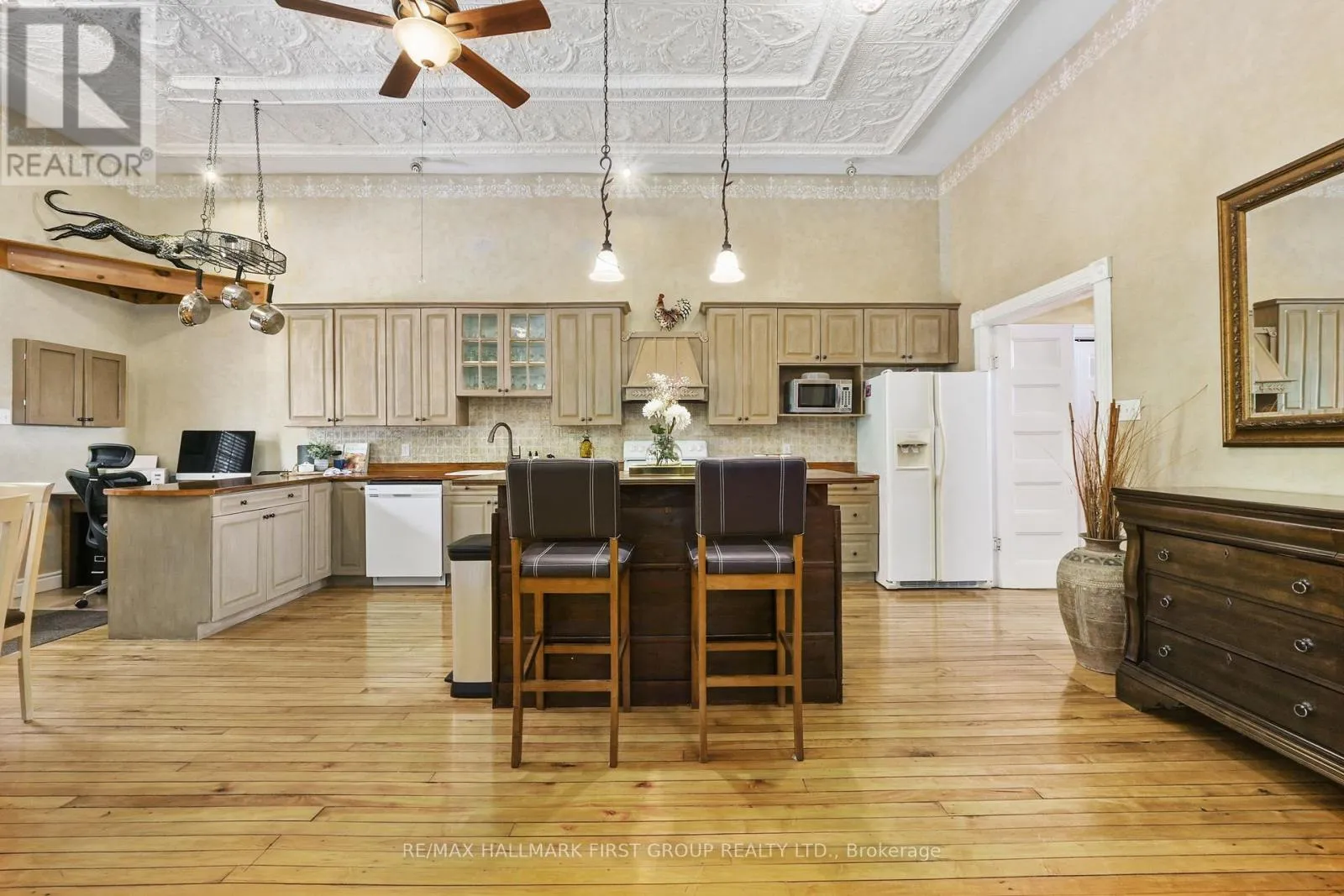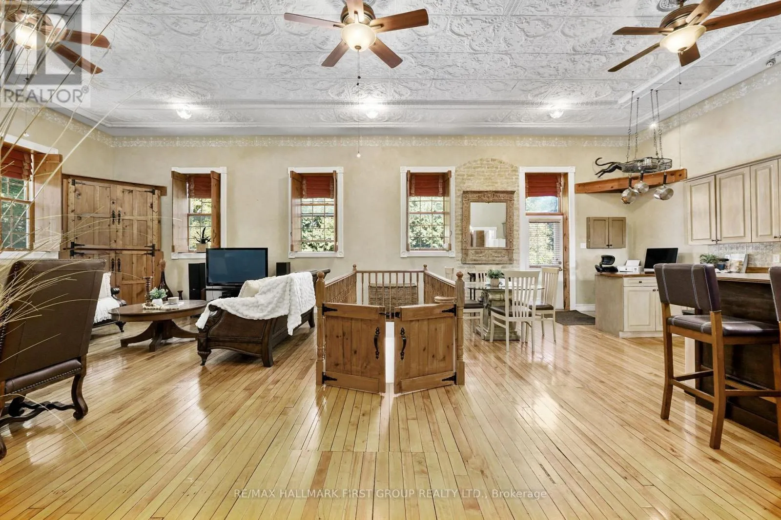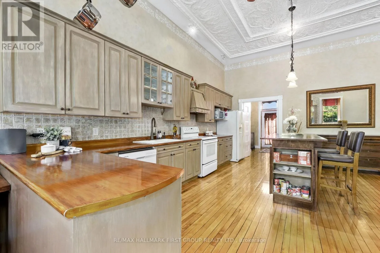 Cross Streets: Norway St & CR25. ** Directions: CR25 heading North, bear Right at Castleton General Store, Left onto Norway St. Once a historic schoolhouse, now beautifully transformed into a one-of-a-kind residence, this home is filled with character and charm, built in the early 1900s and thoughtfully updated for modern living. This unique property features a finished lower level with a separate entrance, ideal for a home-based business, in-law suite, or private guest retreat, as well as a backyard oasis that feels like a world of its own. The open principal living space showcases soaring original hand-hammered tin ceilings that have been powder-coated white, creating an unforgettable statement. Sunlight streams through large windows with custom wood shutters, illuminating the spacious living and dining areas designed for effortless entertaining. The expansive eat-in kitchen features an island with a breakfast bar, pendant lighting, matching appliances, a tile backsplash, and a walkout to the back deck. A cozy breakfast area with exposed brick is the perfect spot for informal family meals. On the main floor, you'll find the primary suite complete with dual closets, a private walkout, and a bathroom. Downstairs, the updated lower level offers a large recreation room with recessed lighting, perfect for lounging or game nights. A spacious bedroom, office or guest bedroom, three-piece bathroom and a powder room, plus a laundry room, provide excellent flexibility for today's needs. The outdoor spaces are just as captivating. A welcoming front deck sets the tone for morning coffee, while the backyard unfolds into a true retreat. Enjoy summer afternoons by the pool with a deck surround, relax beneath mature trees (including fruit trees), or wander through vibrant gardens. A rustic gazebo by the koi pond invites quiet moments, and even a chicken coop adds to the charm of this remarkable property. Ideally located close to schools, amenities, and access to the 401, this home seamlessly blends timeless character with modern convenience, a rare find ready to be cherished. (id:27476)