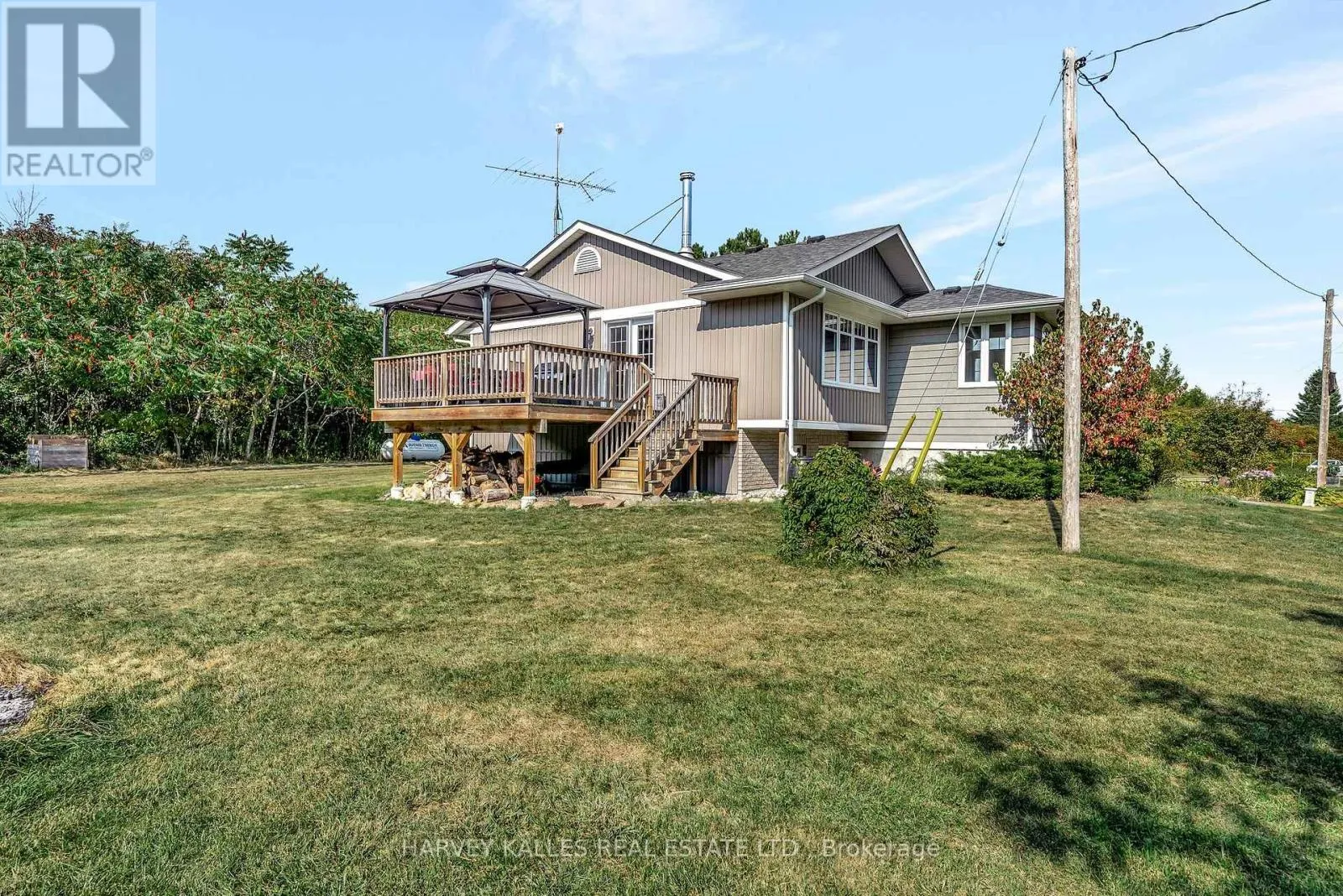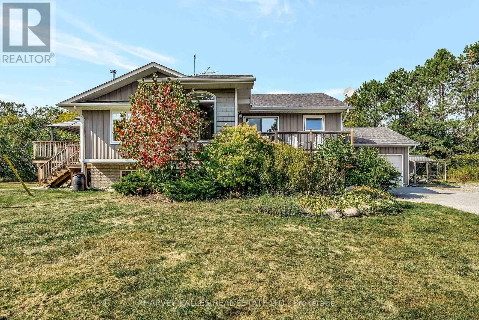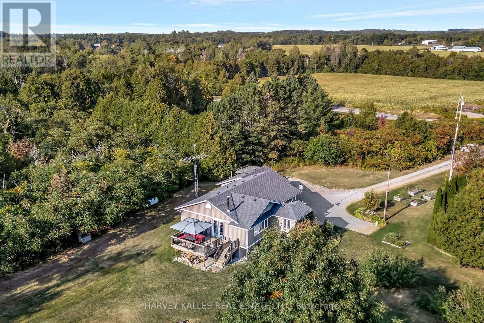 Cross Streets: Hwy 2 & Durham St N. ** Directions: Highway 2 to Colborne, noth of Durham St N. Nestled among the rolling hills of Cramahe, this beautifully updated bungalow offers 5.5 acres of peaceful countryside living. Thoughtfully renovated with modern flair, the home showcases quality finishes throughout and a layout designed for comfort and connection. Step inside to a bright, open-concept main floor where natural light fills the living spaces. From the front foyer, enjoy a south facing seasonal view of the lake. The modern kitchen features a central island, abundant cabinetry, generous counter space, and a double oven, perfect for both everyday meals and entertaining. The living room invites you to relax by the wood-burning fireplace or step through the walkout to a spacious back deck overlooking trails and greenery. Two bedrooms and a 5-piece bathroom complete the main level. The finished lower level expands your living options with a large rec room for gatherings, a third bedroom and full bath, plus a flexible bonus room ideal as a home office, gym, or guest suite. Outdoors, the property offers so much to explore: a detached workshop with hydro for hobbies, maintained walking trails winding through the trees, and grounds dotted with fruit trees, gardens, raised beds, and wide open lawn. Whether you're seeking a place to garden, play, or simply unwind in nature, this property delivers! All this, just minutes from downtown Colborne, one of Northumberland's friendliest communities and a short drive to Presqu'ile Beach, parks, cafs, and shops. A truly exceptional opportunity for a relaxed country lifestyle. (id:27476)