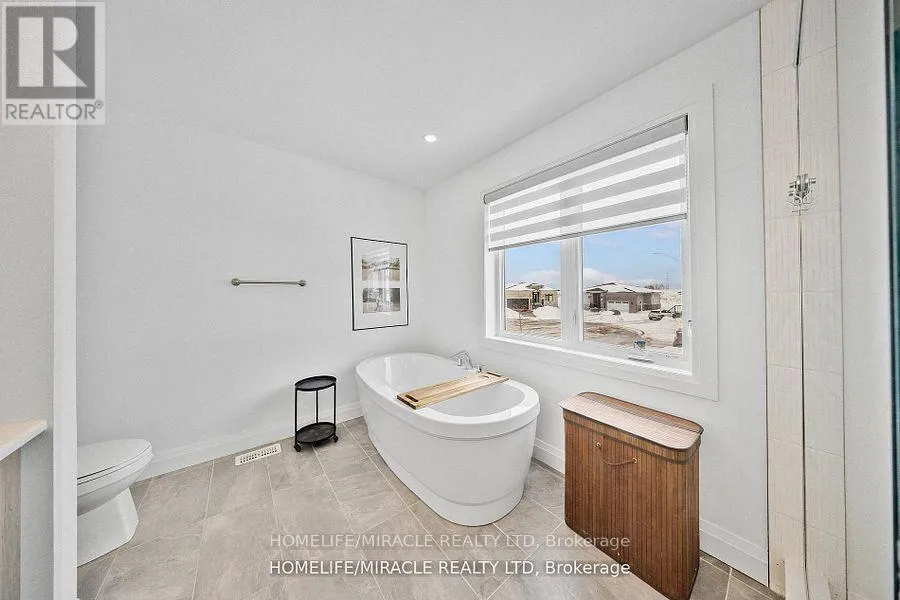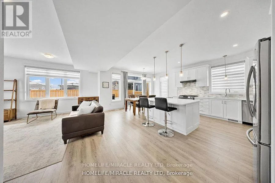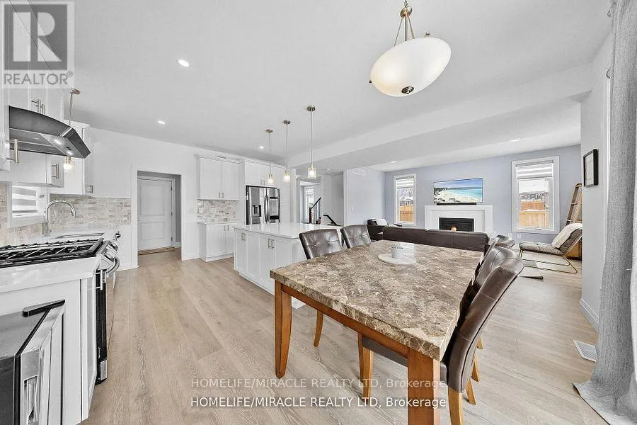 King St E & Streamside Dr / Durham St S Welcome To 43 Prairie Run ,Beautiful Corner unit In Colborne! This 4 Year-Old Fidelity Homes- Built Property Is A Stunning Find Boasting Over 2000 Sq Ft , Offering 3 Bedrooms And 3 Bathrooms, Front Elevation With Modern Stone Design With Upgraded Garage Doors And Wider Porch/Stairs. The Open-Concept Design Seamlessly Blends Style And Functionality. The Modern Kitchen Is A Chef's Dream, Featuring A Sleek Tile Backsplash, Recessed Lighting, A Spacious Island Breakfast Bar With Elegant Pendant Lighting, Quality S/S Appliances, And Ample Workspace. The Inviting Living Room, Complete With A Cozy Fireplace, Open Concept With Dining Which Leads Into W/O Patio With Newly Built Deck. The Primary Bedroom Is A Serene Retreat, Boasting A Luxurious Ensuite With A Double Vanity, A Large Glass-Enclosed Shower, And A Separate Soaking Tub. Two Additional Bedrooms With Jack And Jill. Conveniently Located Close To Town Amenities And With Quick Access To Highway 401. Recently Fully Fenced With Entrance To BBQ, 5 Commercial Grade Security Camera Features Night Vision, Geofencing , Built In Alarm , Ethernet And Access Point Installed Upstairs For Hardwired Internet Connection Ideal For (id:27476)