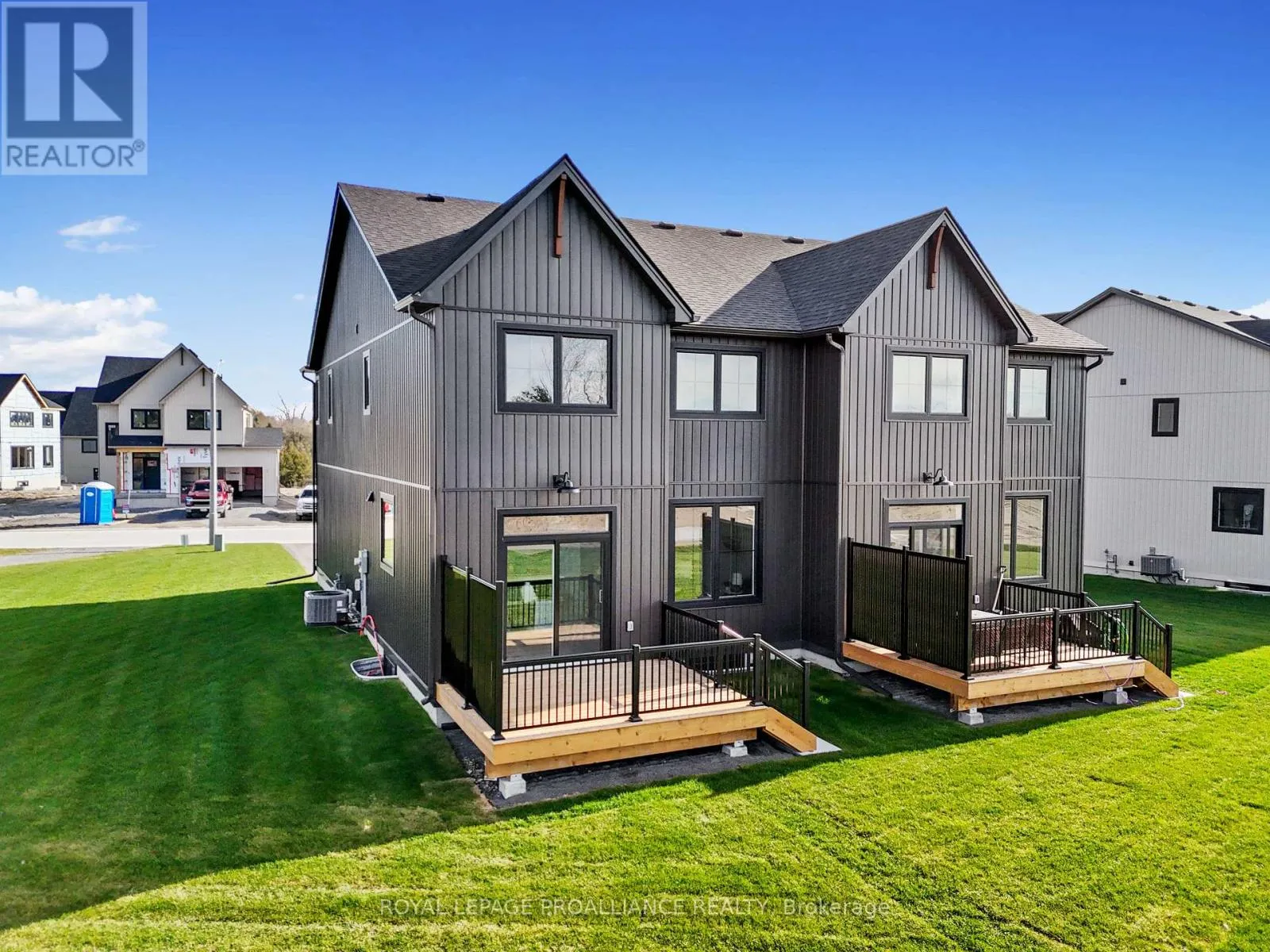 Cross Streets: Durham St N & Scott Street. ** Directions: County Rd 2 to Durham St. North. Welcome to the Flynn model, a stunning modern farmhouse-style semi-detached located in the picturesque community of Eastfields. This home features 3 bedrooms, 2.5 bathrooms, offering a perfect blend of contemporary elegance and rustic charm. The main level boasts a spacious open concept living, kitchen, and dining area, ideal for entertaining and everyday living. Step outside to a private back deck, perfect for relaxing and enjoying the outdoors with privacy from your neighbours. The upper level is home to a large primary bedroom with a walk-in closet and a luxurious 4-piece ensuite bathroom. Two additional bedrooms provide ample space, with a shared bathroom conveniently located nearby. The upper level also includes a laundry area for added convenience. Nestled in the serene and welcoming community of Colborne and built by prestigious local builder Fidelity Homes. This home comes packed with quality finishes including: Maintenance-free, Energy Star-rated Northstar vinyl windows with Low-E-Argon glass; 9-foot smooth ceilings on the main floor; Designer Logan interior doors with sleek black Weiser hardware; Craftsman-style trim package with 5 1/2 baseboards and elegant casings around windows and doors; Premium cabinetry; Quality vinyl plank flooring; Moen matte blackwater-efficient faucets in all bathrooms; Stylish, designer light fixtures throughout. Offering 7 Year TARION New Home Warranty. MOVE-IN READY! (id:27476)