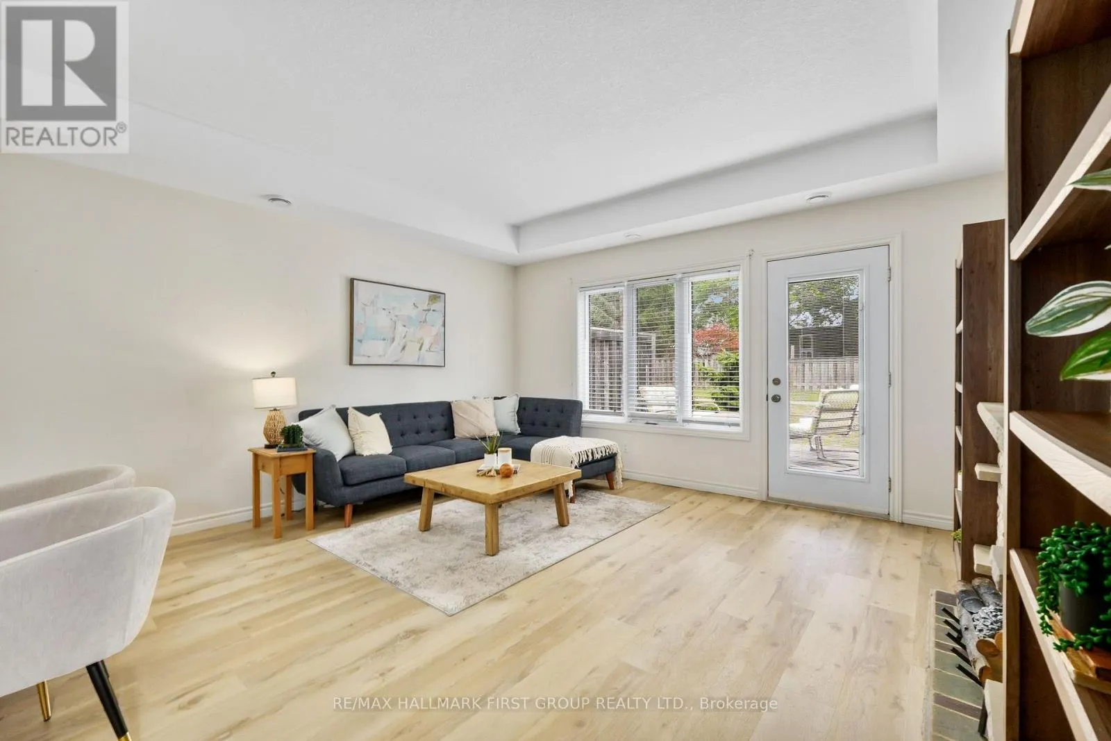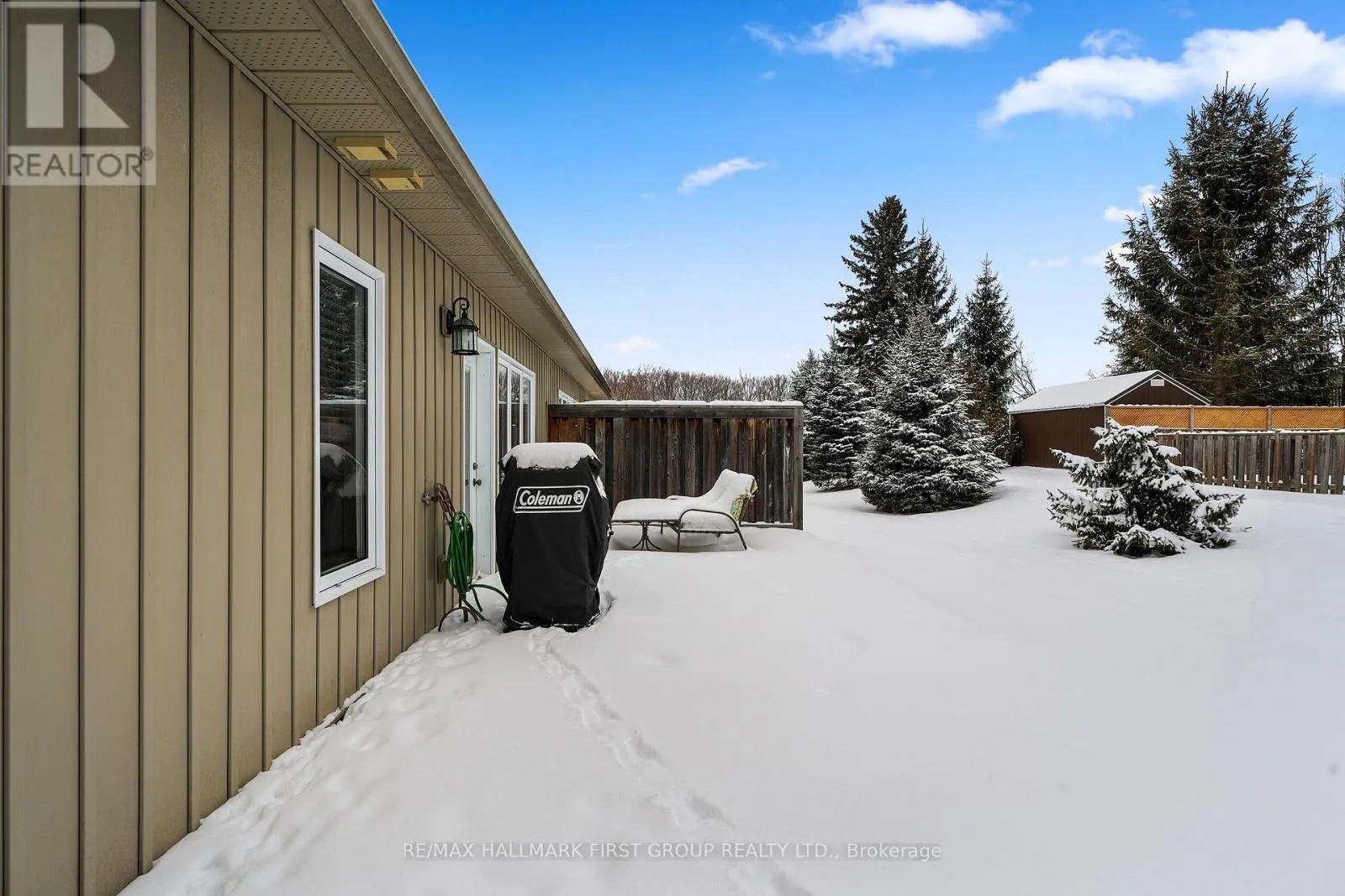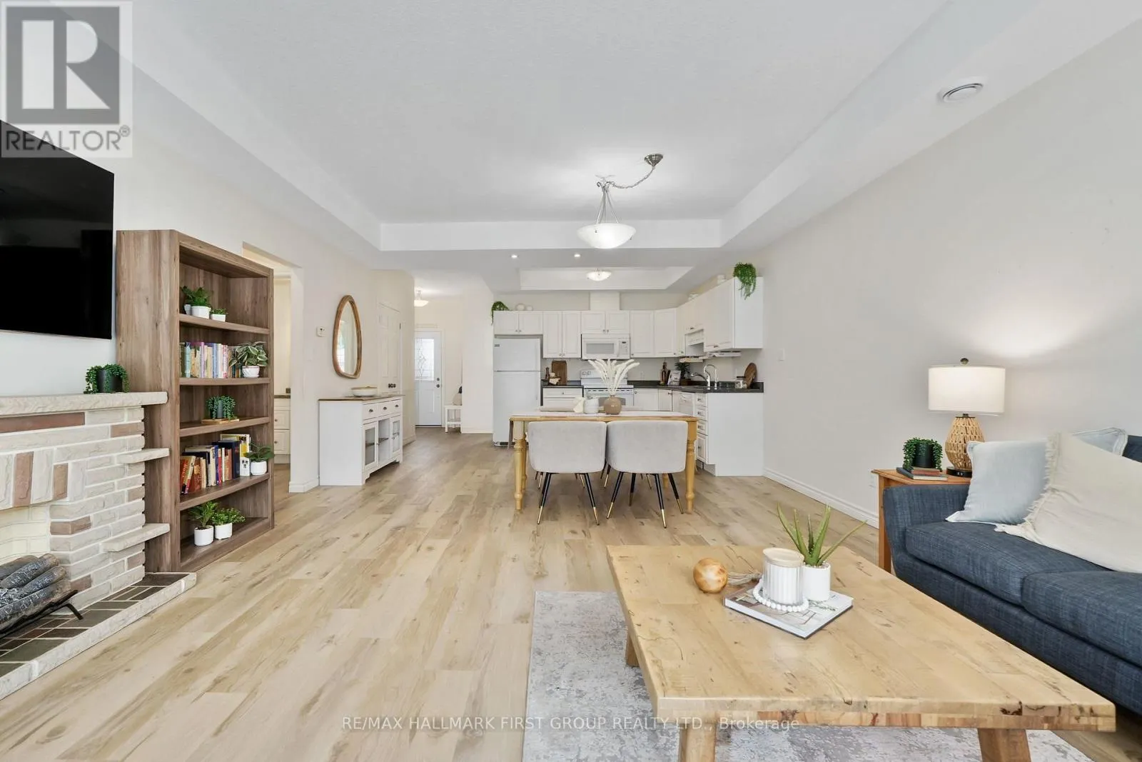 Cross Streets: George Court & Victoria St. ** Directions: CR2 heading East, Right onto Victoria St, Left onto George Crt. This low-maintenance, one-level townhouse features an efficient layout with carpet-free flooring in the main living areas, prioritizing comfort and ease. The front foyer provides direct access to the attached garage, making unloading simple, regardless of the weather. The open-concept principal space includes a bright and sunny living area with a walkout to the backyard, a central dining space accented by pendant lighting, and a well-equipped kitchen featuring matching appliances and recessed lighting. The spacious primary bedroom includes a walk-in closet and a full bathroom. A sun-filled guest bedroom and convenient in-suite laundry complete the layout. Step outside to enjoy a private deck and garden area that overlooks mature trees, providing a peaceful and secluded setting. Just minutes from town amenities and with quick access to the 401, this home is ideal for those looking to downsize and enjoy low-maintenance living. (id:27476)
