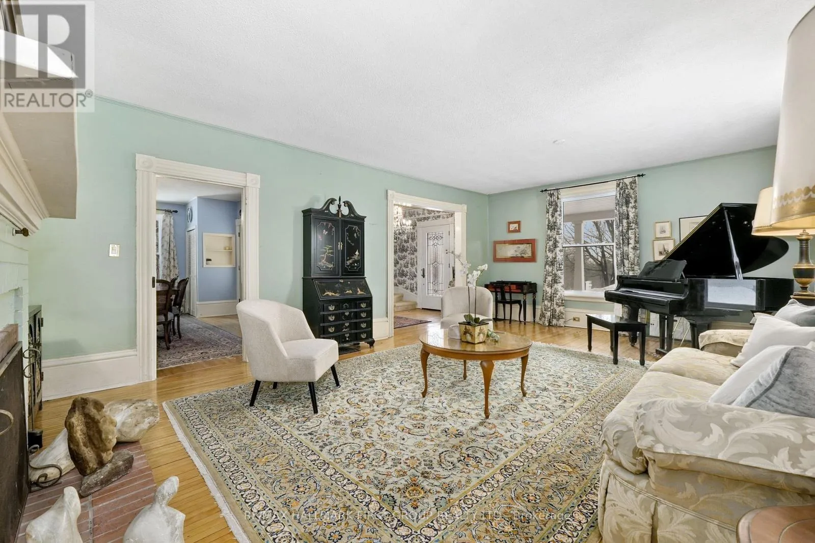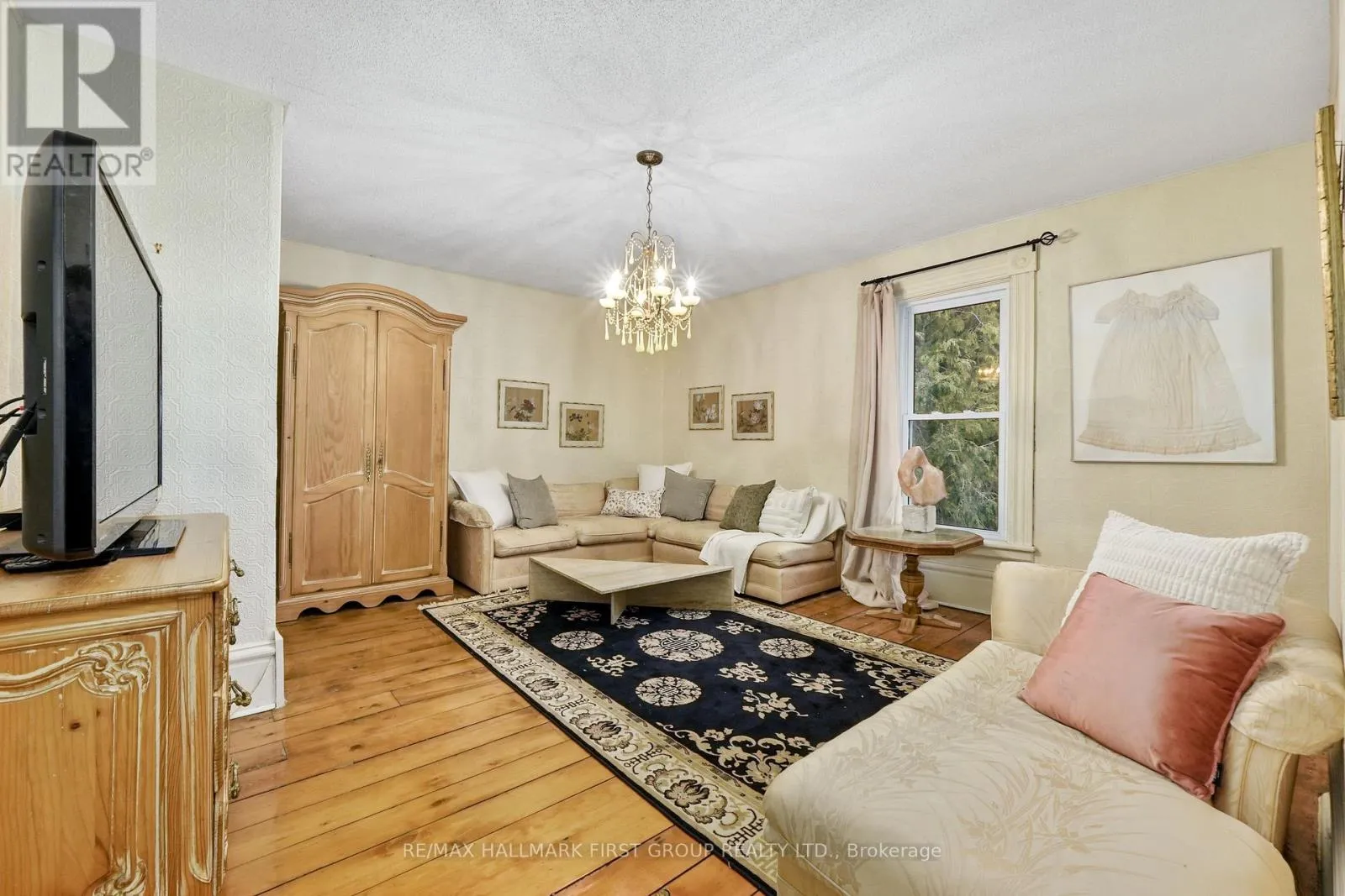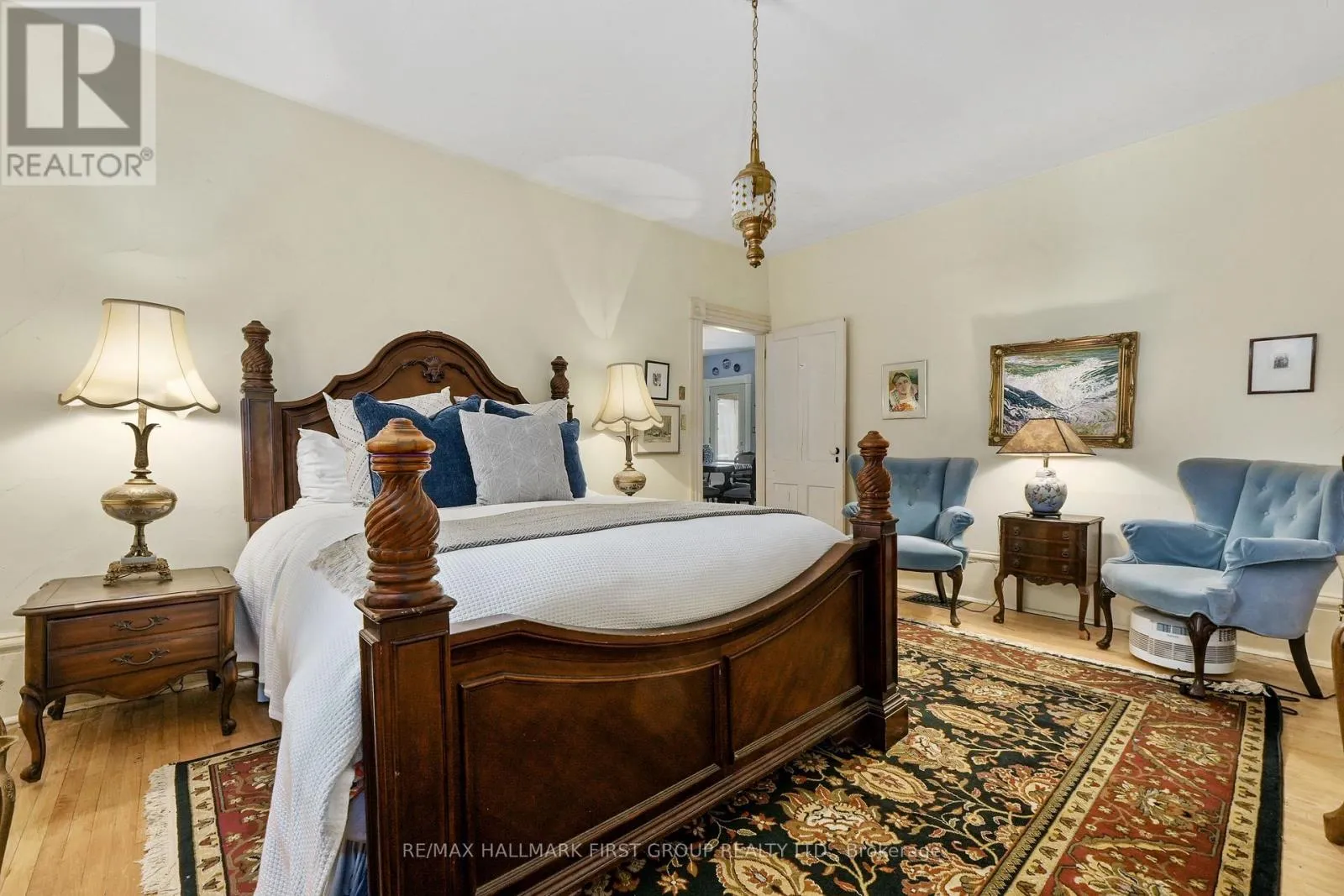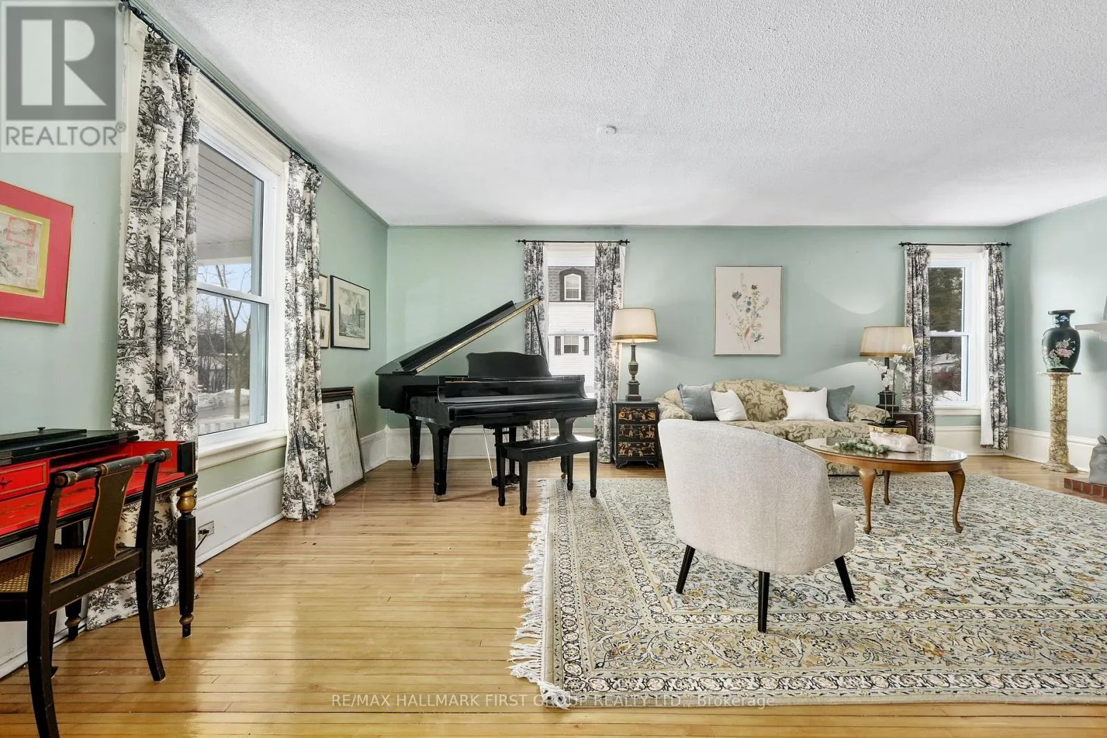 Cross Streets: Toronto St & Park St W. ** Directions: Toronto St heading S, Property on Left after Park St W. Full of character and timeless appeal, this brick home sits in the heart of Cramahe and blends period charm with thoughtful modern updates. An expansive front veranda sets the tone, leading into a spacious front foyer where classic craftsmanship is immediately on display. The inviting living room features extra-high baseboards, hardwood floors, and a fireplace, creating a warm and elegant space to relax or entertain. The dining room easily accommodates large gatherings and offers a walkout to the sunroom, an ideal spot to enjoy a quiet morning coffee or unwind at the end of the day. The kitchen delivers modern convenience with a tile backsplash, ample counter and cabinet space, an island with breakfast bar, and stainless steel appliances. The main level is completed by a guest bedroom, a bathroom, and the added convenience of main-floor laundry. Upstairs, the sun-soaked primary bedroom offers dual closets and access to a spacious bathroom, along with three additional well-sized bedrooms to suit family, guests, or home office needs. Outside, the sprawling property is surrounded by mature trees and features a covered back porch, perfect for outdoor enjoyment. Ideally located close to amenities with direct access to the 401, this home offers space, charm, and convenience. (id:27476)