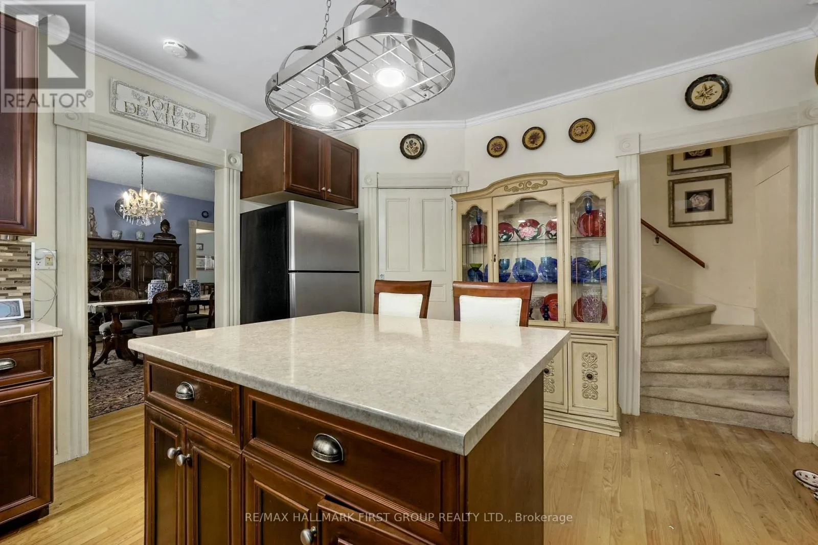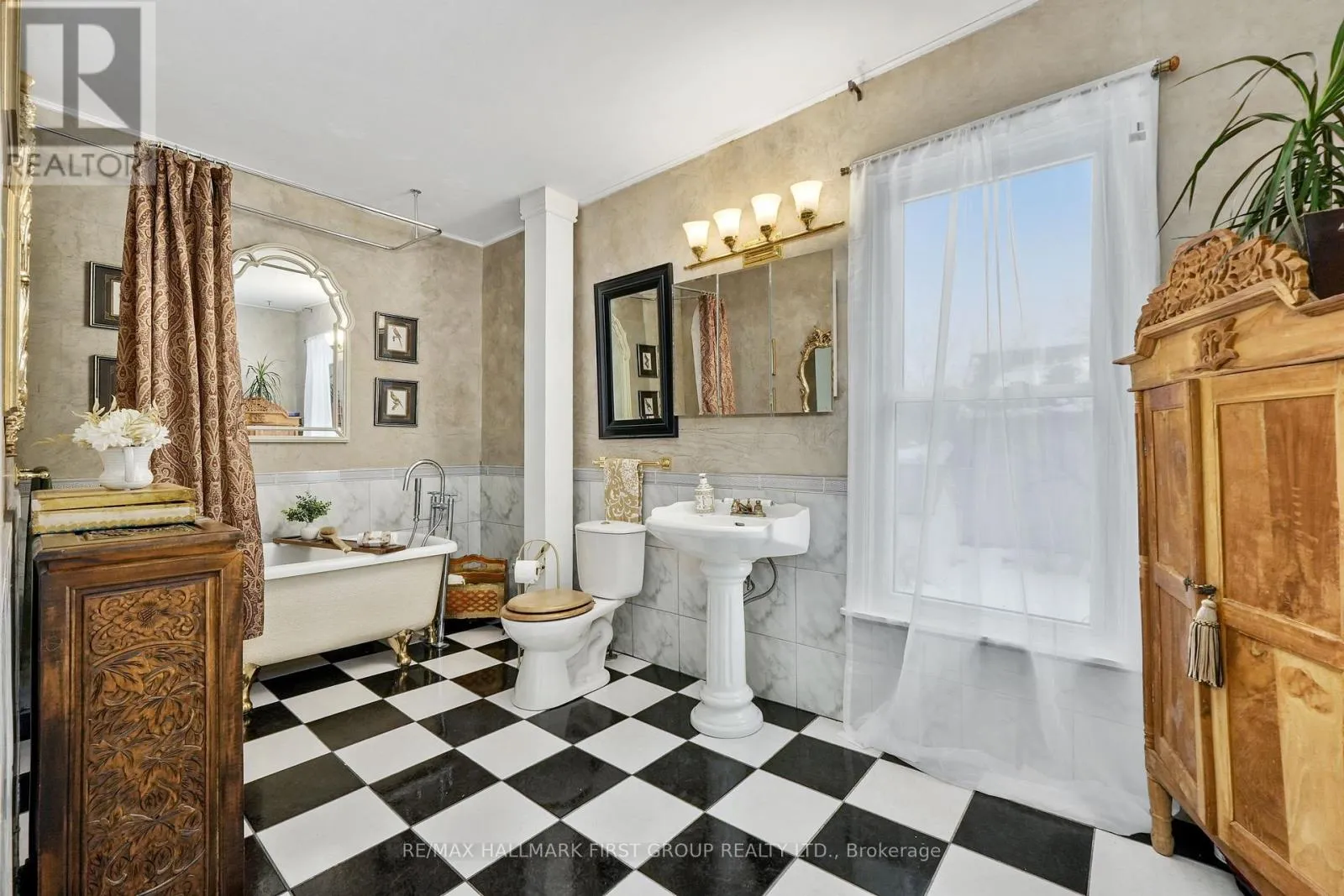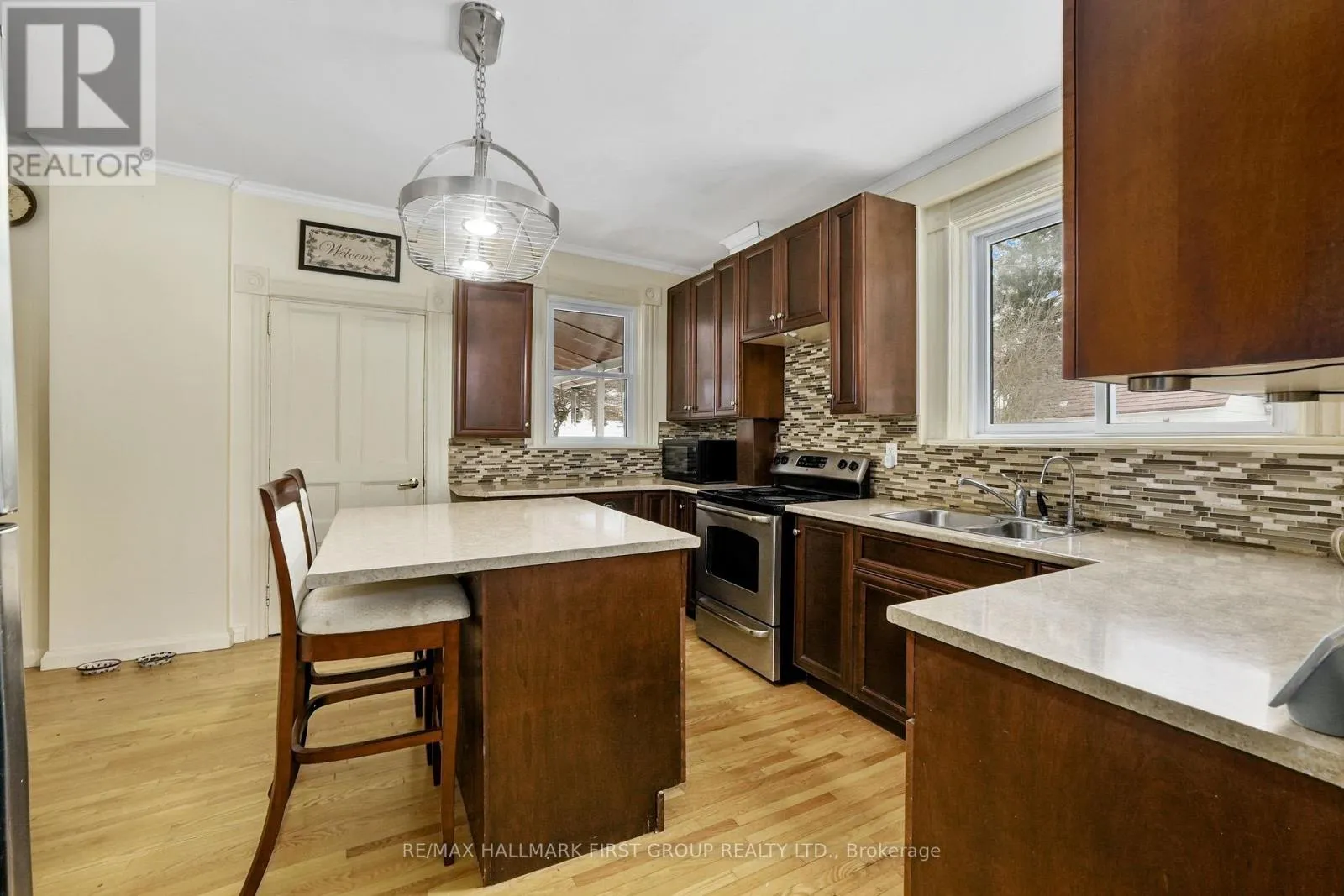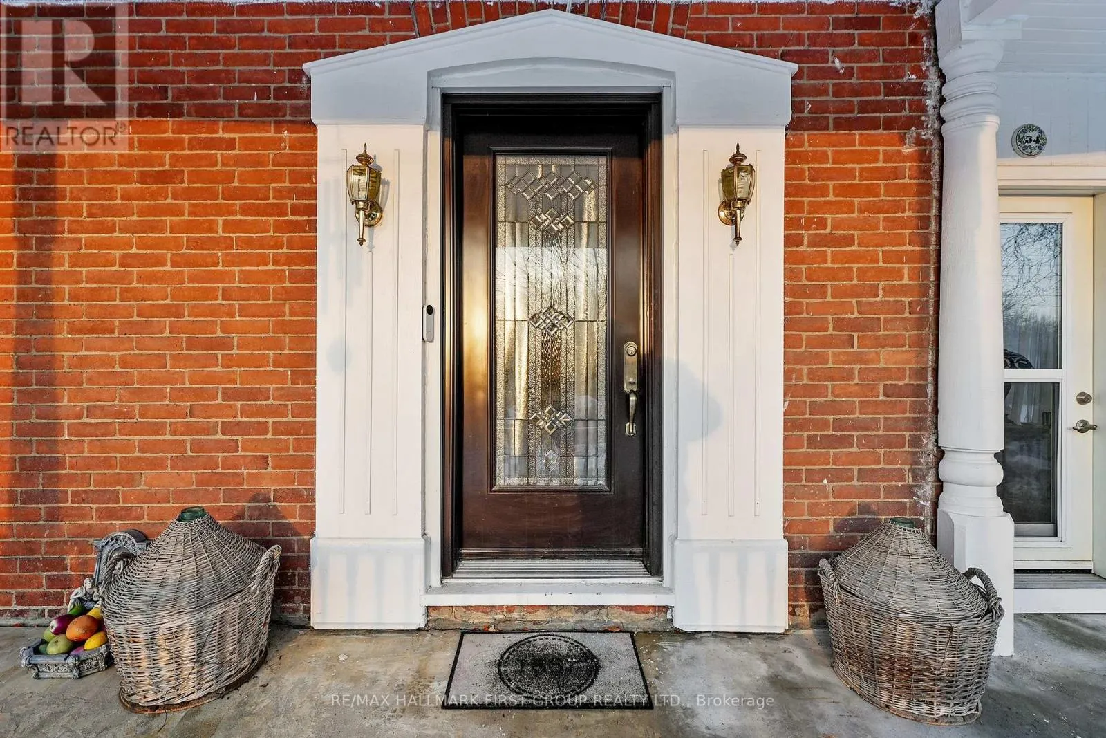 Cross Streets: Toronto St & Park St W. ** Directions: Toronto St heading S, Property on Left after Park St W. Full of character and timeless appeal, this brick home sits in the heart of Cramahe and blends period charm with thoughtful modern updates. An expansive front veranda sets the tone, leading into a spacious front foyer where classic craftsmanship is immediately on display. The inviting living room features extra-high baseboards, hardwood floors, and a fireplace, creating a warm and elegant space to relax or entertain. The dining room easily accommodates large gatherings and offers a walkout to the sunroom, an ideal spot to enjoy a quiet morning coffee or unwind at the end of the day. The kitchen delivers modern convenience with a tile backsplash, ample counter and cabinet space, an island with breakfast bar, and stainless steel appliances. The main level is completed by a guest bedroom, a bathroom, and the added convenience of main-floor laundry. Upstairs, the sun-soaked primary bedroom offers dual closets and access to a spacious bathroom, along with three additional well-sized bedrooms to suit family, guests, or home office needs. Outside, the sprawling property is surrounded by mature trees and features a covered back porch, perfect for outdoor enjoyment. Ideally located close to amenities with direct access to the 401, this home offers space, charm, and convenience. (id:27476)