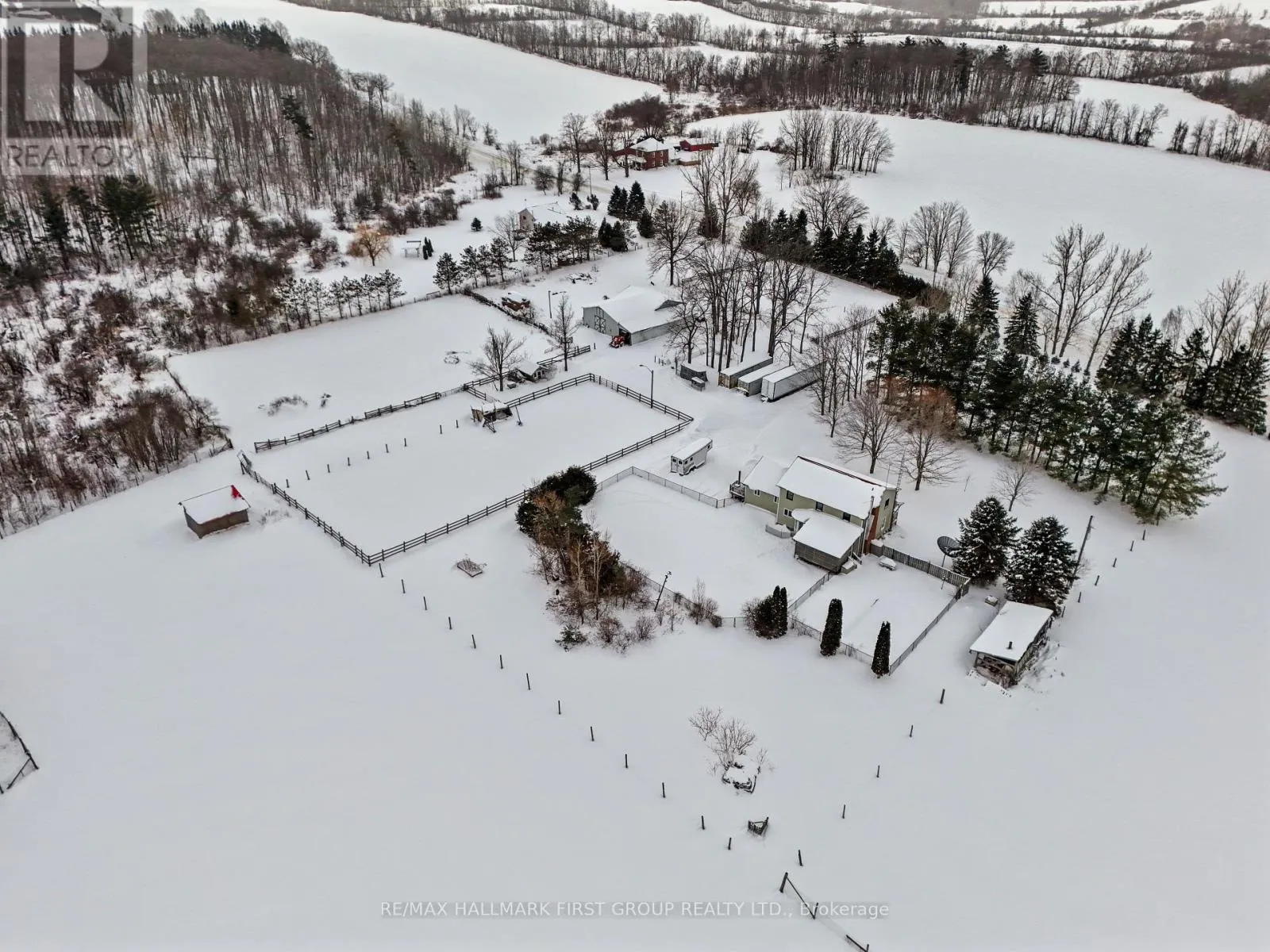 Cross Streets: Trottman Rd & Dundonald Rd. ** Directions: CR25 North, Right onto Dundonald Rd, Right onto Trottman Rd. Set on 37 acres of picturesque countryside, this hobby farm offers the perfect blend of peaceful rural living and practical functionality. A charming barn, fenced paddocks, and approximately 20 acres of workable hay fields make this an ideal property for equestrian or farming pursuits. Begin your mornings on the tranquil front porch, soaking in views and the quiet rhythm of country life. Step inside to a spacious front entry that leads into a bright front living room with French doors and a bay window. The open-concept main living area features a cozy family room with a fireplace and walkout, a dining space framed by a sunny bayed window nook, and a well-appointed kitchen with stainless steel appliances, pantry, breakfast bar, and generous counter and cabinet space. The main floor also features a versatile office or bedroom with a large window, a guest bathroom, laundry area, and a convenient mudroom. Upstairs, the spacious primary suite boasts a full ensuite with a soaker tub and separate shower. Three additional bedrooms and a full bathroom complete the upper level.Step outside to enjoy the covered back deck, a fenced yard area, and attached garage. Outbuildings include a barn, paddocks, and additional structures to support your agricultural needs. The property features approximately 4 acres of fenced paddocks, equipped with electric fencing and an automatic water feeder in two of them. Whether you're seeking a hobby farm or a serene country retreat, this property is the ideal escape. (id:27476)