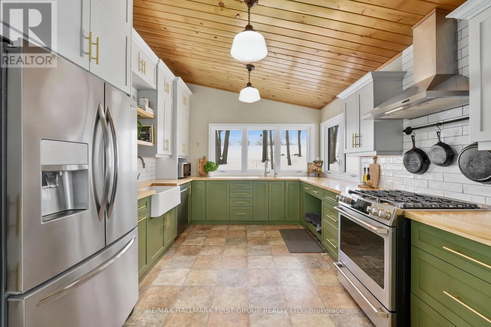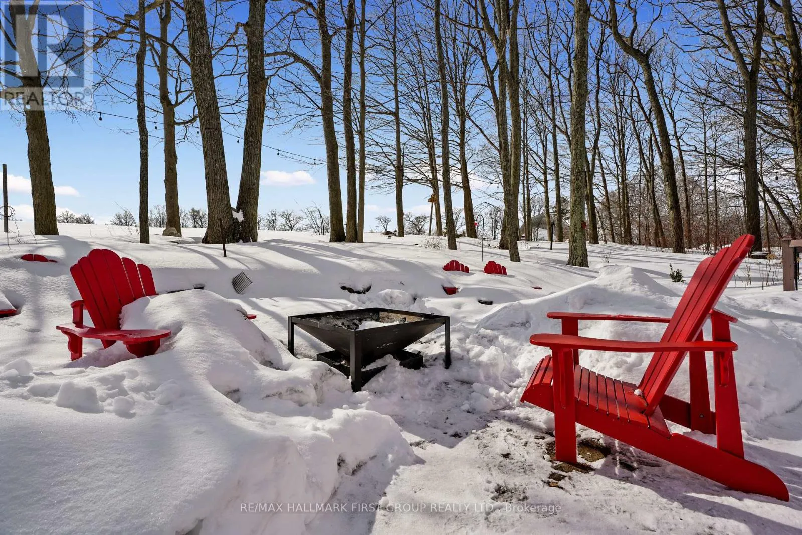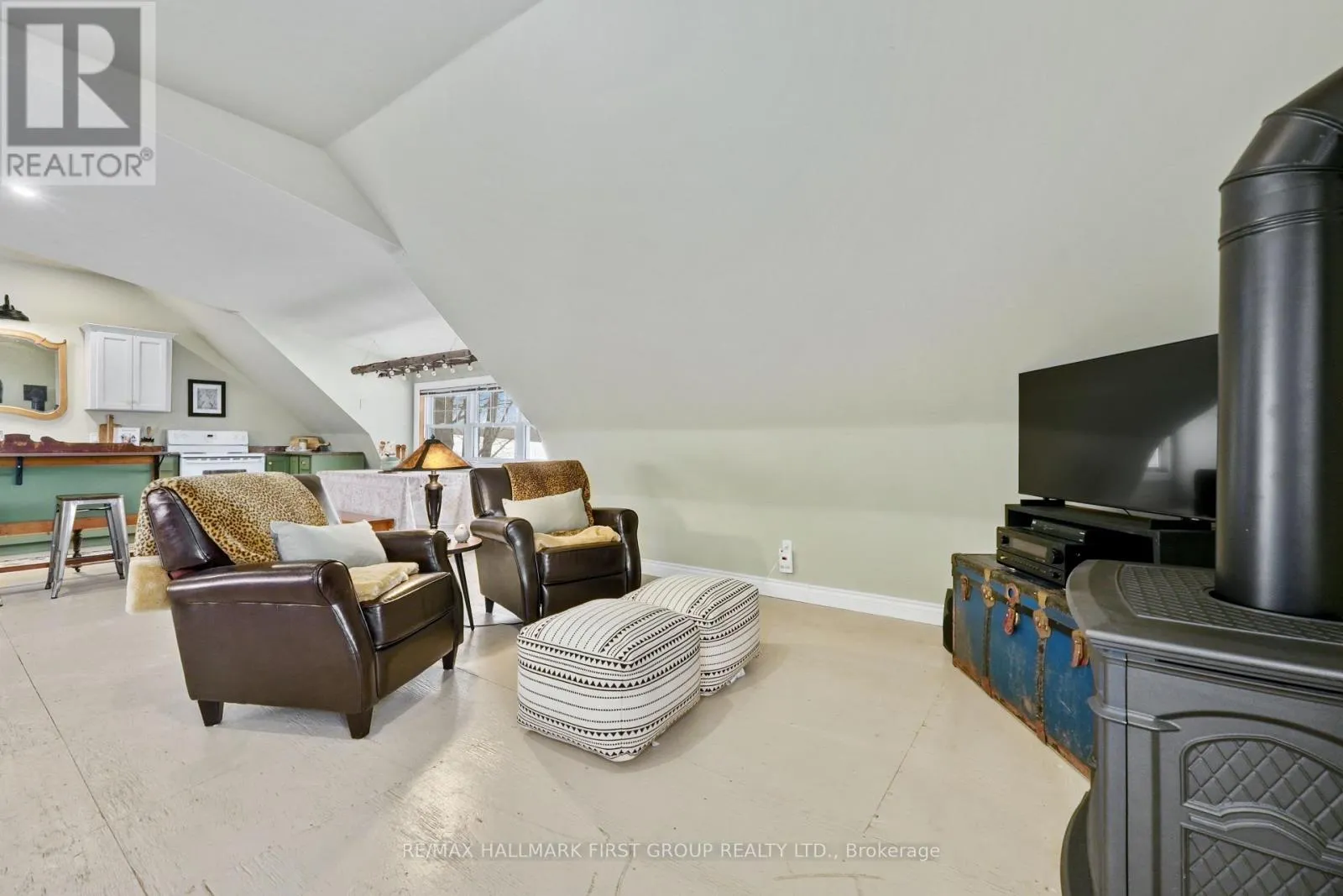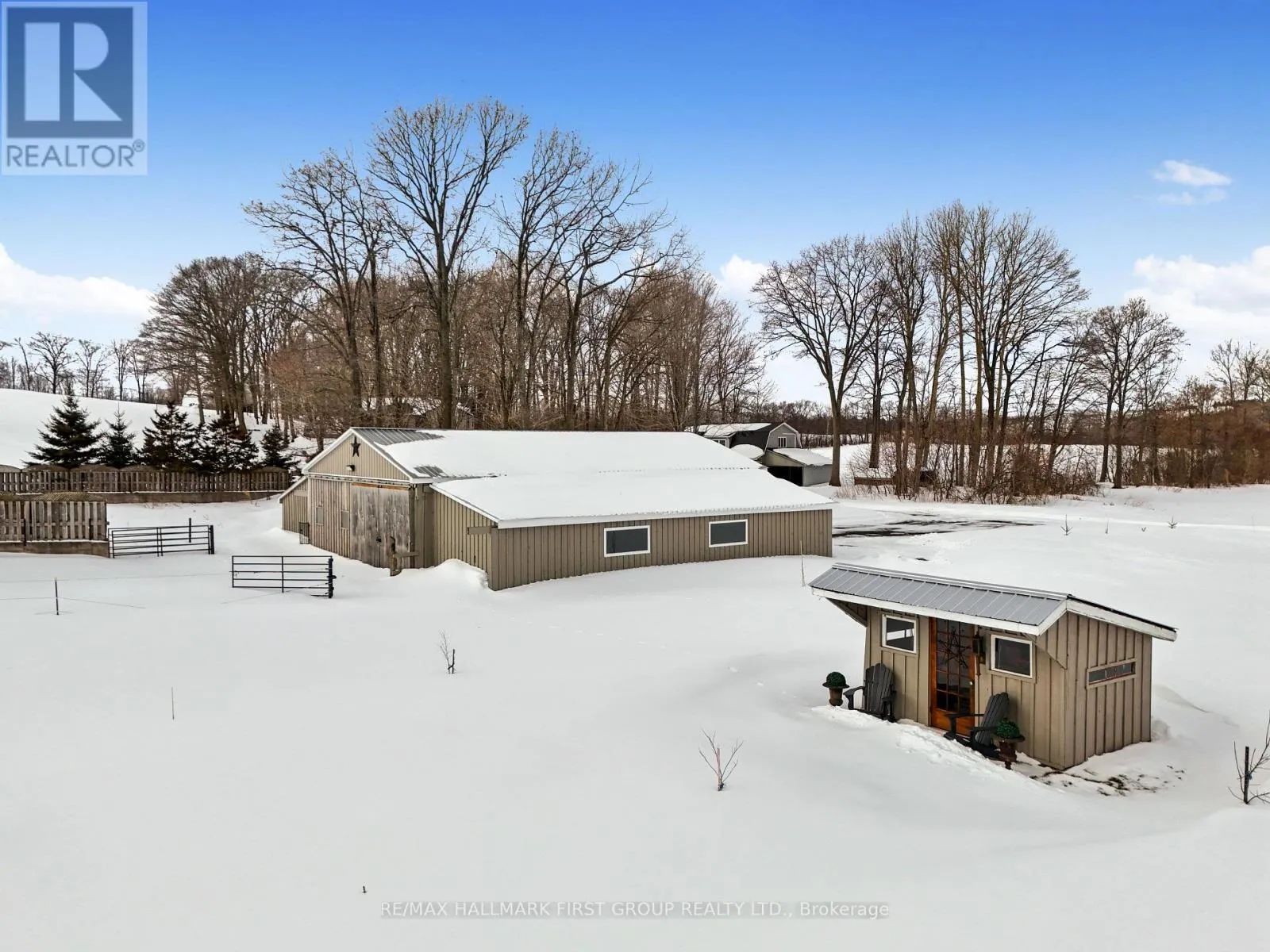Cross Streets: Honey Rd & Crandall Rd. ** Directions: Durham St N, Right onto Honey Rd. Set on 37.3 acres this exceptional property includes a striking main residence, barn, additional outbuildings, and a private in-law loft suite above a detached double garage. The main home features strong curb appeal and a dramatic entry with soaring ceilings. Living spaces are thoughtfully designed with vaulted ceilings, oversized windows, and a warm wood-clad dining ceiling. A built-in drinks and coffee station enhances everyday living and entertaining.The kitchen is a true centrepiece, offering butcher block countertops, stainless steel appliances, apron-front sink, prep sink, 9' custom cabinetry, open shelving, subway tile backsplash, and pass-through windows to an outdoor serving counter. A cozy yet sophisticated family room includes a custom propane fireplace with raw steel surround, open shelving, and a walkout to outdoor living areas. The main-floor primary suite is a peaceful retreat with sliding glass doors, scenic views, and a spa-like bathroom with walk-in shower and soaking tub. A second bedroom completes the main level. The lower level adds versatility with a office or gym, cold storage or wine cellar, recreation room with fireplace and walkout, an additional bedroom, and a full bathroom with dedicated vanity area.Outdoor living is designed for year-round enjoyment with a large rear deck featuring a dry kitchen and dual propane hookups, a generous fire pit area, and mature trees for privacy. Above the detached double garage, which includes a workshop and propane furnace, is a beautifully finished in-law suite with vaulted ceilings, propane fireplace, heat pump with air conditioning, open living and dining space, full kitchen with island, sleeping area, office nook, bathroom, and laundry. Additional features include a rewired barn with insulated tack room, outbuilding, electrical fenced pastures, workable land, and a standby generator servicing the main house, garage, and loft. A rare opportunity to own a luxurious, fully equipped country estate. (id:27476)