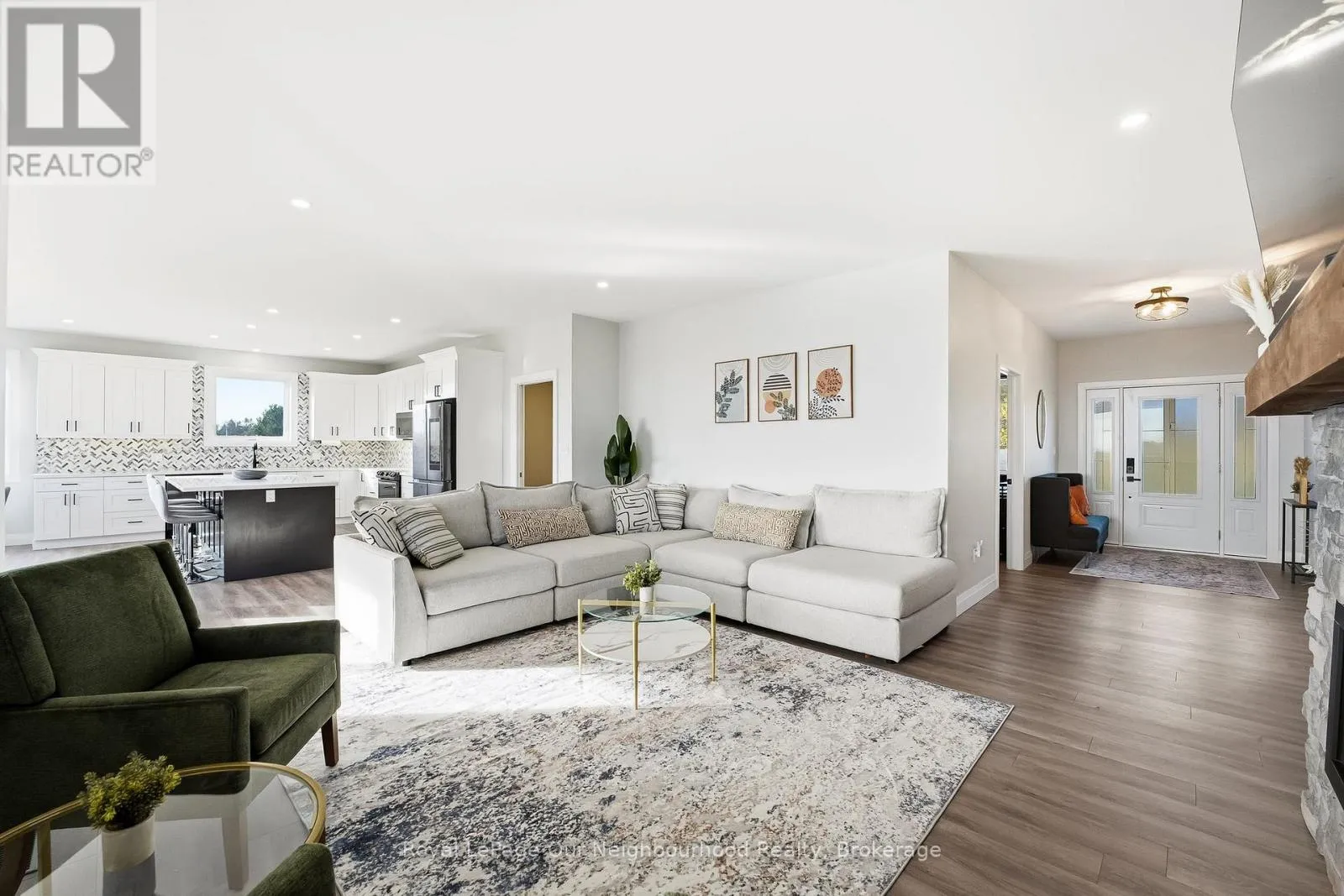 Cross Streets: Barnes and County Road 2. ** Directions: From 401 Colborne, Head South to County Road 2. Travel East to 14321 County Road 2. Home on the right (South) Side. This stunning raised bungalow is set on a picturesque 1.8-acre country lot, ideally located between Brighton and Colborne and just minutes from Highway 401. With approximately 4,000 sq. ft. of finished living space, an attached extra-deep two-car garage, four bedrooms, 3 full bathrooms, two kitchens, and room for additional bedrooms, this home is designed to meet a wide range of lifestyle needs. The main floor features three generous bedrooms, including a grand primary suite complete with a beautiful ensuite and walk-in closet. A fair sized office provides the ability to work from home and could be used as a bedroom if needed. The gorgeous modern kitchen flows effortlessly into the welcoming living room with access to the covered rear deck, and the dining room overlooks the property's natural setting. Convenient main-floor laundry and a spacious 5-piece guest bathroom add to the home's thoughtful layout. The fully finished lower level offers an exceptional opportunity for multi-generational living or an expansive family retreat. Here you'll find a second stylish kitchen, a sprawling living and recreation area, another 5-piece bathroom, a fourth bedroom, and two additional rooms perfect for an office, gym, playroom, or whatever you need. Large windows and a south-facing patio door bring in abundant natural light and create a warm, inviting atmosphere. Outdoors, year-round enjoyment awaits with a covered patio and hot tub for relaxing, a dedicated lounge area, and a refreshing swimming pool for summer fun. At the back of the property you'll find a charming stream and treed area home to local wildlife. Don't miss your chance to own the country property you've been dreaming of, conveniently located approx. 1 hour to the GTA and mere minutes to beautiful Presqu'ile Provincial. (id:27476)