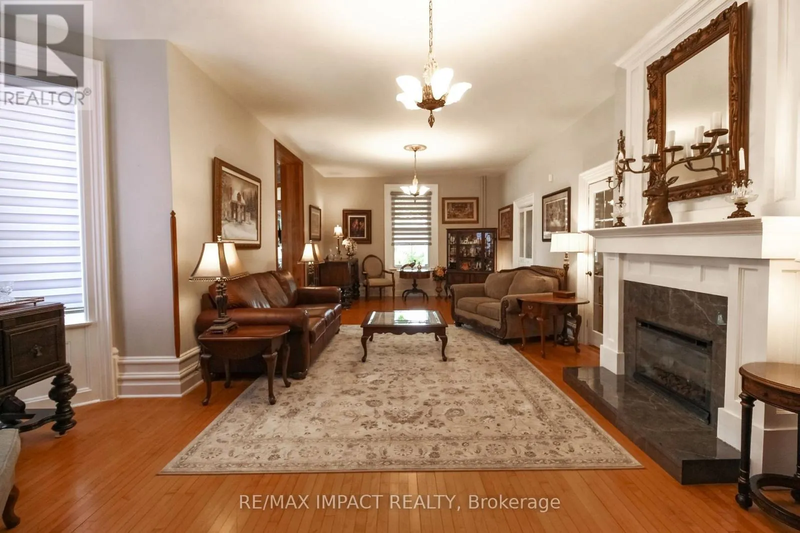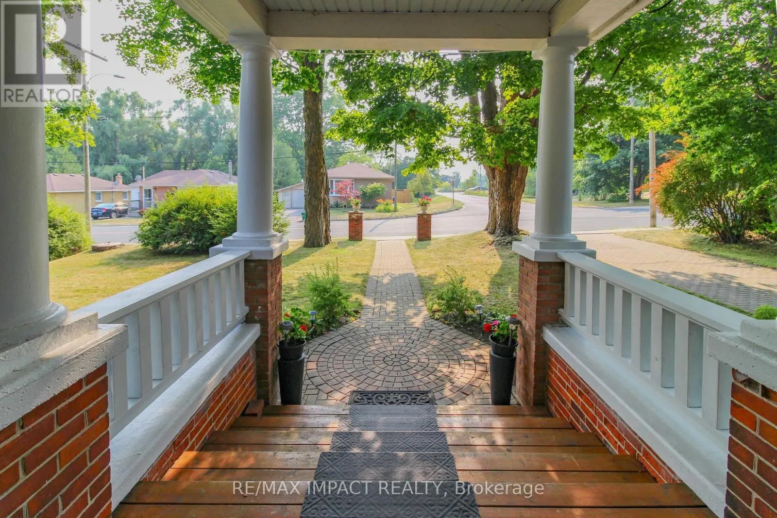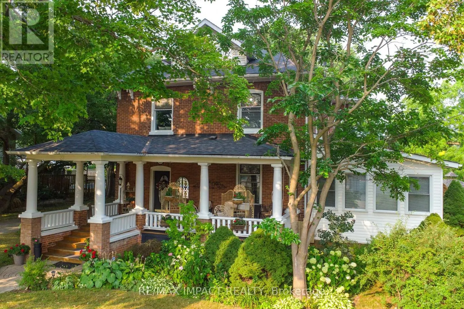 Cross Streets: Division St and King St (Hwy 2). ** Directions: 401 east to the \"Big Apple\" and go south on Division St and south of King St (Hwy 2). Welcome to this magnificent 2-1/2 storey brick CIRCA 1870's Century home, located in the downtown section of the Village of Colborne. This corner 0.63 acre lot with interlocking brick driveway running through the property provides access/egress to both Division and Creek Streets. The home's grandeur is one of the largest in the village, accentuated by a huge front veranda with white doric columns and ornate brackets under the wide eaves. Designed as an Italianate vernacular style, this Victorian home boasts an array of architectural details, including some window stained glass inserts, huge baseboards, extensive wood trim and hardwood flooring, glass door knobs, almost 10' main floor ceilings, plus a welcoming front foyer featuring a lit bannister and convenient powder room. The updated family kitchen showcases large porcelain tiles, a stylish white backsplash, s/s appliances and white cabinetry with quartz counters. The island includes a breakfast bar and the waffle white ceiling extends through to the windowed eating area. Off the kitchen, there is a convenient den, plus an expansive combined formal living/dining room with gas fireplace, hardwood floors and bay window area. Relax in the sunroom, complete with a cozy gas fireplace, abundant windows, stained wood ceiling, or step outside to the south deck with gazebo. The rear mudroom also features a gas fireplace with board-and-batten finished walls, plus access to full basement with concrete floor. Venture upstairs to the 2nd level with 3 well-appointed bedrooms, including a primary suite with a bay window and double mirrored closet doors. The upper level also features a large combination bathroom/ldry area with porcelain floor tiles, large walk-in shower, standalone soaker tub plus laundry facilities with front-load appliances. A spiral oak staircase leads to the 3rd level with a 4th bedroom, gas linear fireplace, round Palladian window dormer, skylights, plus 3-pc ensuite, mirrored closet and generous storage. (id:27476)