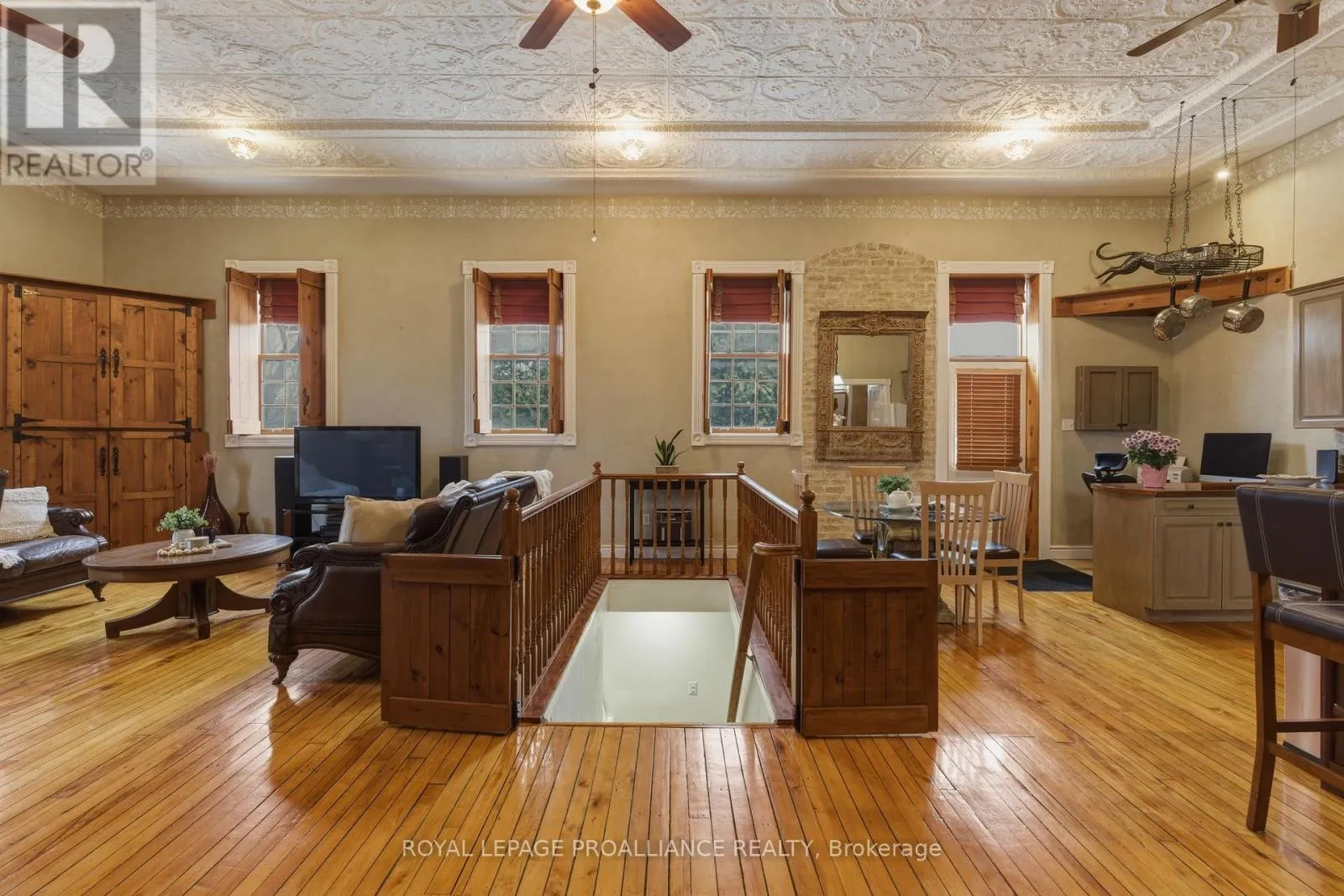 Cross Streets: Pine Street & Spring Street/CR 25. ** Directions: North on CR 25, Right at the Castleton General Store, Left onto Norway Street. Own a piece of history where timeless character meets inspired country living. Originally built in the early 1900s as the local schoolhouse, this remarkable property has been thoughtfully transformed into a warm and inviting home while preserving the architectural details that make it truly unforgettable. From the moment you arrive, the stately red-brick exterior reflects its proud heritage, including one of its most fascinating original features, separate entrance once designated for boys and girls. These rare preserved details create an immediate sense of authenticity, charm, and connection to the past. Inside, the breathtaking main living space is filled with warmth and natural light. The original hand-hammered tin ceiling adds striking architectural beauty, while beautifully preserved hardwood floors bring richness and character. Impressive ceiling height and oversized windows create an open, airy atmosphere that feels both grand and welcoming. The open-concept living, dining, and kitchen areas blends historic charm with modern functionality, offering an inviting space for everyday living and effortless entertaining. The finished lower level provides flexible living space ideal for guests, recreation, home office use, or multi-generational living. Outdoors, the property becomes a peaceful private retreat. Mature trees, thoughtful landscaping, and a tranquil water feature create a setting designed for relaxation and connection with nature. Enjoy summer days by the pool or gather fresh fruit from an established collection of cherry, pear, plum, apricot, and a mature mulberry tree. Located in the welcoming community of Castleton, just a short drive to Cobourg and Highway 401, this is a rare opportunity to own a home rich in history, character, and heart. (id:27476)