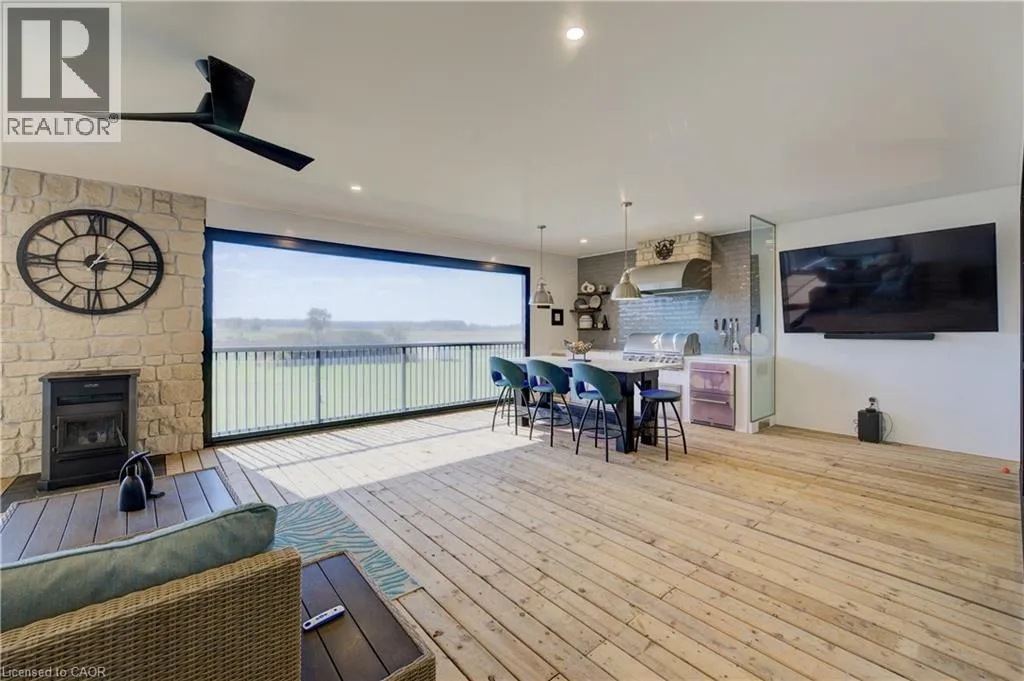 McNabb Line Turn Right on Cranbrook Rd, Right on Kent Line , Left on Adelaide . Prepare to be captivated by this extraordinary custom home at 43711 Adelaide Street, where modern design meets refined comfort in every detail. The moment you step inside, youâre greeted by an expansive open-concept living space bathed in natural light, highlighted by soaring ceilings, wide-plank flooring, and sleek contemporary finishes. The designer kitchen is a true centerpieceâoffering full-height cabinetry, quartz surfaces, a massive island for gathering, and professional-grade appliances seamlessly integrated into a clean, timeless aesthetic. The adjoining dining area and great room create the ultimate entertaining space, framed by oversized patio doors that open to a show stopping screened-in porch. Here, indoor and outdoor living blend beautifully with a full outdoor kitchen, lounge seating, dual ceiling fans, and a luxurious swim spa overlooking peaceful country viewsâan all-season retreat like no other. The primary suite is a private haven with a spa-inspired ensuite and His & Hers Walk-In Closets â Designed for Luxury and Function, while additional bedrooms and baths combine style and function for family or guests. The finished lower level adds even more versatility, featuring a bright family room, secondary kitchen, and a cozy sunroom that invites you to relax and recharge. Every inch of this home showcases quality craftsmanship and thoughtful design. Outside, a detached 1,100 sq. ft. garage/workshop offers extra room for hobbies or storage and is set up all the infrastructure you would needâcompleting a property that truly redefines what country luxury can be. Peace of Mind, Rain or Shine â 24kW Whole-House Generator Included! Never worry about power outages with 24kW whole-house generator. Seamlessly integrated into the homeâs electrical system, this powerful unit automatically activates within seconds of an outage, keeping the entire household runningâfrom kitchen appliances to Wi-Fi to your Swim Spa! 96 sprinkler heads for in ground irrigation system (id:27476)