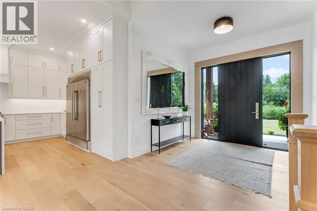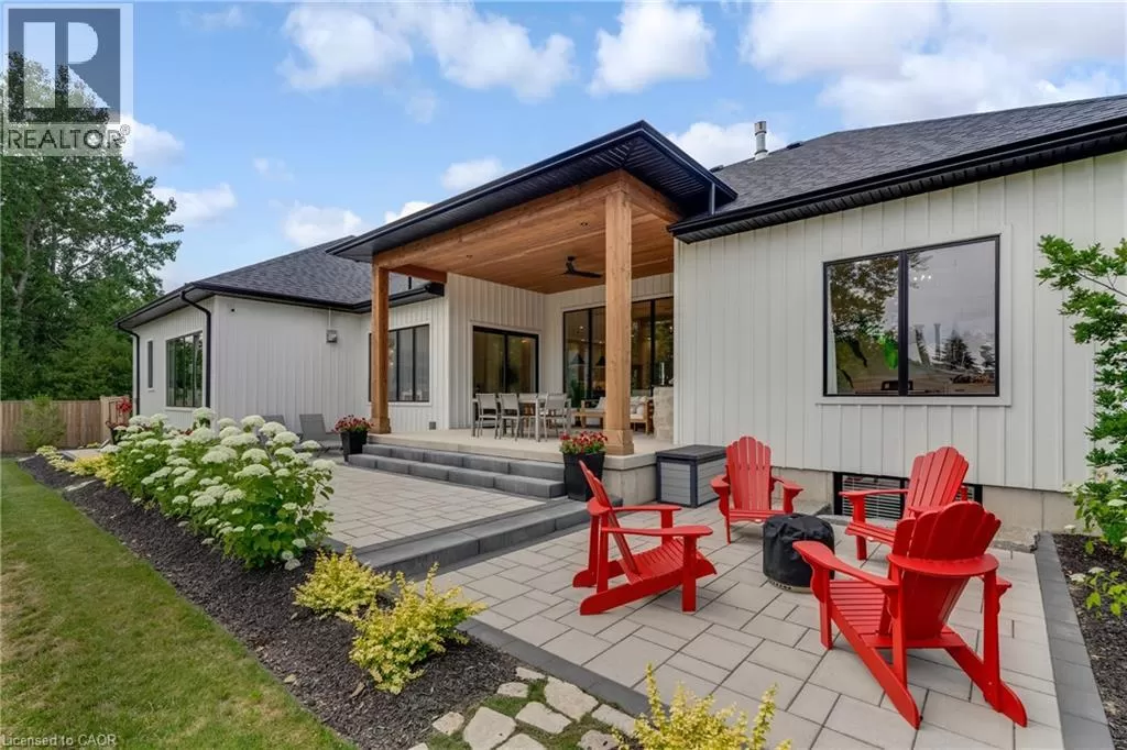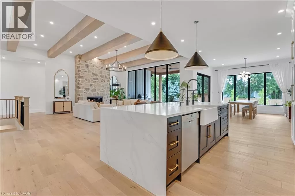 Lobsinger Line through St. Clements to Lobsinger and Greenwood Hill. Located on the left. This exceptional custom bungalow, offers nearly 6,000 sq ft of finished living space on a serene country lot under an acre. With 6 bedrooms, 4 bathrooms, and an oversized 3-car garage with parking for 6 more, this home is ideal for large or multigenerational families. Inside, 10' ceilings throughout the main floor and a vaulted 12' great room with a floor-to-ceiling natural stone fireplace create an open, airy feel. White oak engineered hardwood spans both levels, adding warmth and elegance. The chefâs kitchen features a double waterfall island, top-of-the-line appliances, an oversized built-in fridge/freezer, and connects to a stunning walk-through pantry with second fridge, white oak counters, and custom cabinetry. The dining area leads to a covered concrete porch with built in natural stone outdoor BBQ, perfect for entertaining. The primary suite includes white oak beam accents, a gas fireplace, luxurious ensuite, custom walk-in closet, and direct access to the laundry room. A finished basement adds more bedrooms, bathrooms, and versatile space for guests, teens, or recreation. Large windows throughout flood the home with natural light. The backyard has plenty of room to add a pool. Located 12 Minutes to St,Jacobs, 13 Minutes to the Farmers Market, 14 Minutes to Waterloo and 22 Minutes to Kitchener. This is a rare opportunity to enjoy refined country living close to the city. The pool photo is virtually completed for the visual of how a pool could be done. (id:27476)