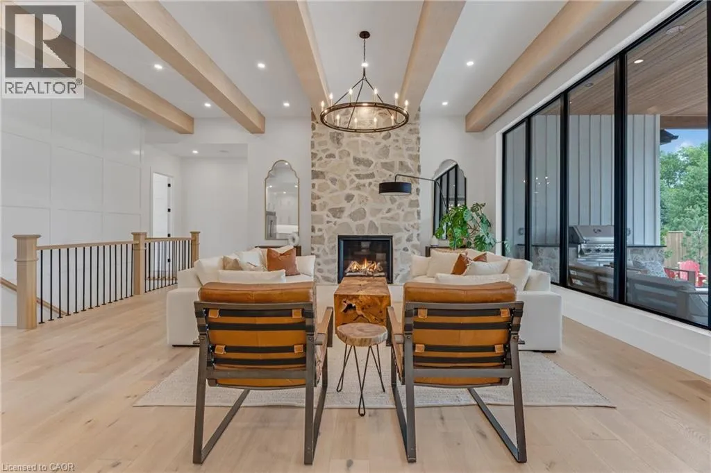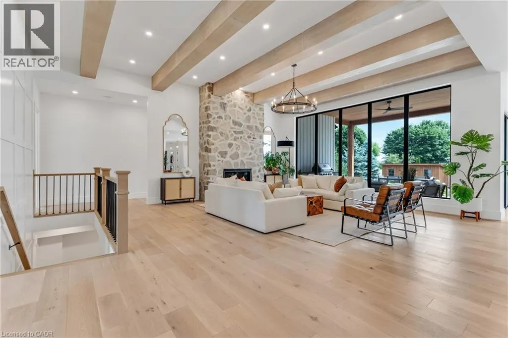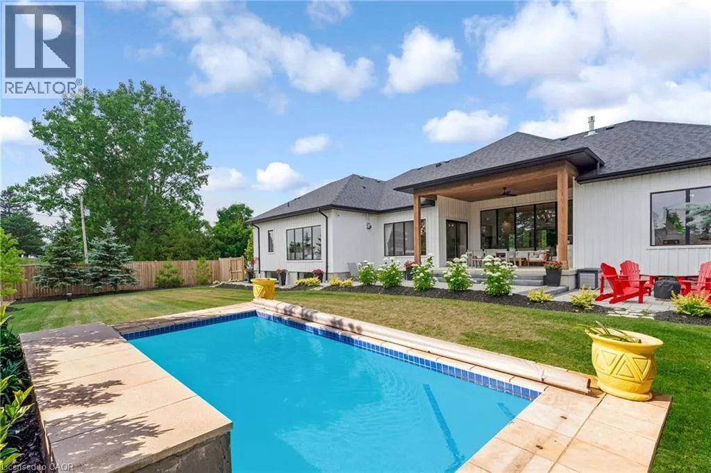 Lobsinger Line through St. Clements to Lobsinger and Greenwood Hill. Located on the left. This exceptional custom bungalow, offers nearly 6,000 sq ft of finished living space on a serene country lot under an acre. With 6 bedrooms, 4 bathrooms, and an oversized 3-car garage with parking for 6 more, this home is ideal for large or multigenerational families. Inside, 10' ceilings throughout the main floor and a vaulted 12' great room with a floor-to-ceiling natural stone fireplace create an open, airy feel. White oak engineered hardwood spans both levels, adding warmth and elegance. The chefâs kitchen features a double waterfall island, top-of-the-line appliances, an oversized built-in fridge/freezer, and connects to a stunning walk-through pantry with second fridge, white oak counters, and custom cabinetry. The dining area leads to a covered concrete porch with built in natural stone outdoor BBQ, perfect for entertaining. The primary suite includes white oak beam accents, a gas fireplace, luxurious ensuite, custom walk-in closet, and direct access to the laundry room. A finished basement adds more bedrooms, bathrooms, and versatile space for guests, teens, or recreation. Large windows throughout flood the home with natural light. The backyard has plenty of room to add a pool. Located 12 Minutes to St,Jacobs, 13 Minutes to the Farmers Market, 14 Minutes to Waterloo and 22 Minutes to Kitchener. This is a rare opportunity to enjoy refined country living close to the city. The pool photo is virtually completed for the visual of how a pool could be done. (id:27476)