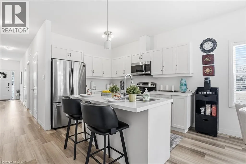 Ridgeway Rd past Erie Rd to Southcoast Circle. Welcome to 22 South Coast Circle in The Shores at South Coast Villageâa beautiful, master-planned community by Marz Homes, perfect for those seeking a vibrant and low-maintenance lifestyle! This bright and airy 2-bedroom, 2-bathroom, 1220 sq. ft. bungalow end unit boasts an open-concept layout designed for modern living. Step inside to find a sunlit living and dining area with large windows and 9-foot ceilings. The stylish kitchen features quartz countertops, a spacious island, and an under mount sink, making it both functional and elegant. Enjoy seamless indoor-outdoor living with a walkout to your private, west-facing yardâideal for catching beautiful sunsets. The spacious master suite is a serene retreat, complete with a walk-in closet and an ensuite featuring a custom-tiled shower. The unfinished basement offers potential for a recreation room, additional bathroom, and ample storage space. The Shores community offers exclusive amenities, including a clubhouse with a kitchen, an outdoor pool, and multipurpose sports courts (all currently under construction). Situated moments from Lake Erie, Bay Beach Park, and Ridgewayâs quaint shops and eateries, this prime location ensures every convenience is within reach. Plus, as a land condo, maintenance is made easy with services covering snow removal, lawn care, garbage collection, and future access to all clubhouse amenities. This is a rare opportunity to join a thriving, beachside community filled with charm and characterâmake 22 South Coast Circle your home today! (id:27476)