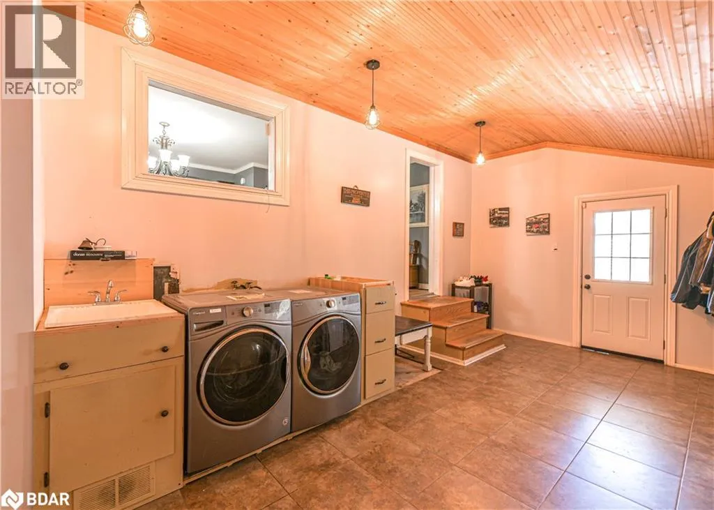 HWY 11 North to Park road - on the corner. Need more space for your growing family and/or business (or for the toys)? Look no further. Well maintained 3 bedroom home with two bathrooms (1x4, 1x2), central air and gas fireplace. Spacious kitchen and good sized bedrooms and primary rooms. This home even offers a large 24x36 shop or hobby barn with a gas fireplace, hydro and plumbing lines. Plus a finished loft area. Large driveway can/will accommodate lots of cars and the property even has a ready to go chicken coop. Bonus room to convert existing storage area at front of house to a garage as well. (id:27476)