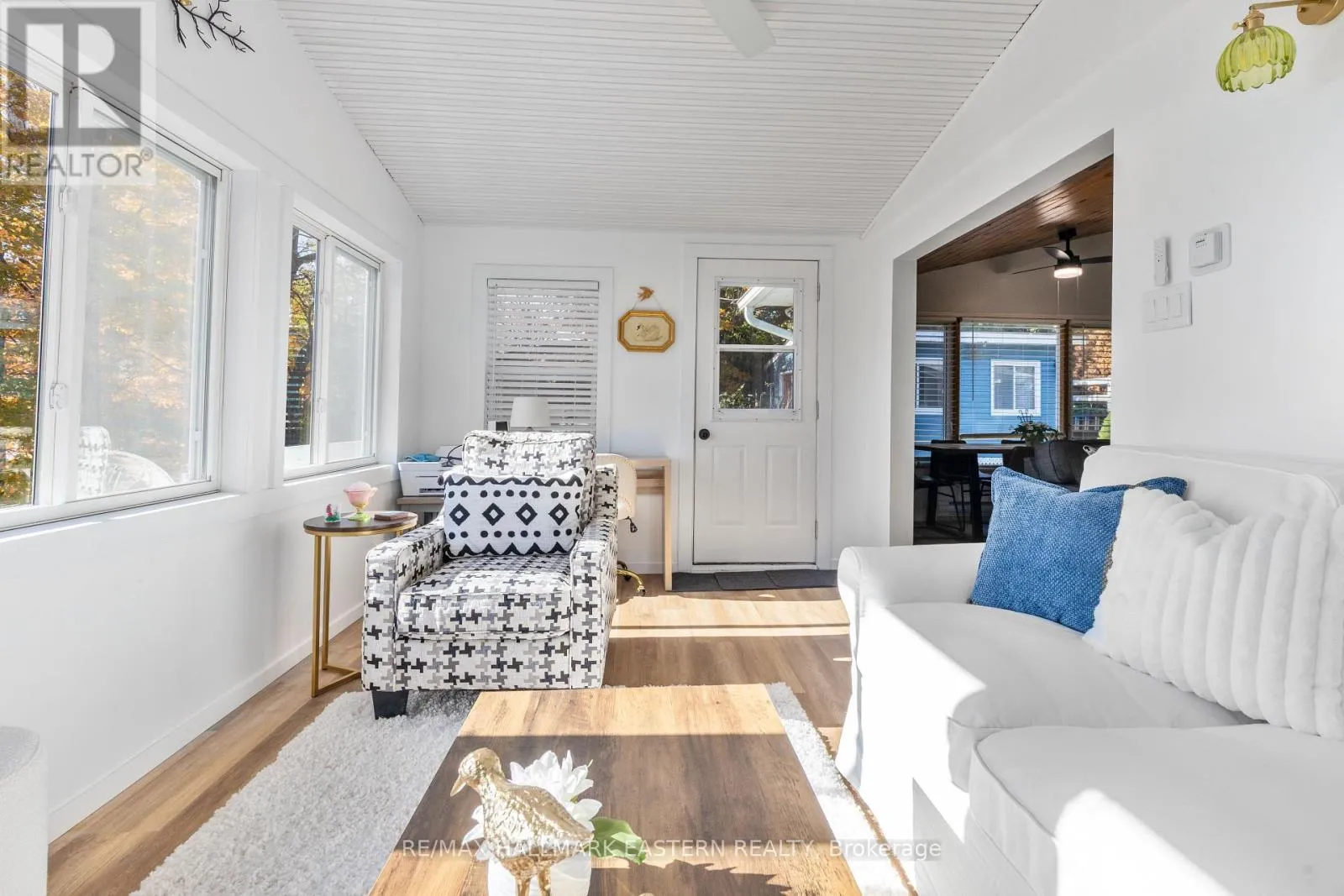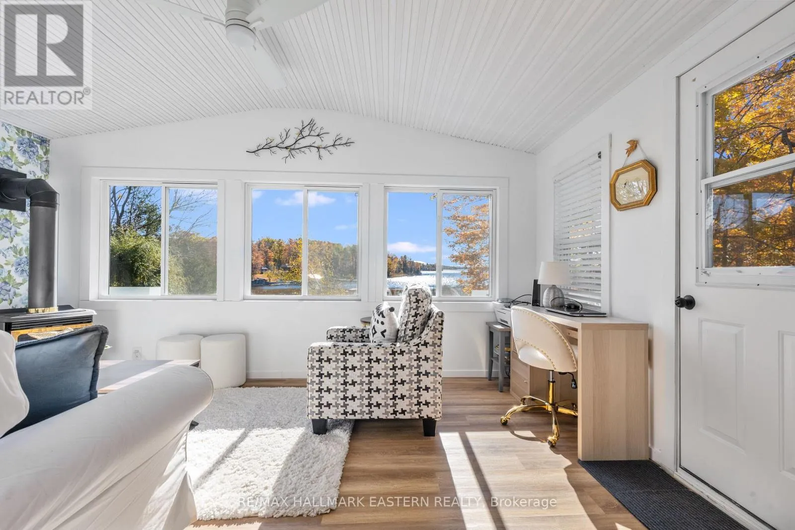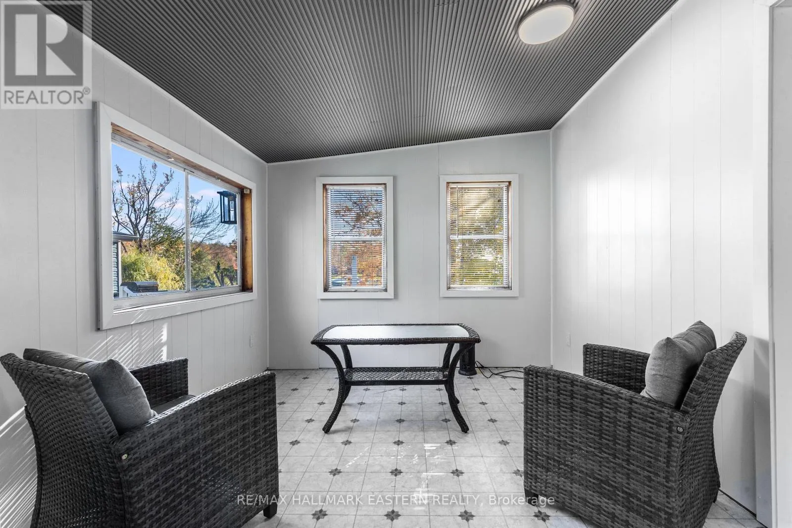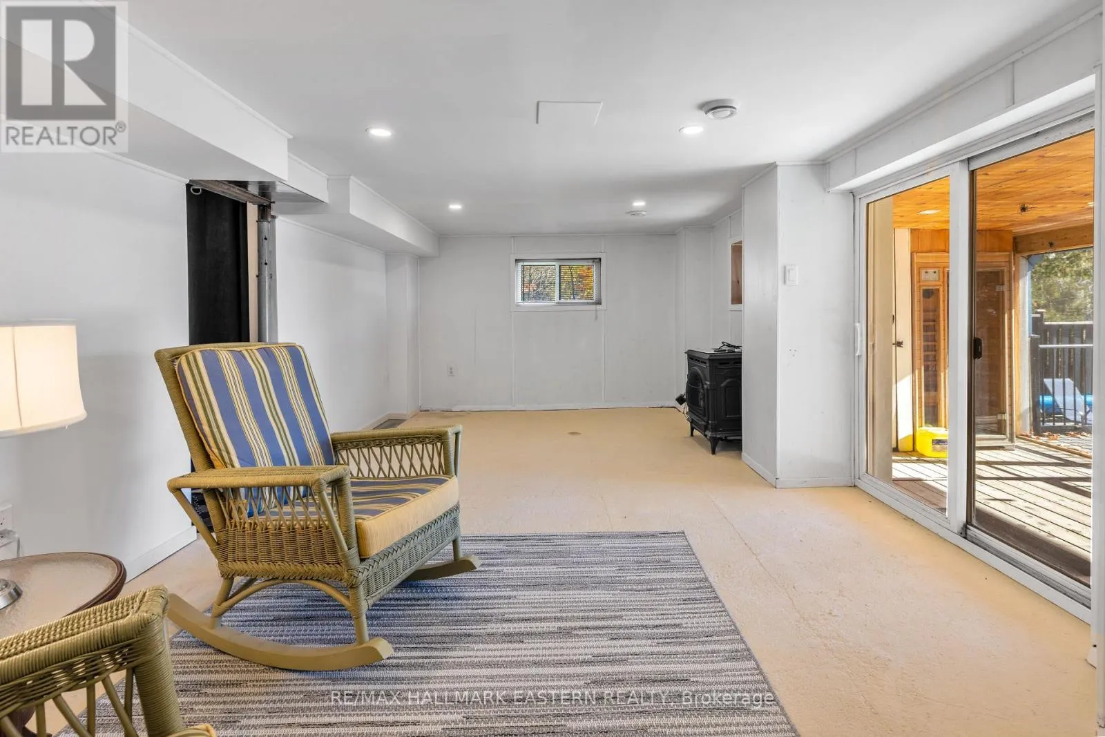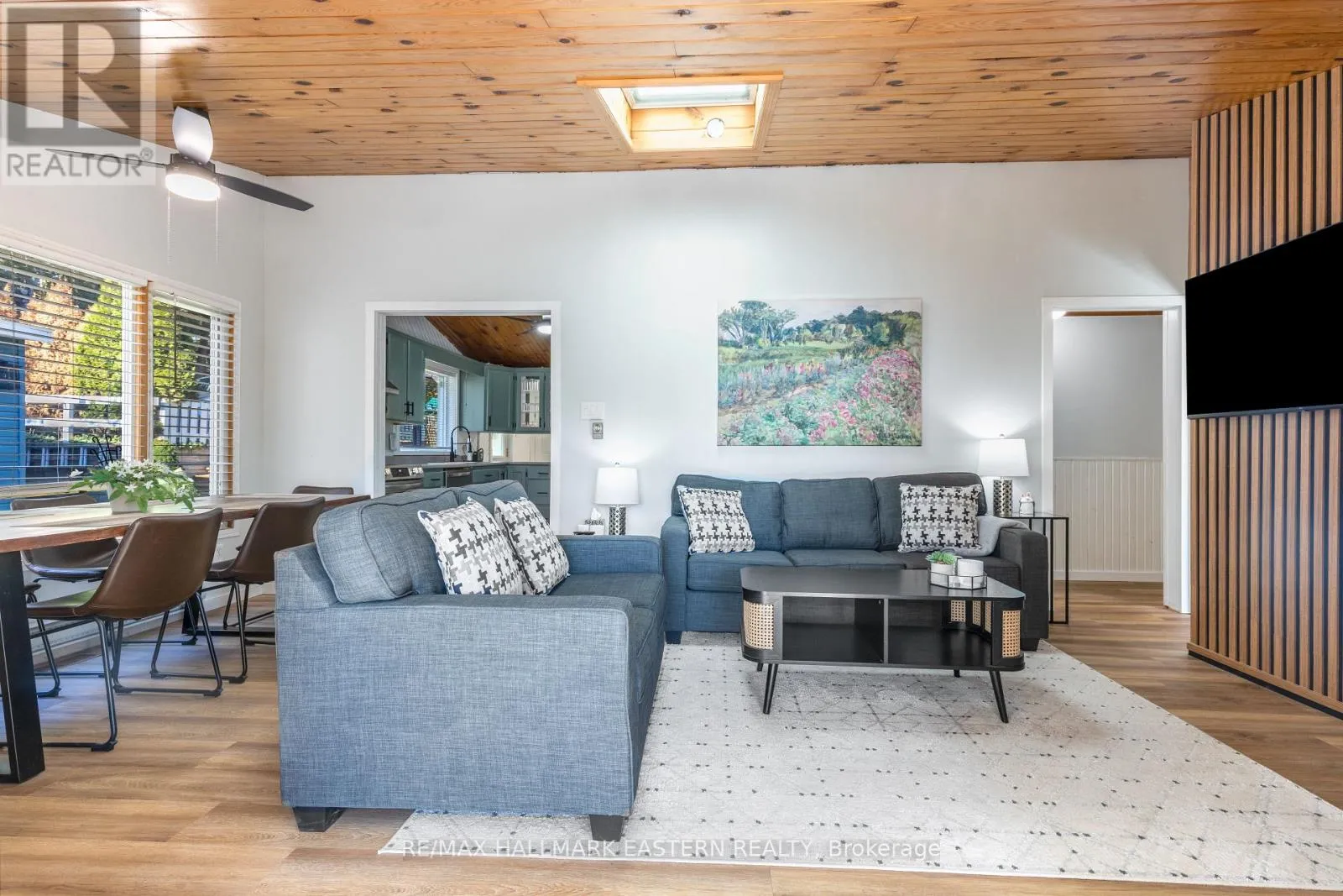 Cross Streets: Albert's Lane and Franklin Street. ** Directions: Curve Lake Road to Albert's Lane left on Franklin Street. This charming bungalow is nestled on the shores of Buckhorn Lake in the serene waterfront community of Beausoleil. It has 100 feet of waterfront with a fabulous south facing open lake view. This quaint two plus bedroom, one and half bath home features outstanding lake views and walk out to a balcony from the primary bedroom. The living room/dining room has a propane fireplace and a commanding lake view. The beautiful sunroom has a stunning lake view and is where you will spend hours watching the changing seasons on the lake. There is a door from the sunroom leading to the deck extending your living out of doors. The lower level offers a rec room, third bedroom, and a new 2 pc bath. There is a walkout to a covered and screened in patio that has a hot tub and sauna overlooking the lake for hours of enjoyment! Imagine relaxing in your hot tub while enjoying the view of the lake. There is a wonderful inground pool that overlooks the lake and is heated to extend your hours of enjoyment later in the season! The pool has had a new liner installed in 2025. There is a charming 2 bedroom bunkie which also has stunning lake views and has a door to the lakeside. It has been redone including all new insulation. This wonderful space is where your guests will want to stay. Two sheds and a large T-shaped dock complete this fabulous property! This wonderful property has had extensive renovations completed in 2025 including new forced air propane furnace and duct work, new central air conditioning, a new water system, new flooring throughout the upper level, bunkie completely redone, new pool liner and the home has been completely freshly painted. This property is located on leased land from the Government of Canada. The land lease is $3,080.00 + $1,675.00 for police and fire service, garbage disposal and road maintenance. There is a one time $500.00 owner transfer fee. There are NO LAND TAXES. New 35 year land lease available. (id:27476)